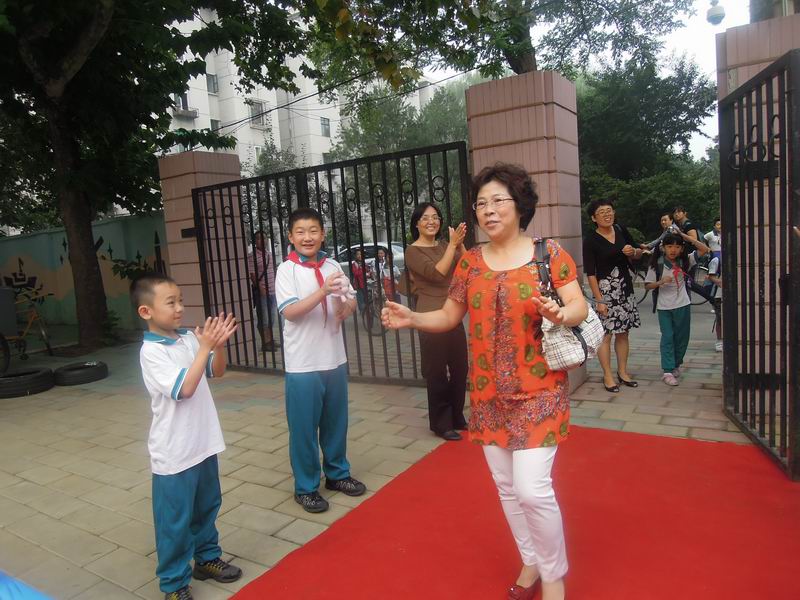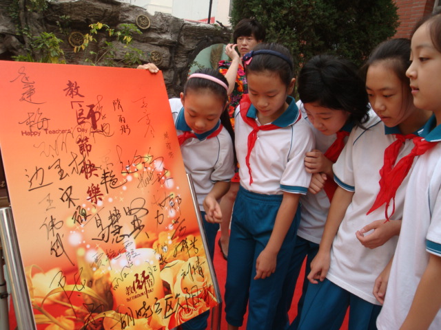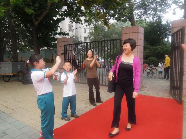又是一年教师节,校园满是师生情。清晨,六年级的同学们已早早来到校园等待老师们。他们为全体老师准备了特别的欢迎仪式。有照相、有录像、有签名还有的同学把早已准备好的红地毯从校园大门一直铺到教学楼门口,他们想让老师也尝尝“走红地毯”的滋味!六一班的郭子欣和朱捷敏同学用自己饱含深情的演讲感动了在场的每一位老师。
