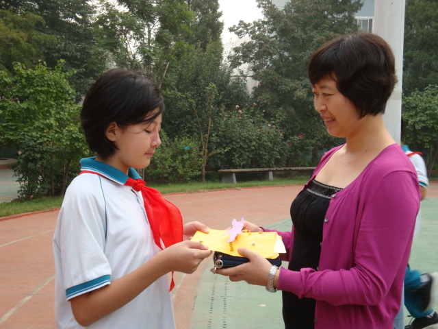 三寸粉笔,三尺讲台系国运;一颗丹心,一生秉烛铸民魂。这就是对教师最高的评价。同学们还亲手制作了贺卡,每一张都代表了他们对老师的深切祝福!《每当我轻轻走过老师窗前》这首经典的歌曲再次响起时,同学们走到老师们中间,双手奉上贺卡,送上自己的祝福。这时,浓浓的师生情洋溢在校园的每一个角落!
