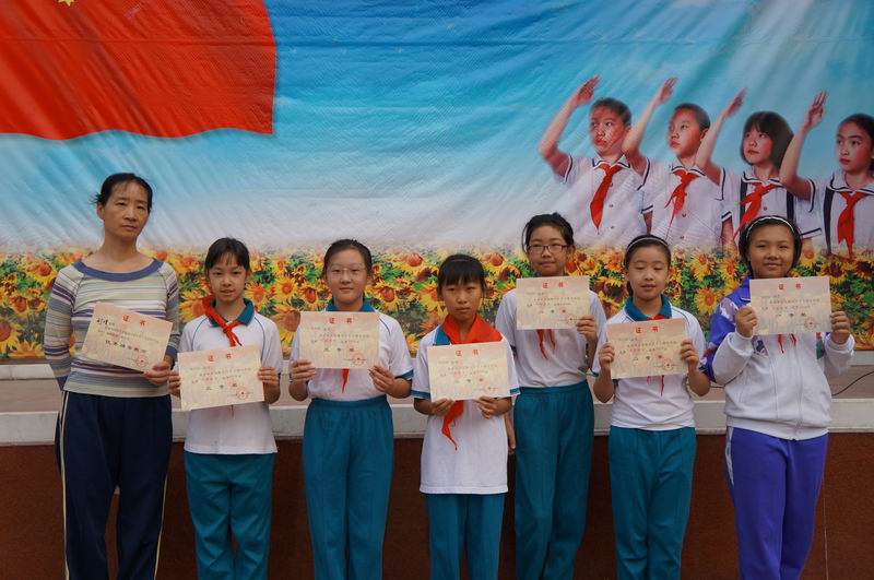 我校叶画小组同学在刘老师的带领下参加了全国中小学叶画制作比赛。共22人参赛,有6人次获奖。五(1)班秦伊彤荣获全国比赛一等奖;五(2)班李纯洋、四(2)班李云清、周欣博荣获二等奖;五(2)班刘雨婷、四(2)班蒲玛莉荣获三等奖。