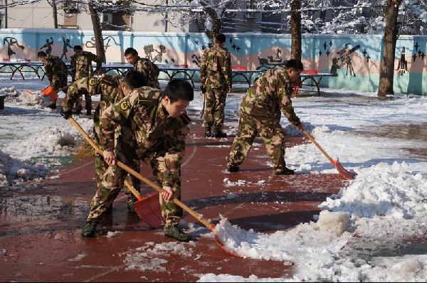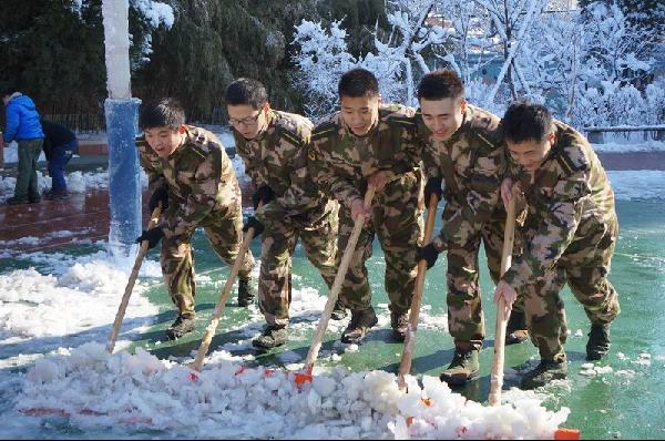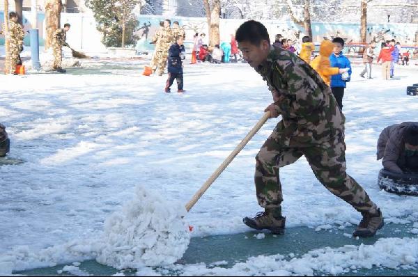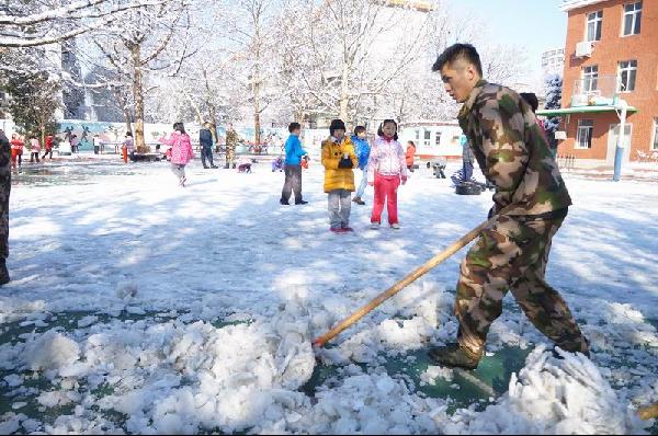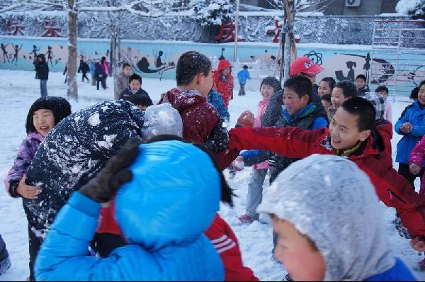 昨天下午至今晨,从开始的雨夹雪转为大雪。据报道最大积雪深度超过了20厘米。我们林大附小也被这场大雪打扮的分外美丽,同学在雪中嬉戏玩耍,快乐极了!林业大学国防专业的大学生们专门来到附小帮助同学们打扫操场,他们的热心和爱心让我们附小的师生在这雪后的清晨倍感温暖!谢谢你们!