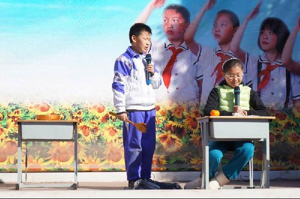 这周课本剧的名字是《学会感恩,学会担当》,剧中由父母与孩子交换角色而让孩子体会做家长的不易,从而让孩子关心家长、感恩家长。看,同学们表演的多认真啊!