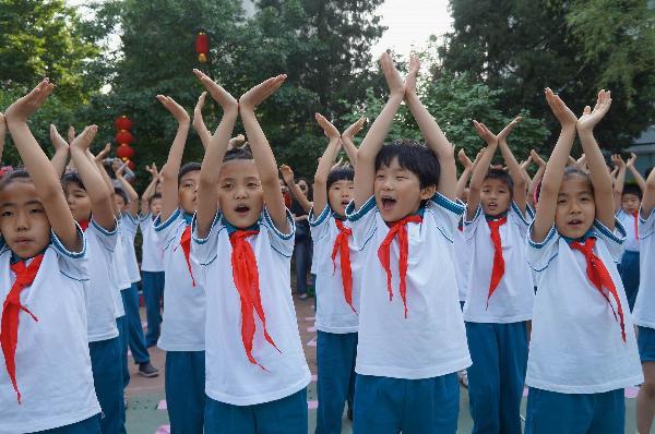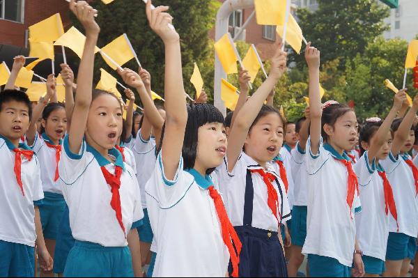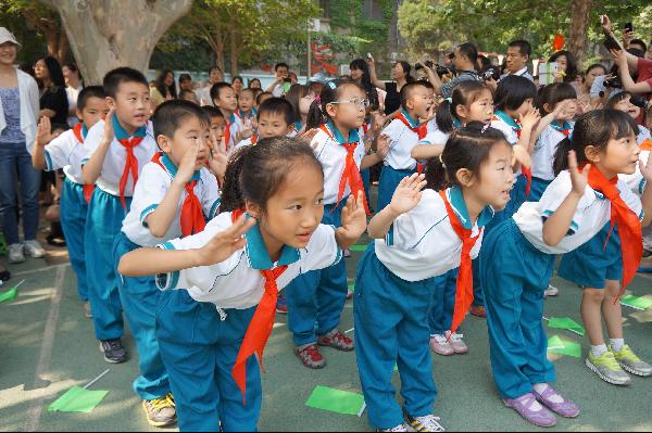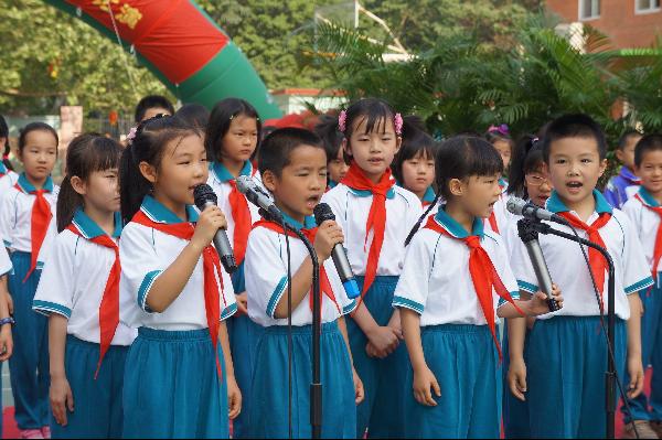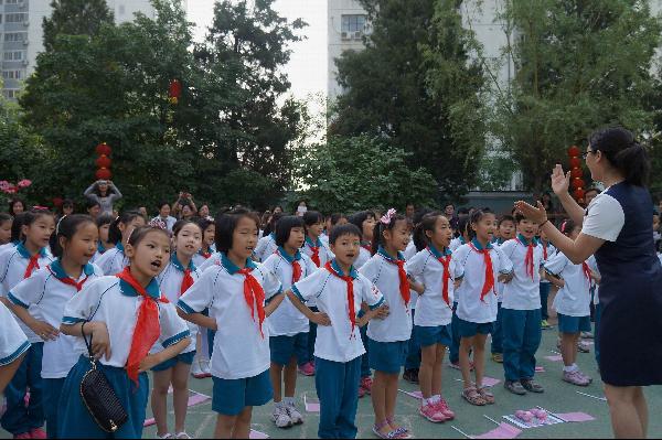 531日上午我校召开了“童音唱响中国梦”庆六一新生入队及合唱汇演的庆祝活动。