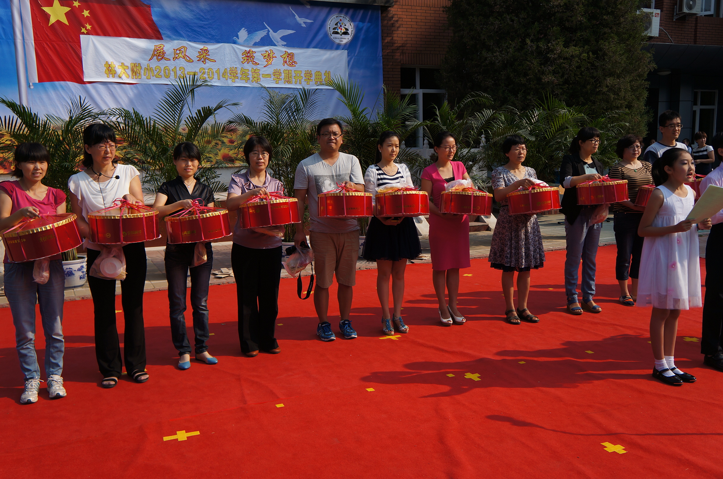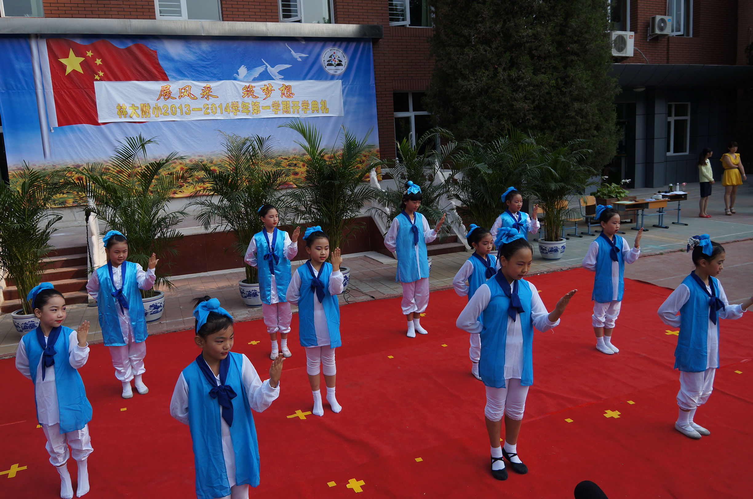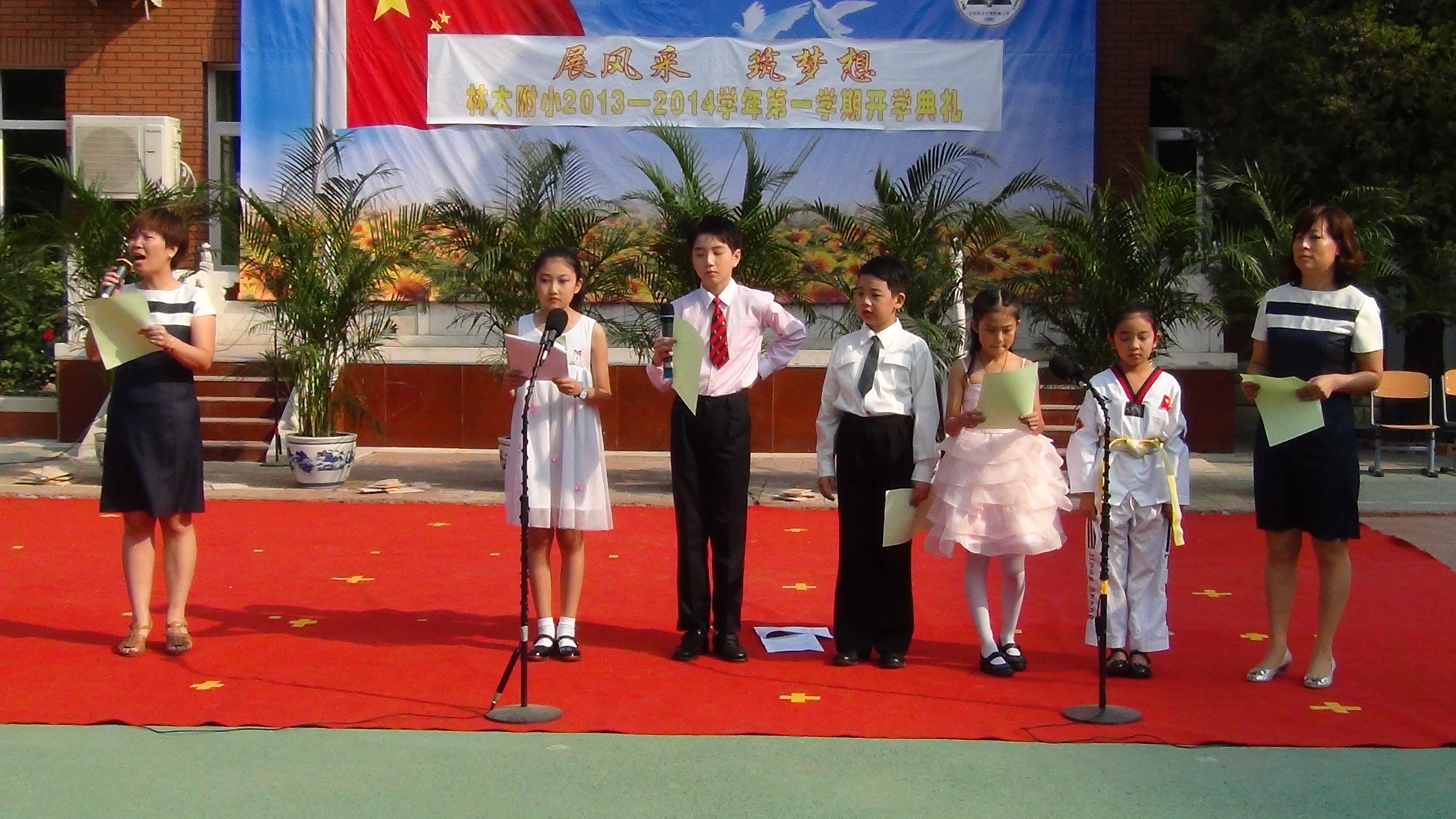 201392开学第一天,林大附小全体师生迎来了新学期的第一次盛大集会––20132014学年第一学期开学典礼。开学典礼在庄严的升旗仪式中拉开帷幕,五星红旗在乐团演奏的《国歌》声中冉冉升起, 校管乐团的现场伴奏取代了以往的录音播放,整个升旗过程显得更加庄重肃穆;随着《欢乐颂》的奏起,一年级新生伴着欢快的脚步走进学生的行列中;当全校同学都到齐了,高校长开始做新学期的讲话,向全体同学给予新学期的希望与要求,并代表全体师生给一年级小同学送去祝福、送去礼物,祝贺一年级的小同学们成为林大附小这个大家庭中的一员,希望他们勤奋学习,宽厚待人,互帮互助,早日适应小学生活,在小学的生活与学习中交到更多的好朋友、好伙伴。
