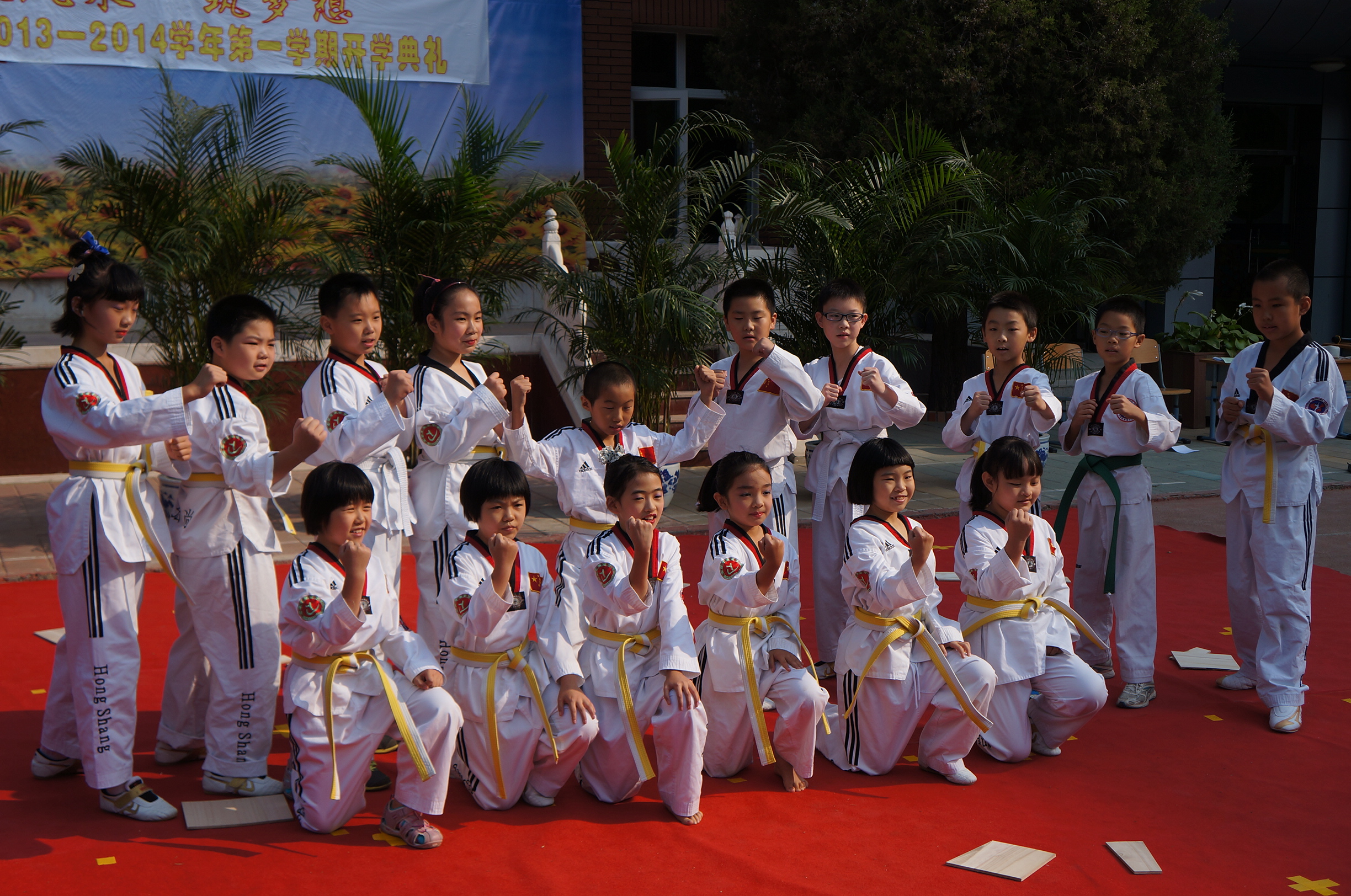 欢快的音乐充满校园,幸福的笑脸绽开花朵。“展风采,筑梦想–– 社团风采展示”成为开学典礼的又一亮点。合唱社团演唱的歌曲《乘着歌声的翅膀》和《踏雪寻梅》,旋律优美、节奏轻快、美妙动听;管乐社团的小号、长号、萨克斯、打击乐等各个小曲目的演奏引来阵阵掌声;舞蹈社团的傣族舞《水姑娘》由二年级的李天韵、孟雨晴同学表演,优美的舞姿得到同学们的羡慕与赞美,舞蹈《明日歌》、《小蝌蚪变青蛙》、《扭扭舞》都获得同学们的关注与喜爱;“小荷才露尖尖角”跆拳道同学仅仅学习了一个学期,他们就以铿锵有力的动作、英姿飒爽的身影给大家留下了深刻的印象。一分耕耘一份收获,社团的同学们,你们很棒!