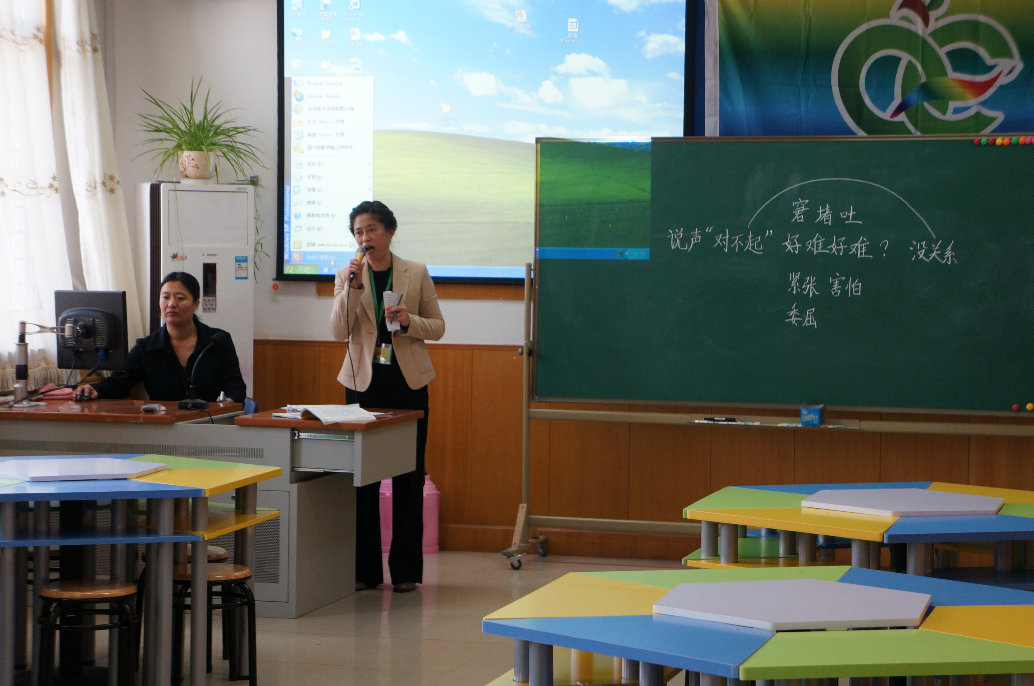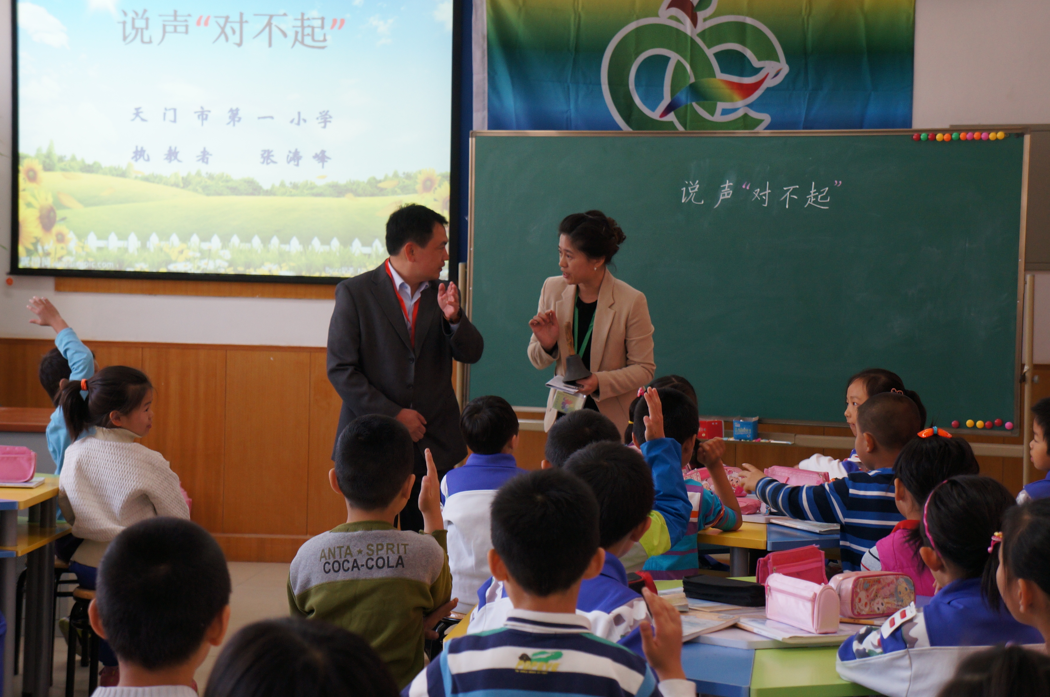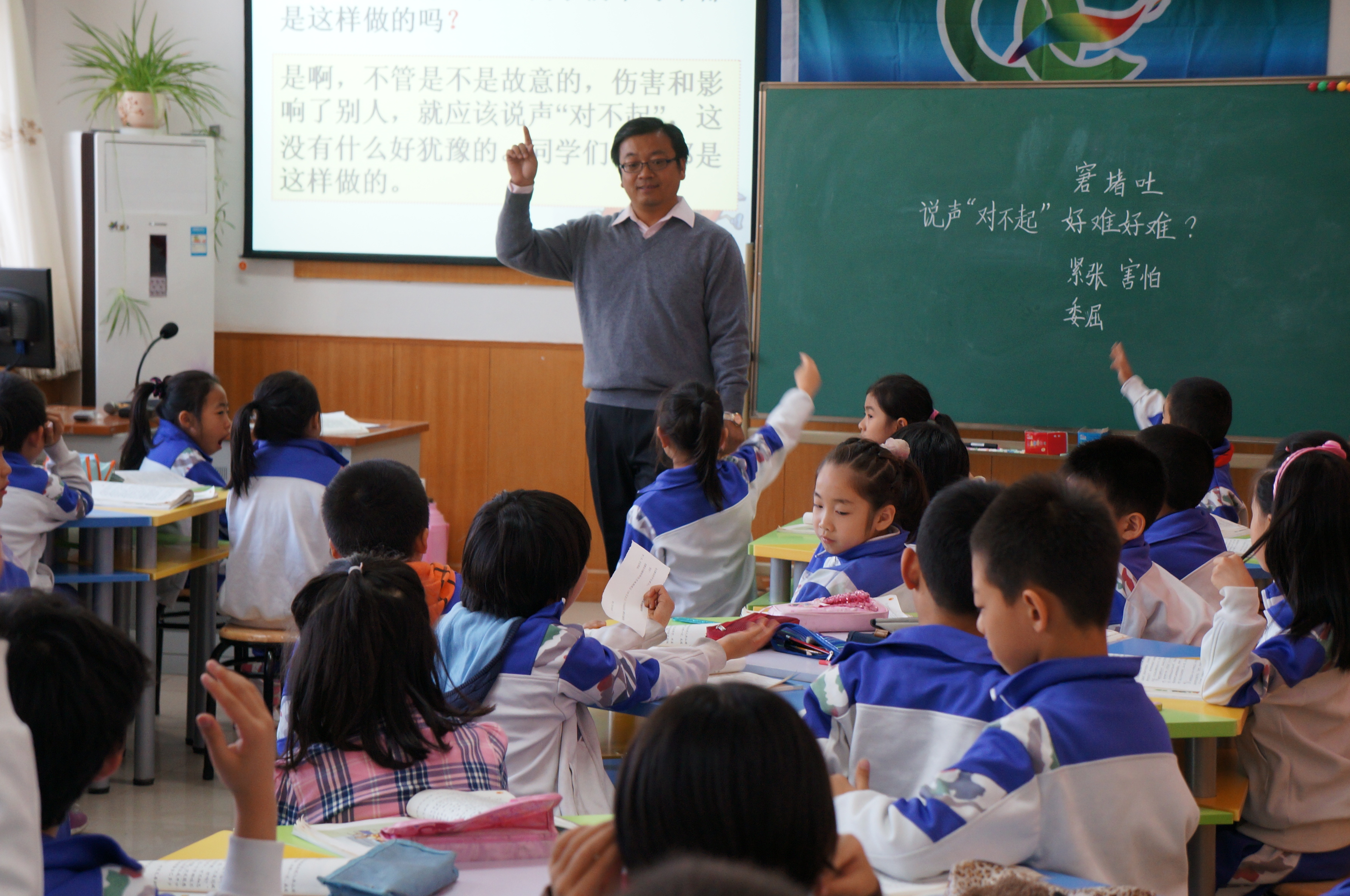 下午是语文研讨——同课异构:北师版三年级第五单元课文《说声“对不起”》,第一节,湖北天门老师执教第一课时;第二节林小边老师执教第二课时。聘请专家:北京市语文特级教师,原海淀区小学教研室主任张光骆老师点评。