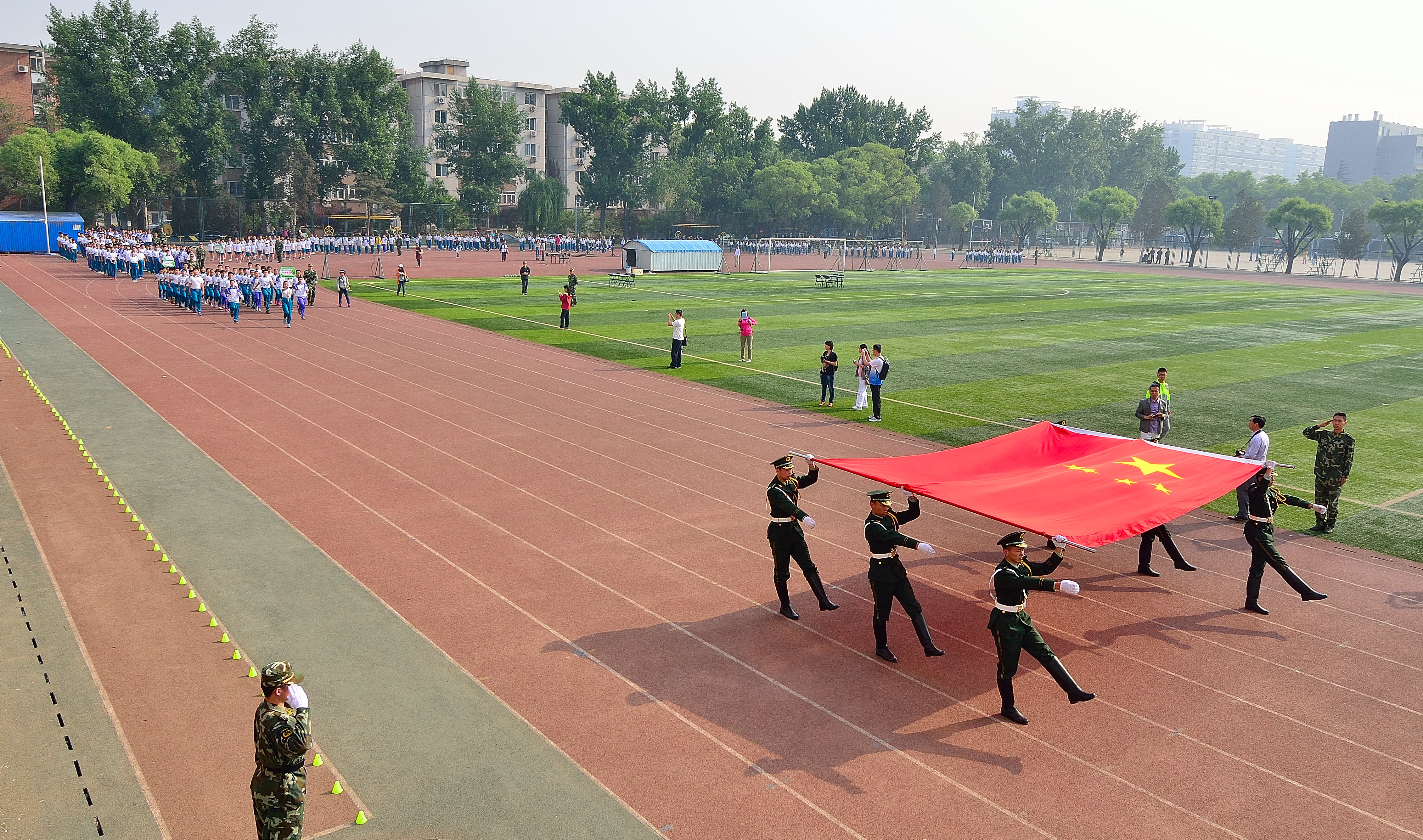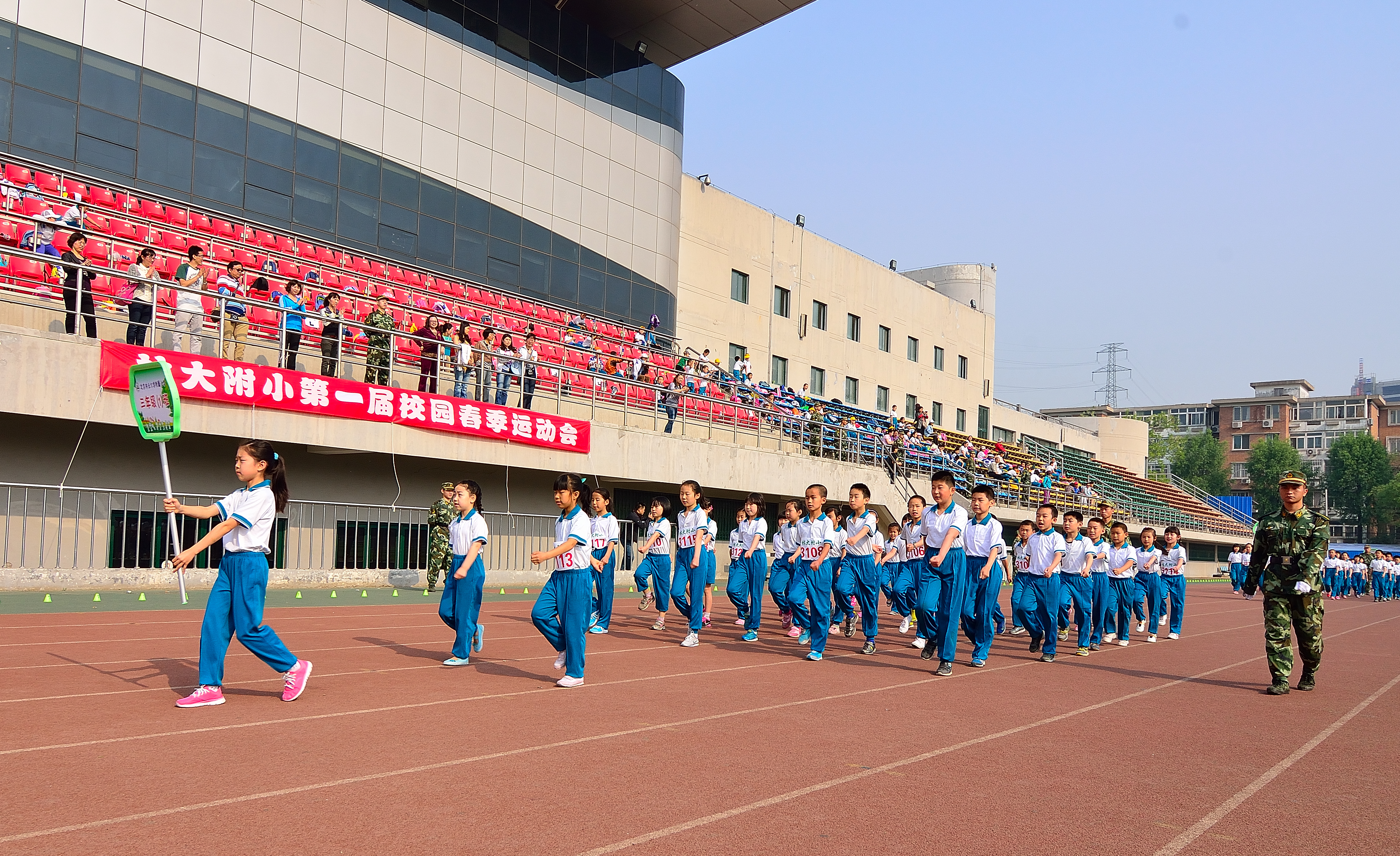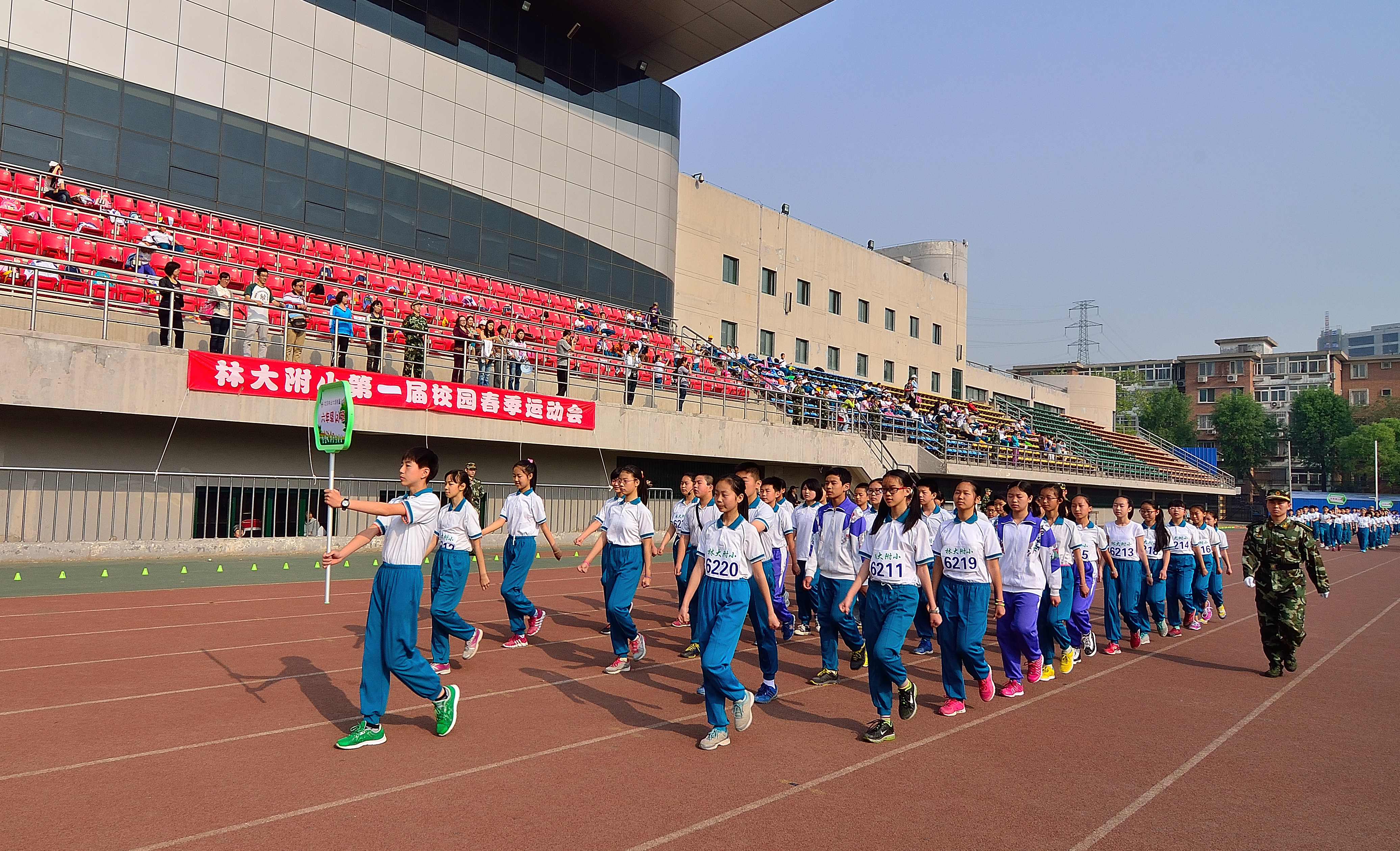 2014430日上午,林大附小第一届春季田径运动会拉开了帷幕。开幕式上,随着嘹亮的运动员进行曲,来自全校十二个班的十二个代表队组成的队列方阵进入了主会场。你看他们迎着灿烂的朝阳,迈着整齐的步伐,昂首阔步地走来了……,他们的气势博得了在场教师评审团以及家长代表们的一阵阵热烈的掌声。
