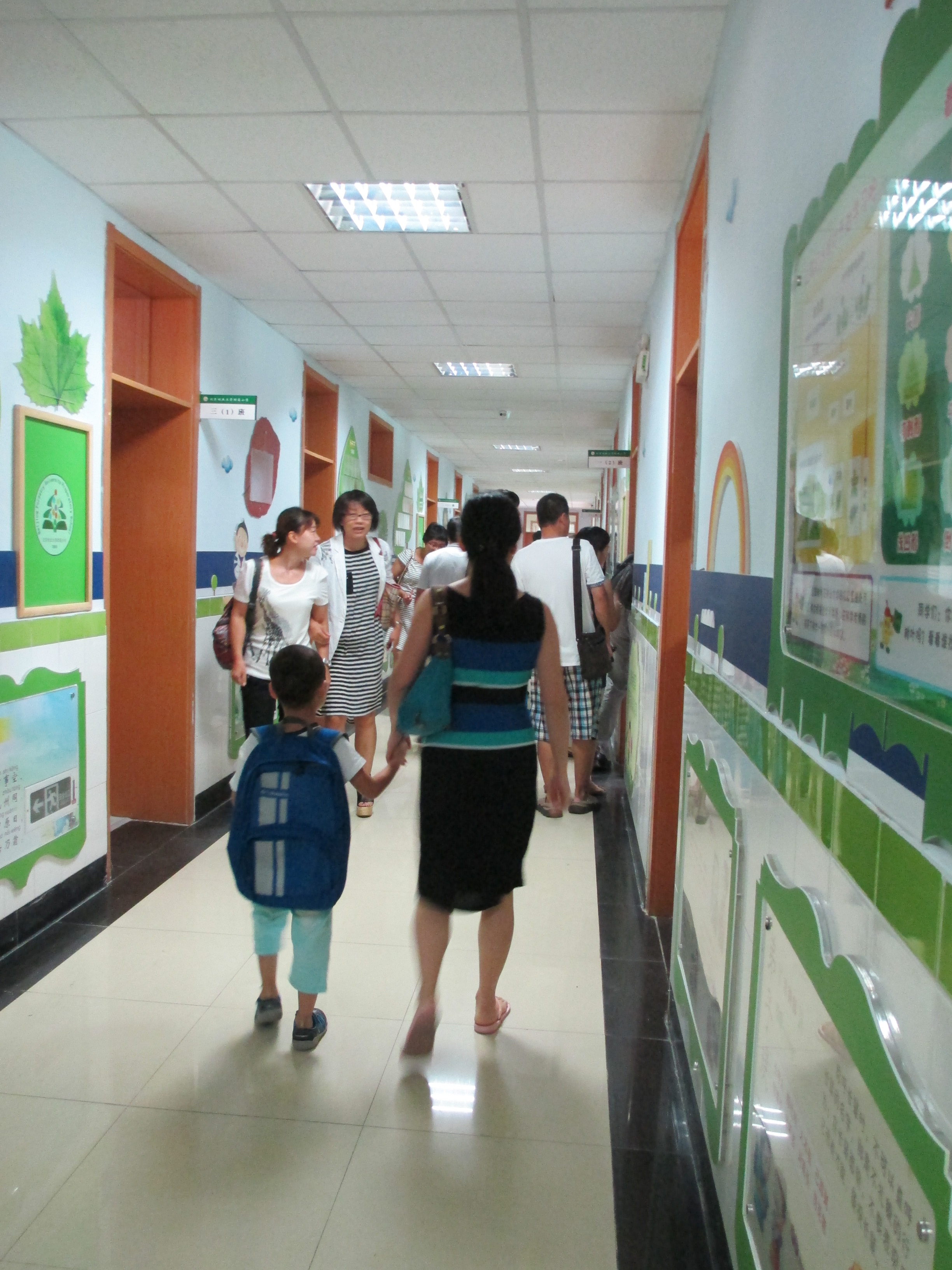校门口张贴着整个迎新活动的流程以及三个班的分班名单,让人一目了然;每间教室,整洁明亮,和蔼可亲的班主任老师早早就布置好板报,摆齐座椅,有条不紊地进行着新生教育:讲故事,做游戏,说儿歌,老师们精神饱满,孩子们兴高采烈;排座位,领书本,逛校园,一切新鲜又有趣,陌生又熟悉,羞怯和快乐洋溢在孩子们稚嫩的脸蛋上--- 啊,我上学了!