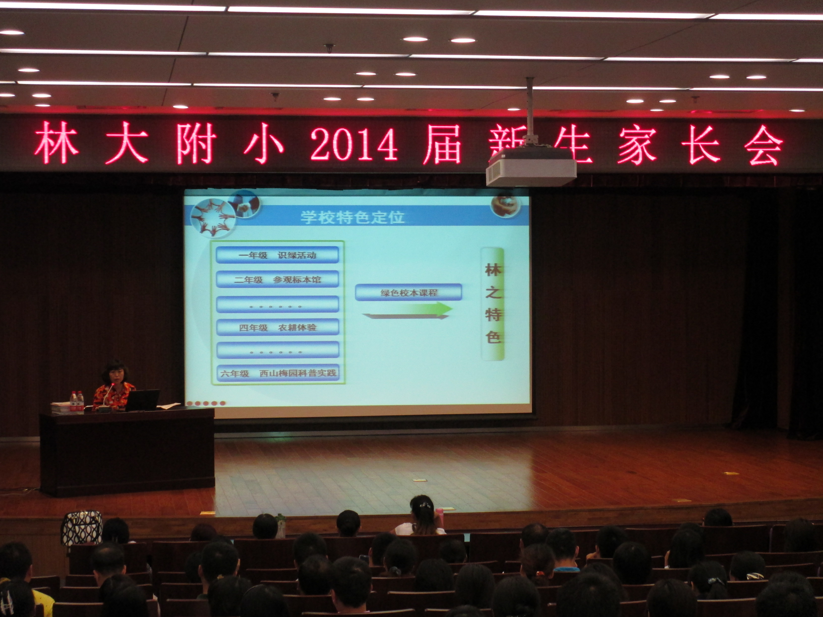 与此同时, 在大学的学研大厦里,也正举行着新生家长会----各位家长们也在聚精会神地聆听着。高校长深情并茂地详细讲解了林大附小的办学理念、校本课程、学校规范等方方面面。
