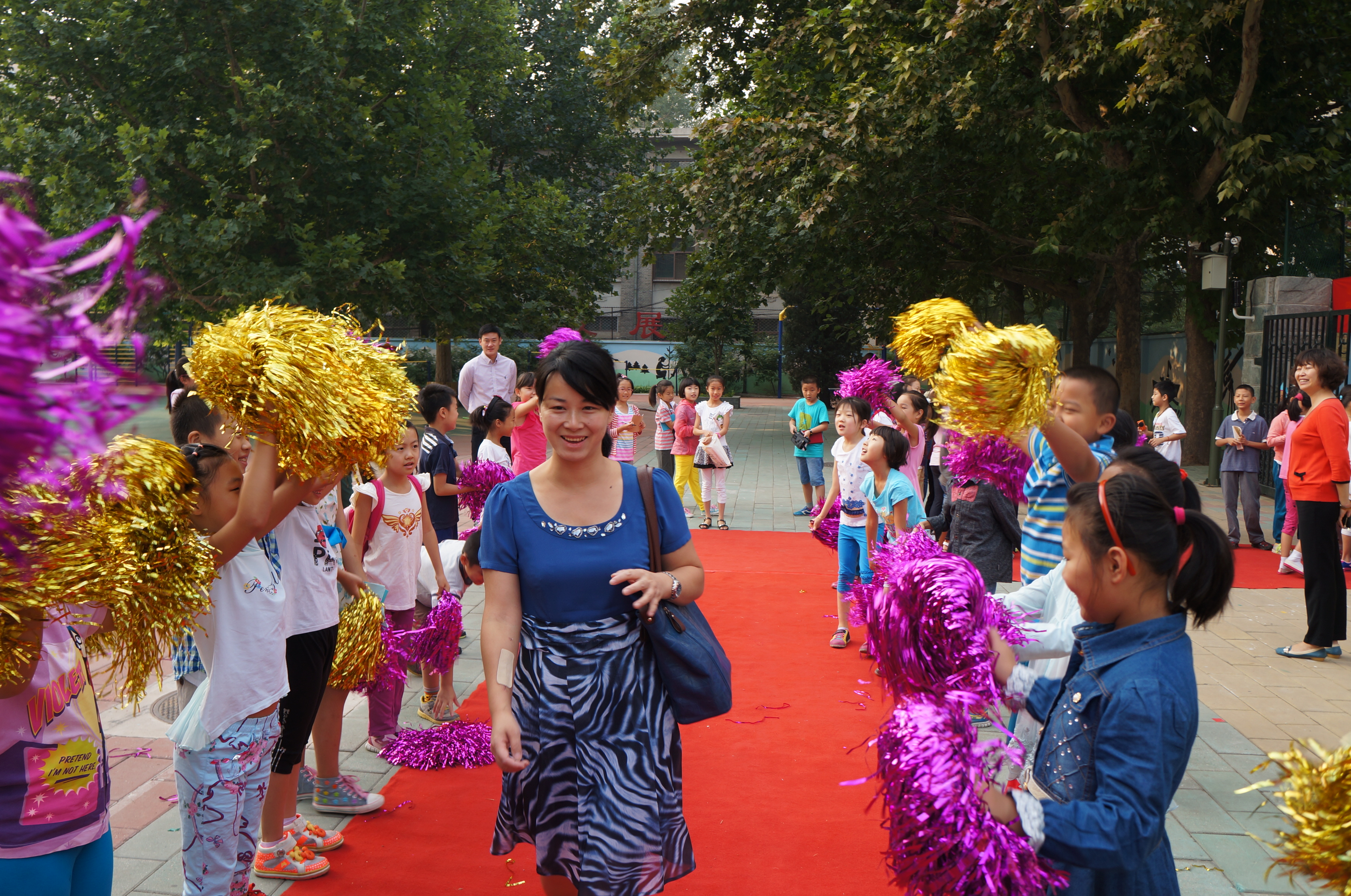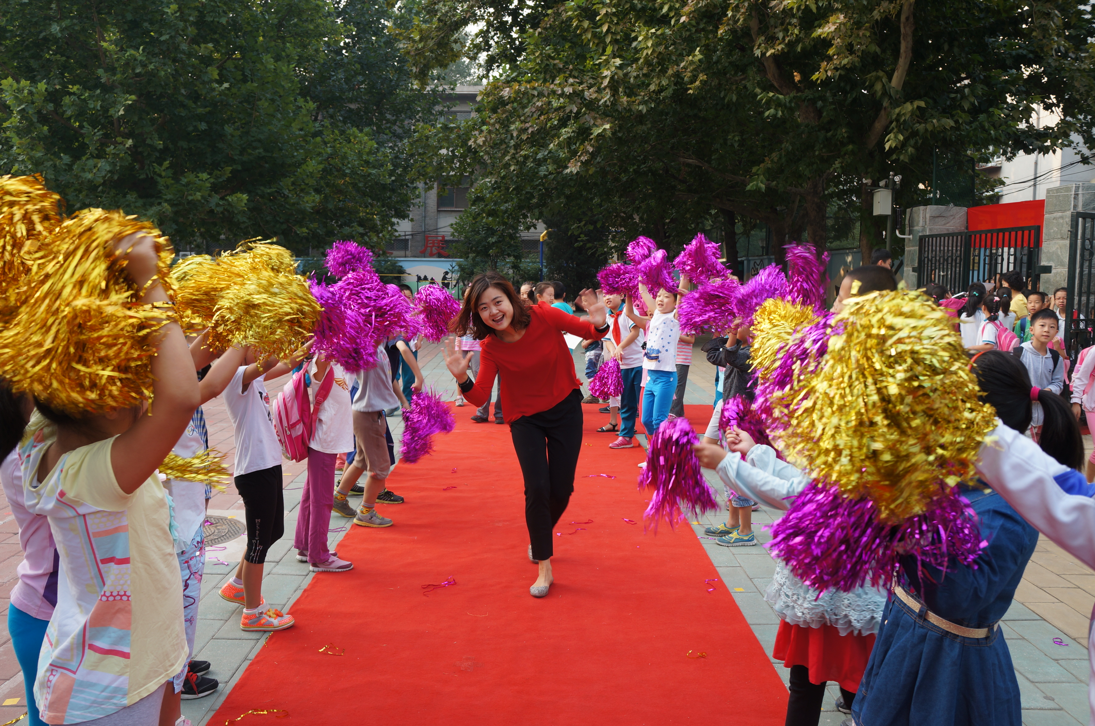 9月10日清晨,一条鲜红的地毯从林小西校门口一直铺展到教学楼前,同学们早早地列队站在地毯两侧,挥舞着闪光拉拉花,兴高采烈地迎候着老师们。伴随着热情的欢呼声,老师们个个笑容满面地走上了红地毯。大家争相为老师拍照,争相请老师签名。无论是辛勤耕耘三十载的老教师,还是刚刚走上三尺讲台的新教师,每个人心里就像吃了蜜一样甜。每个年级的同学都兴致勃勃地捧着自己精心制作的小礼物,准备送给老师。