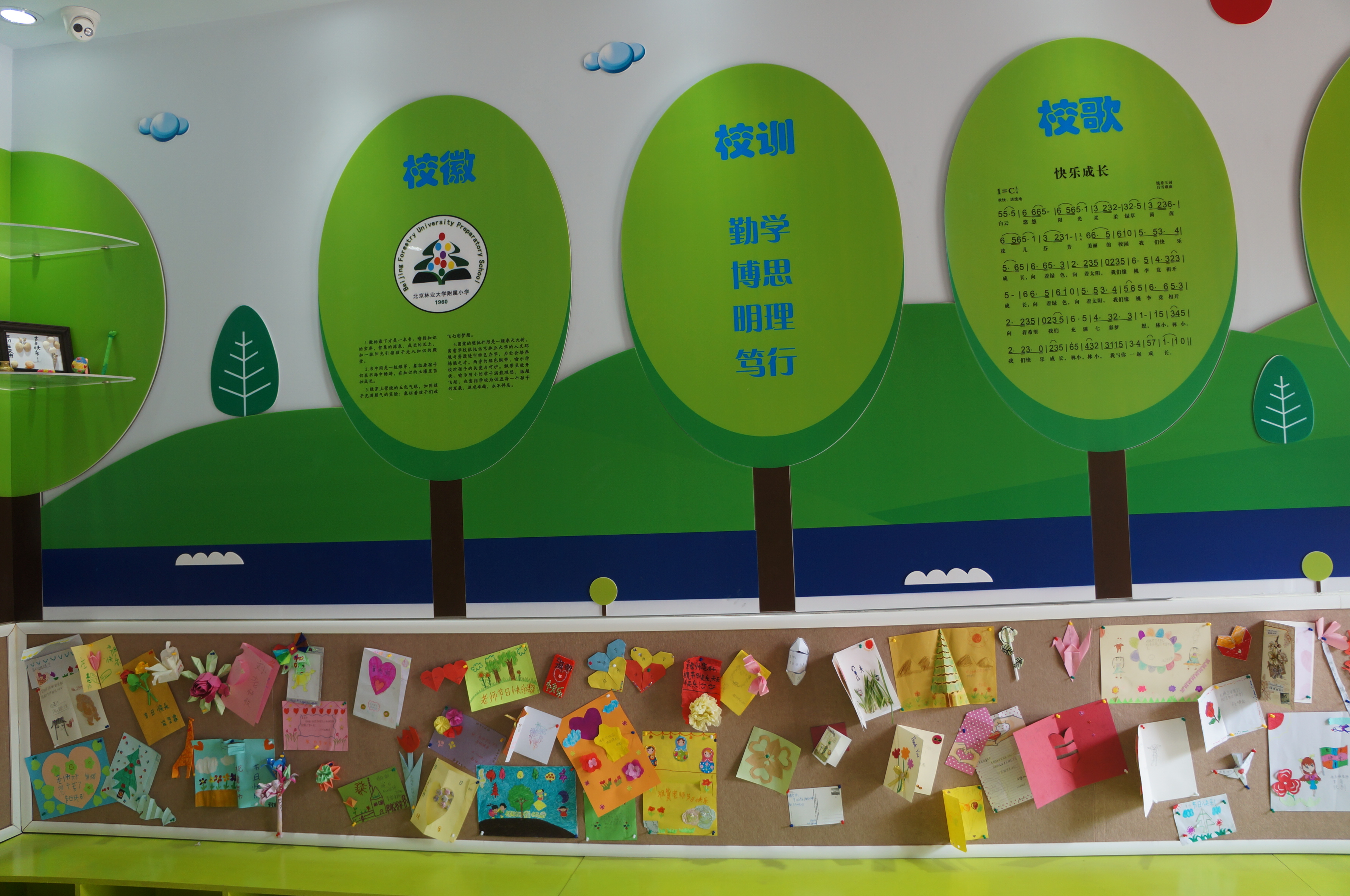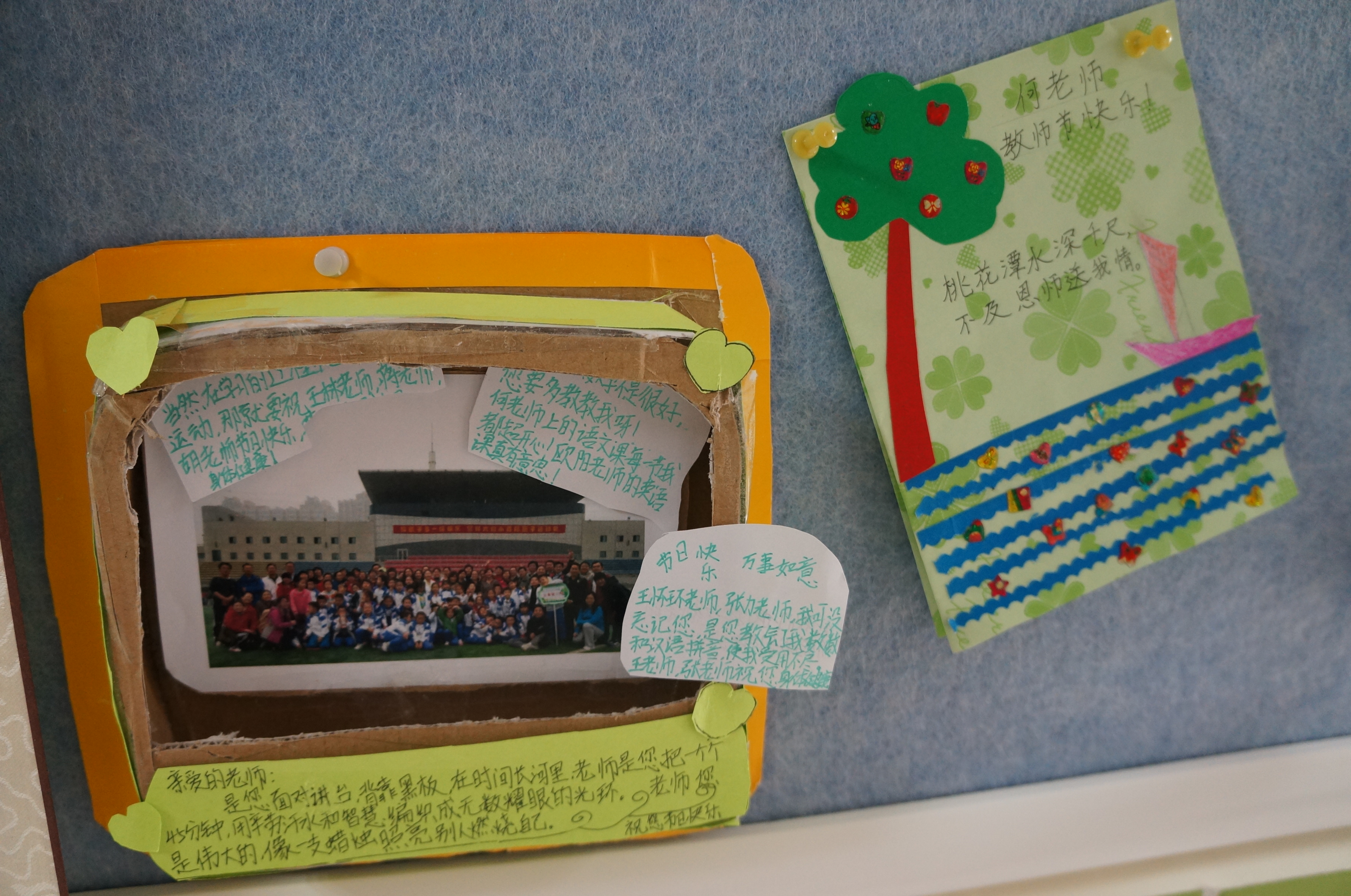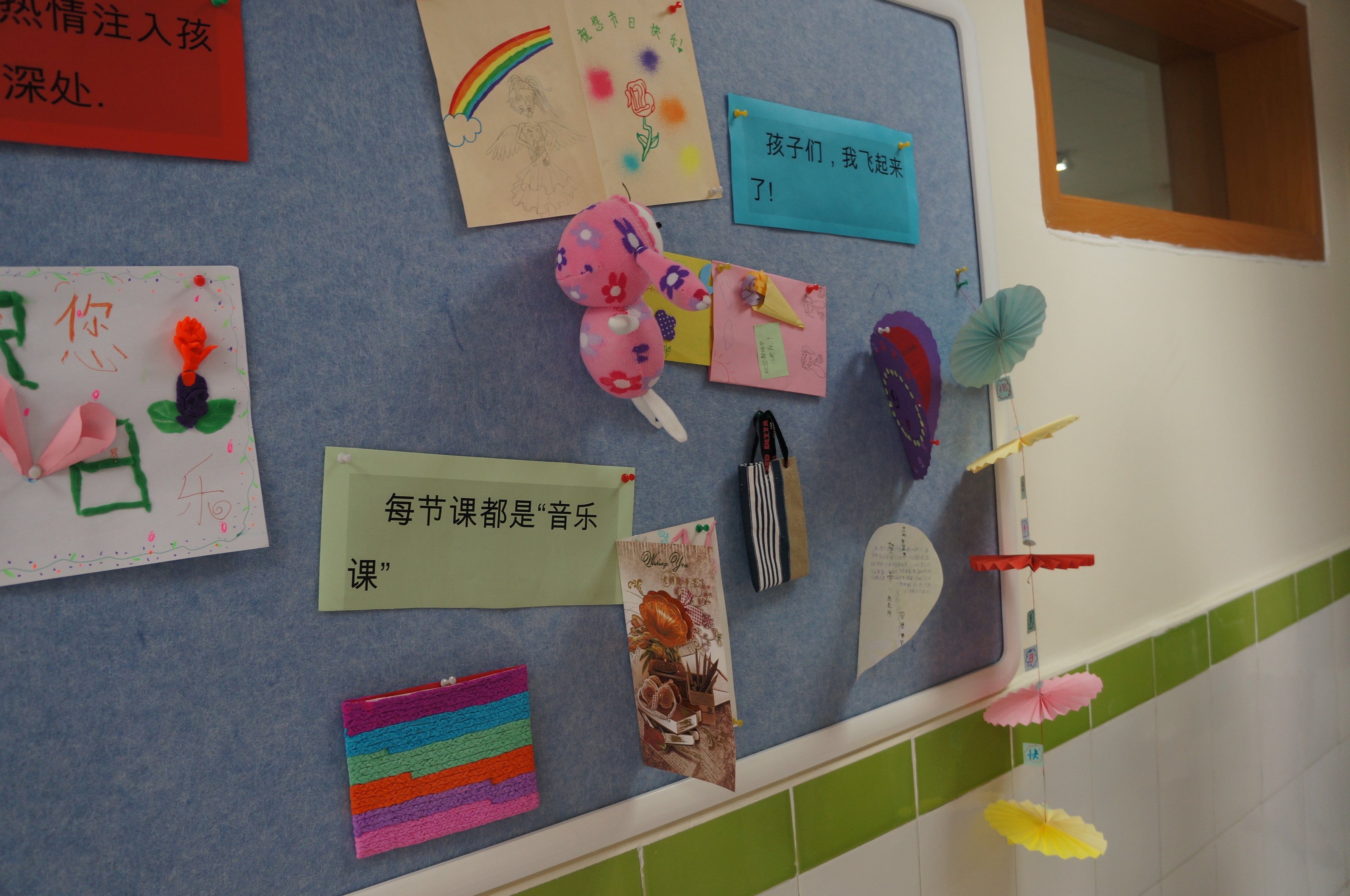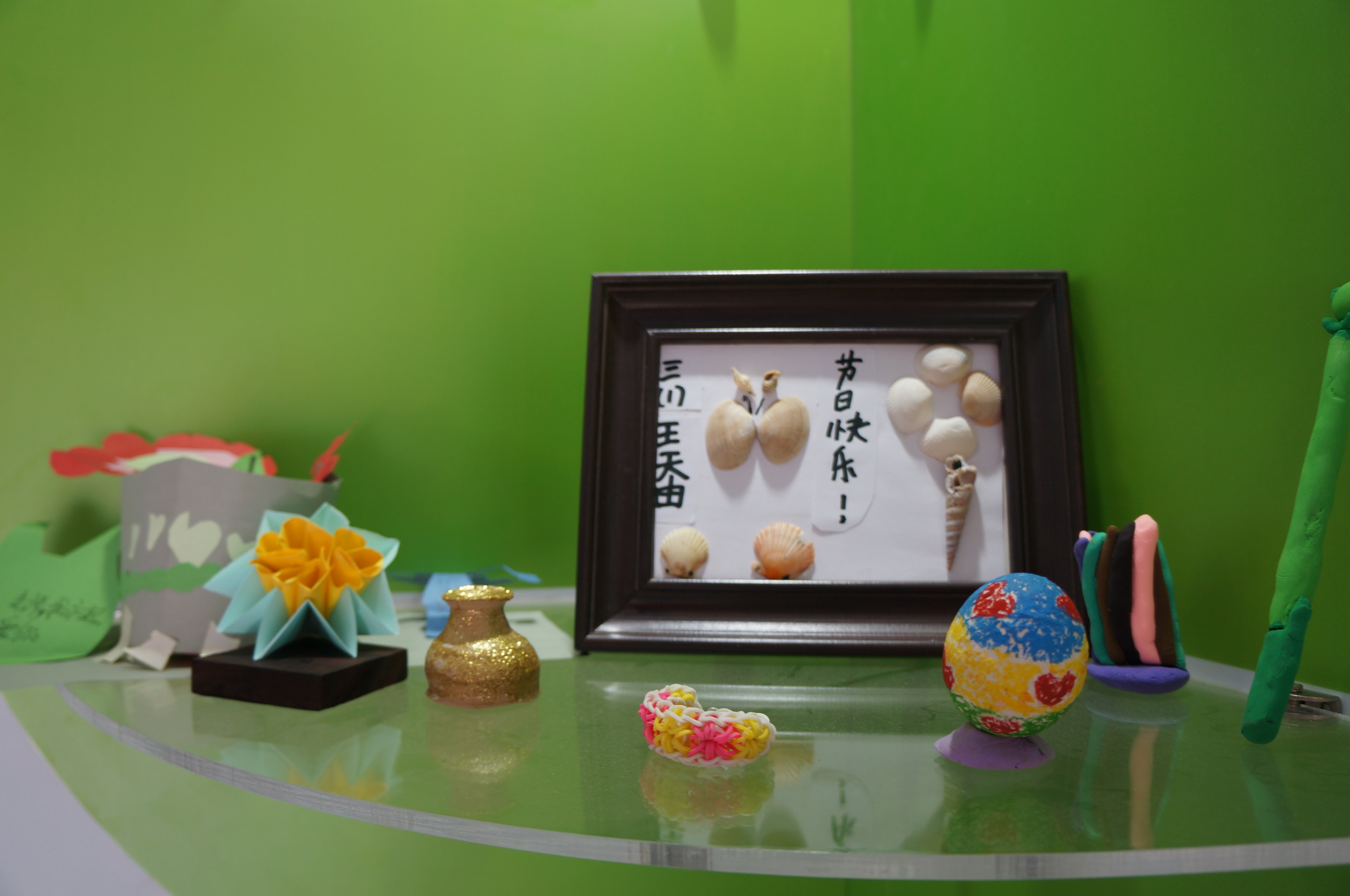 学校把一件件小小的礼物摆放在楼道两侧的展板上,吸引着更多的老师和同学驻足欣赏分享。