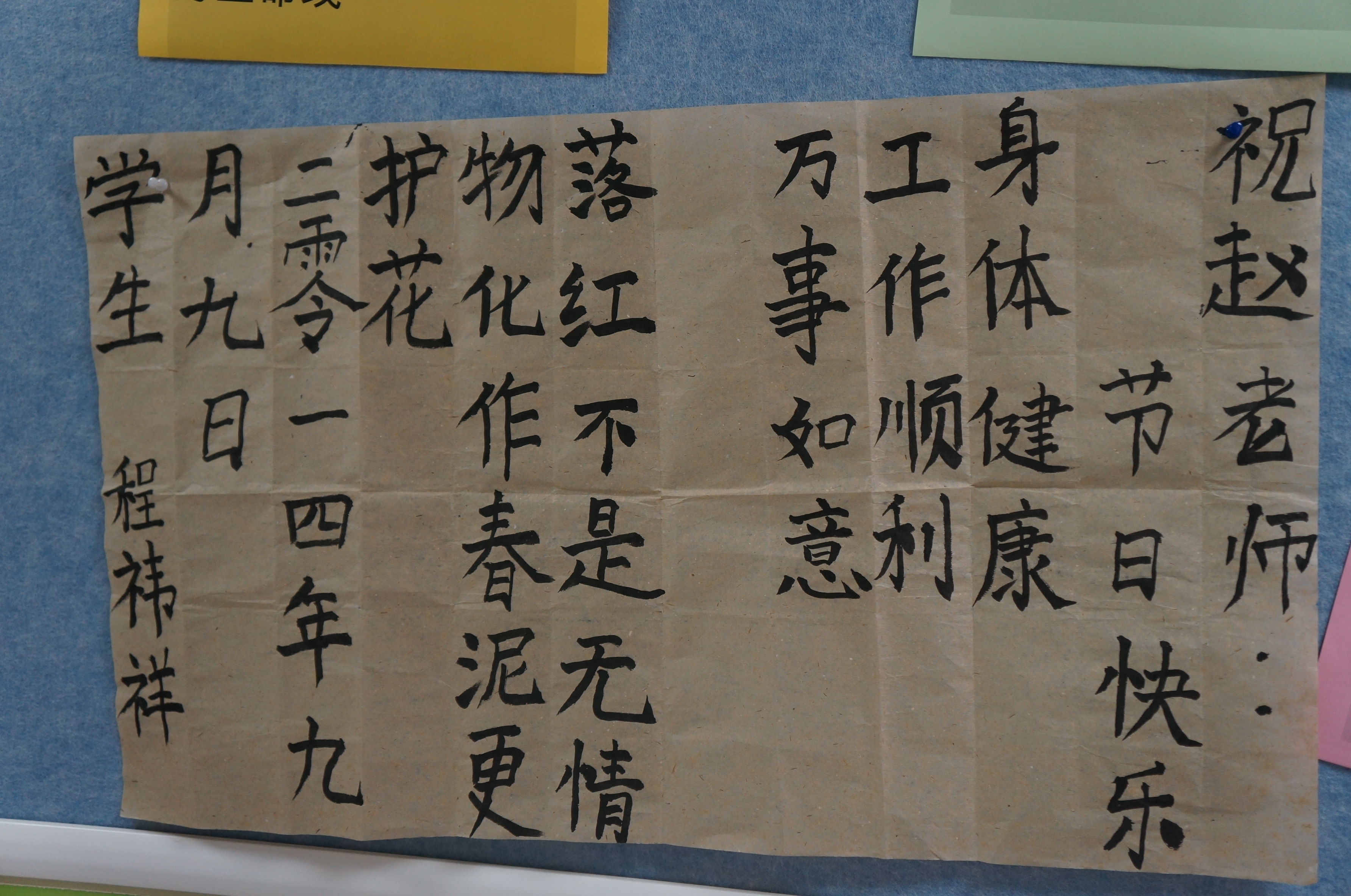 2014年的教师节,同学们用一颗真心和爱心,向老师表达出一片真情,不知不觉中学会了感恩。而老师们再次增强了职业幸福感,再次感受到了做教师的骄傲与自豪。