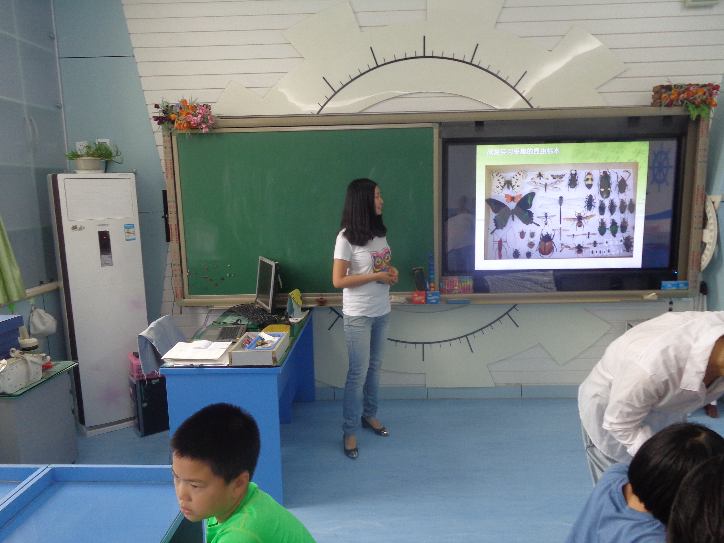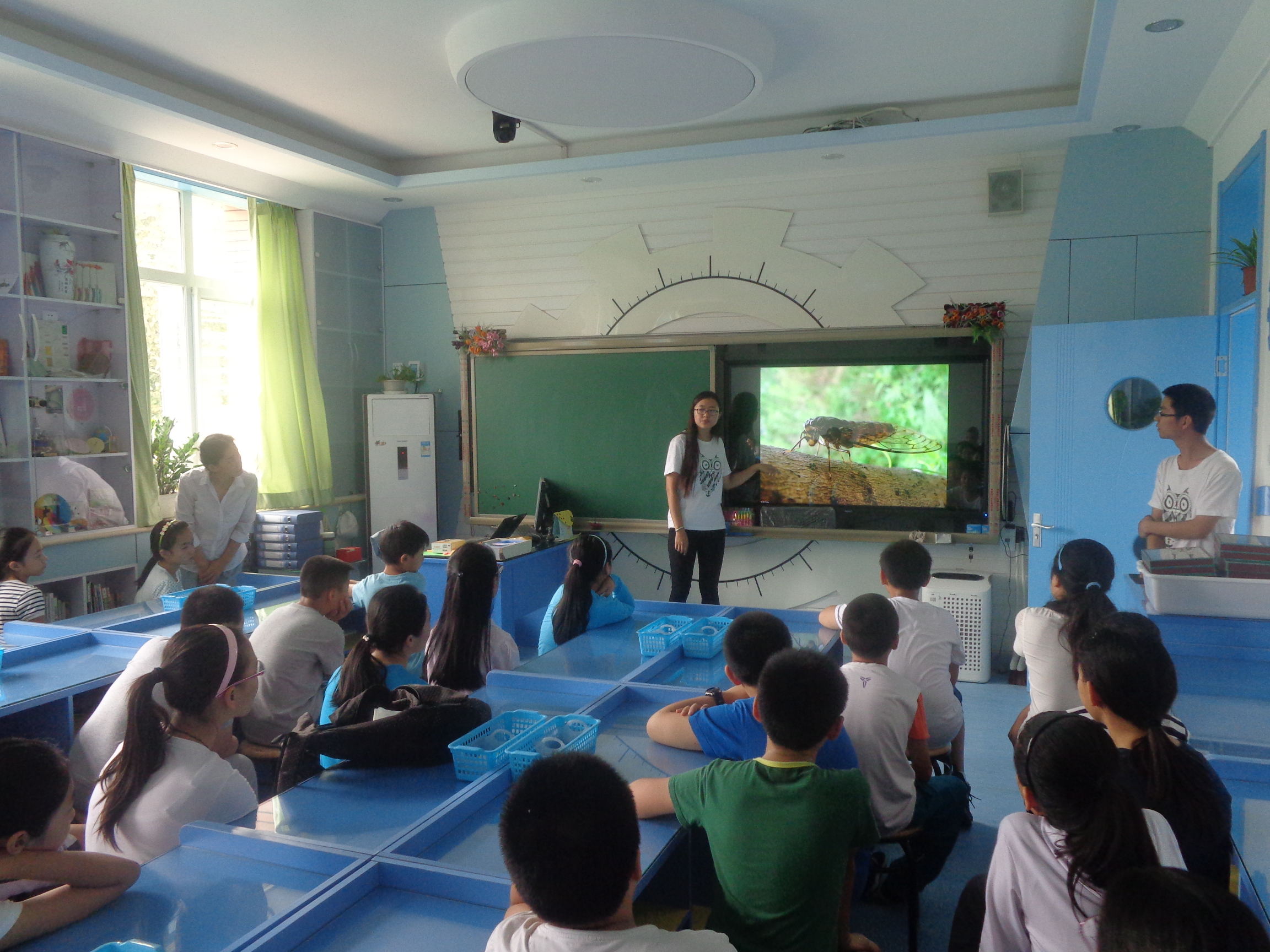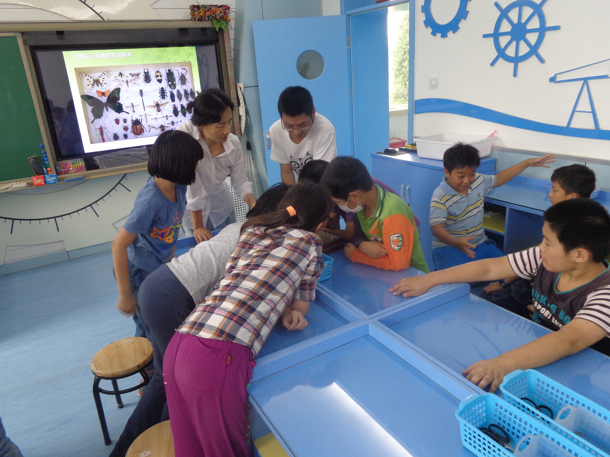 本次实践团队成员都来自北京林业大学林学院森保专业。活动现场,大学生们热情洋溢,活力四射,通过展示丰富多彩的幻灯片,昆虫实物标本和昆虫标本制作工具,激发了六年级同学的学习兴趣。同学们认真听课,积极提问,还在大学生哥哥姐姐的辅导下,绘制了有关图画,展出在科学学科的宣传栏里。