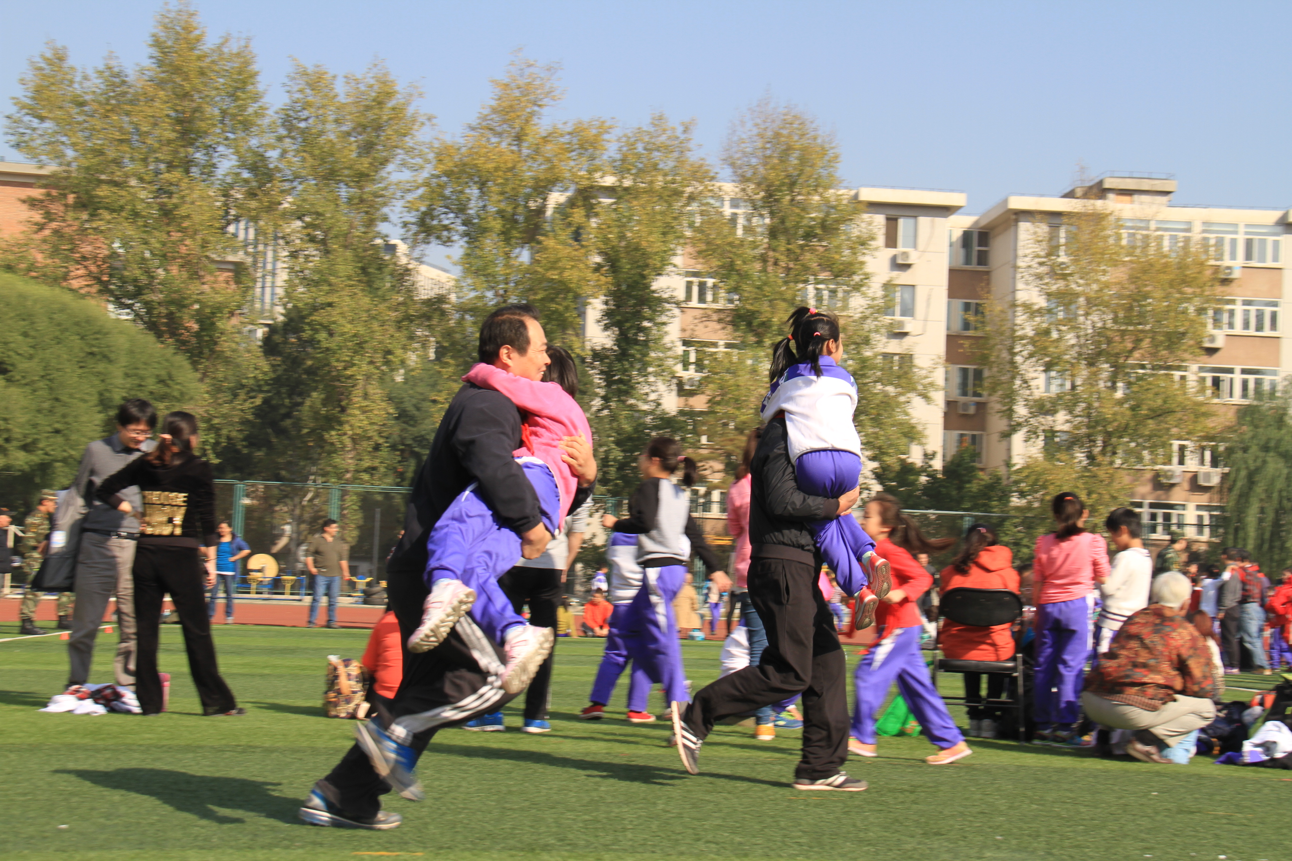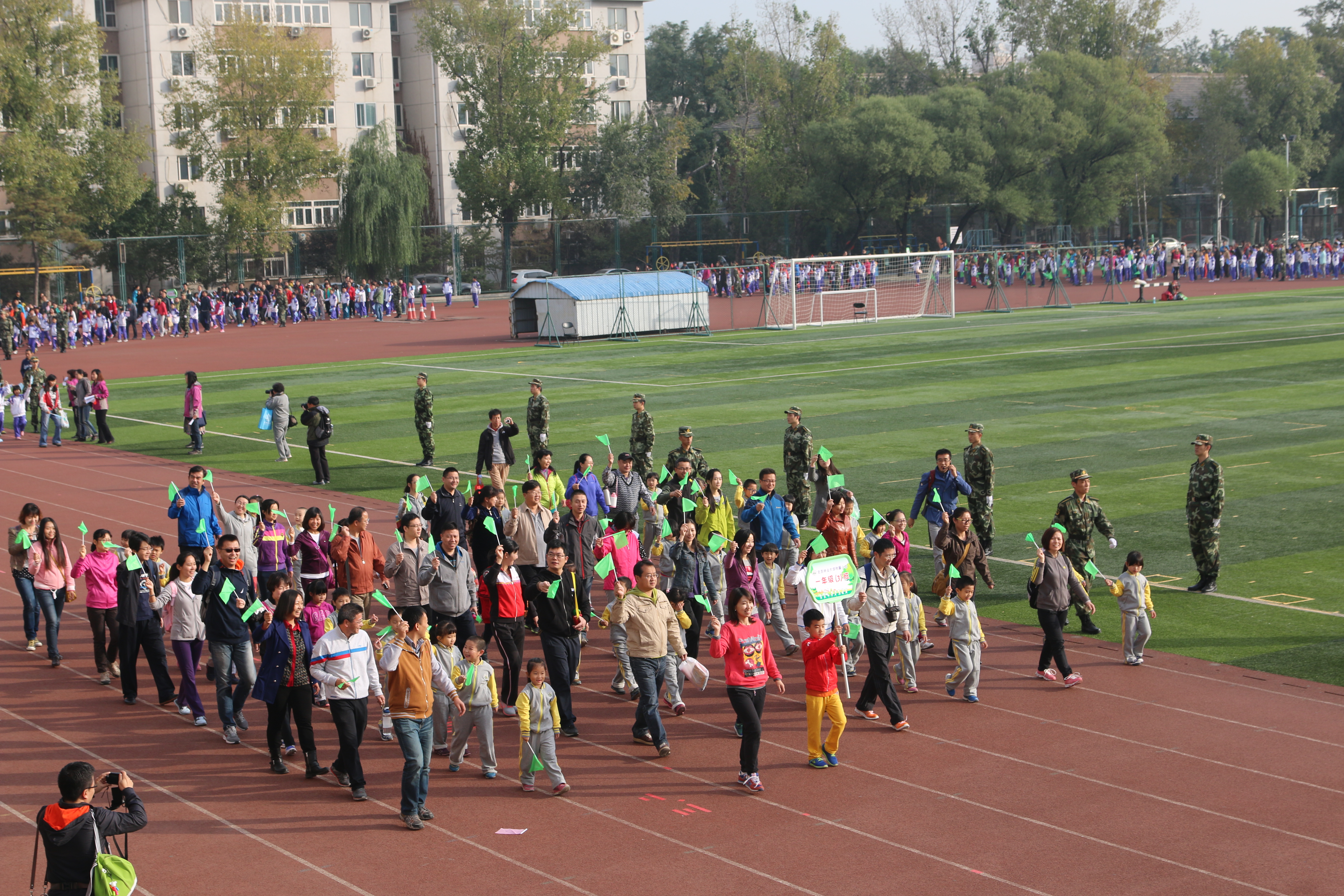 20141017日上午, 我校在北京林业大学运动场举行了以 “小手拉大手  快乐向前走”为主题的第三届亲子运动会。