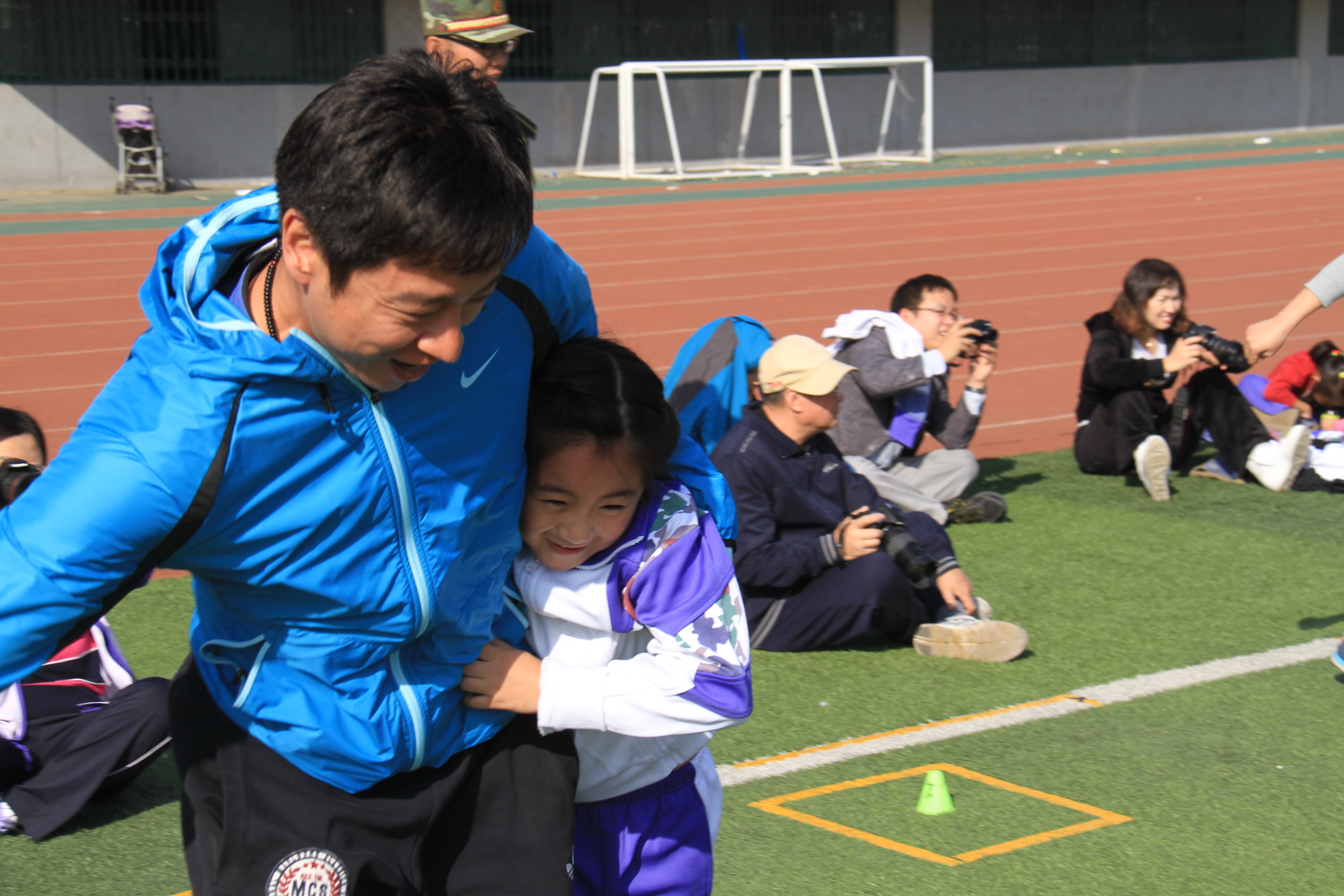 当《感恩的心》的歌声响起,孩子们情不自禁的握住家长的手:有的班拉成了一个“同心圆”,有的班筑起了“爱的堡垒”,有的班“玩”起了“抱抱熊”……爱的味道在这一刻充盈着每个人的心田。这温情的一刻,也为本届亲子运动会画上又一个温情而又幸福的句号