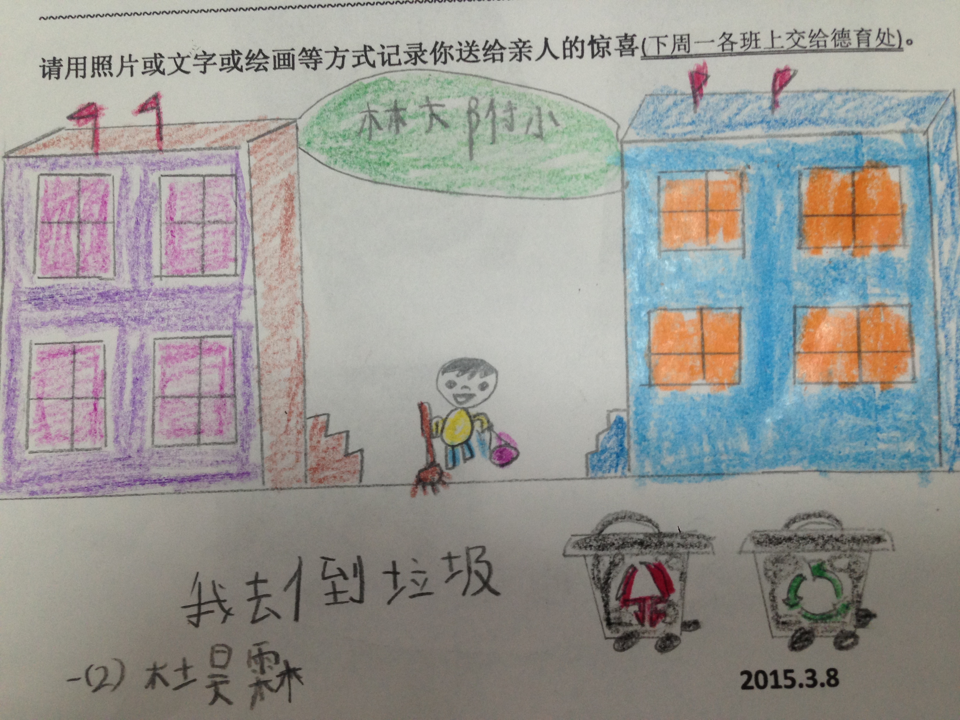 第二天各班还进行了分享交流。根据反馈回来的材料来看,孩子们行动积极,家长们心里暖洋洋的。                                                                                                         2015.3.8