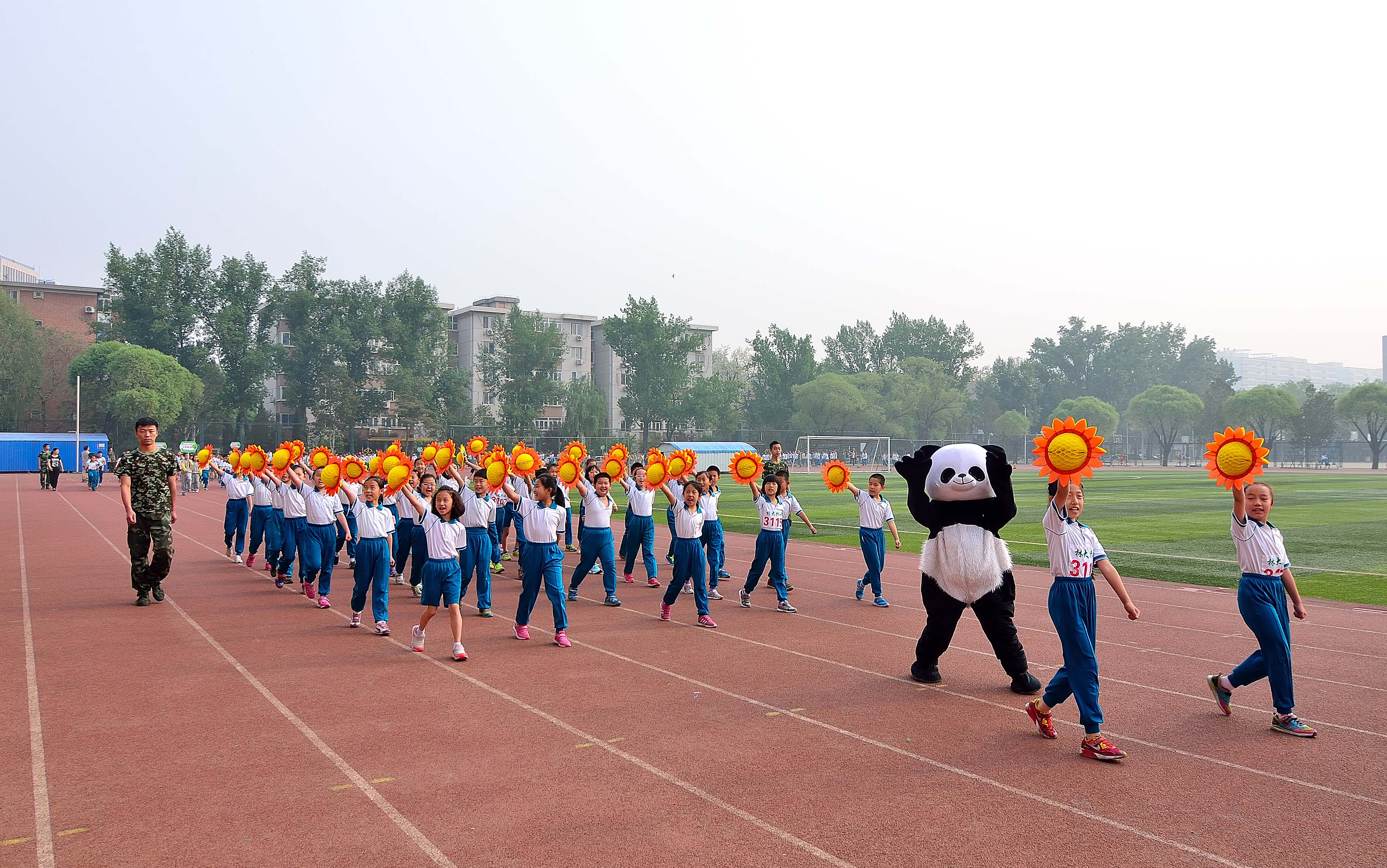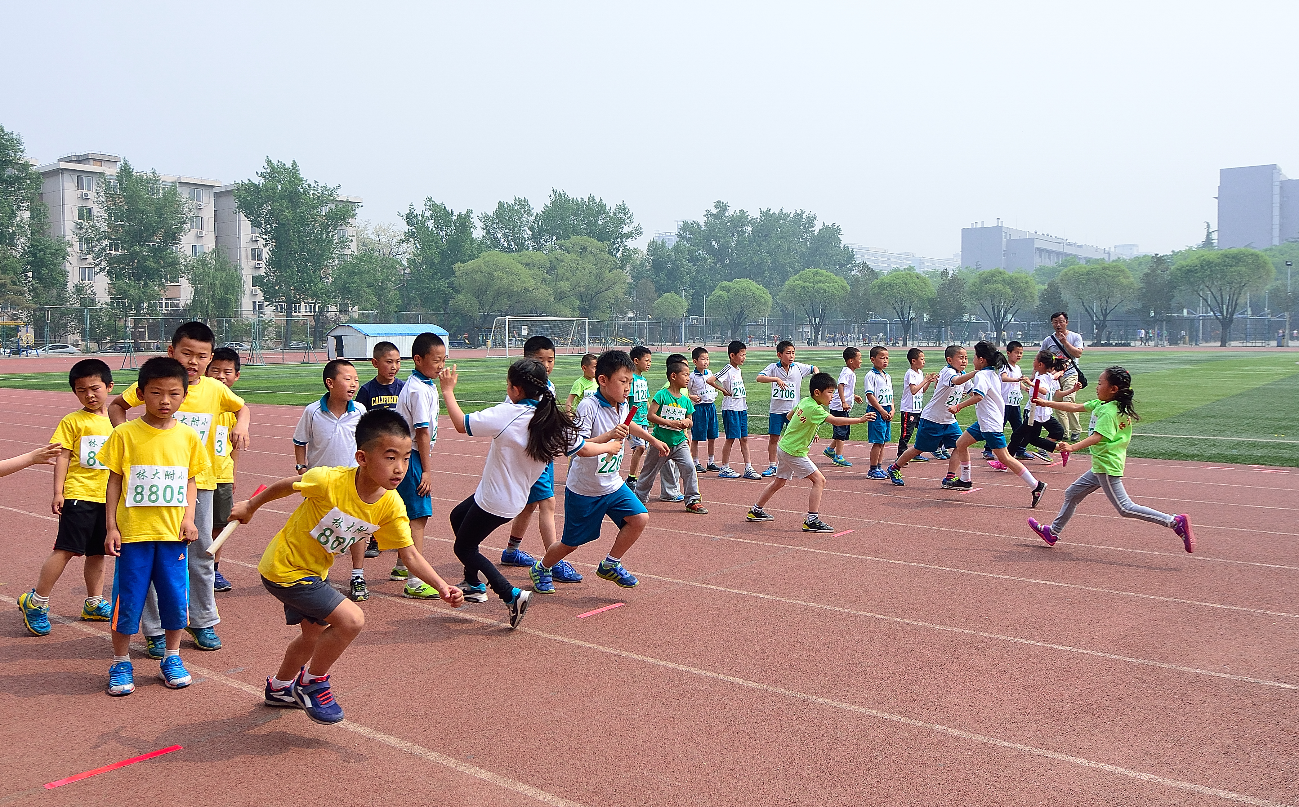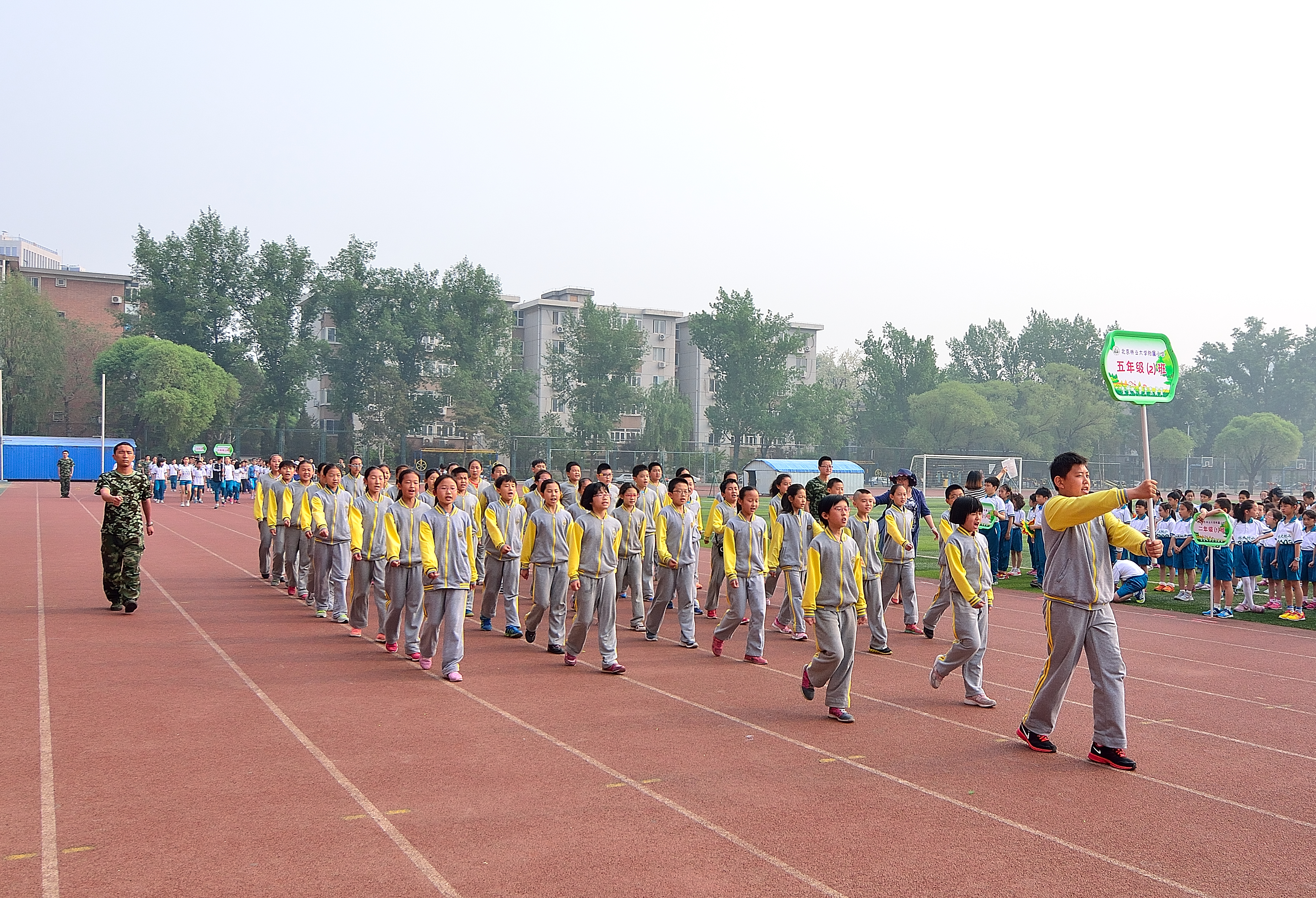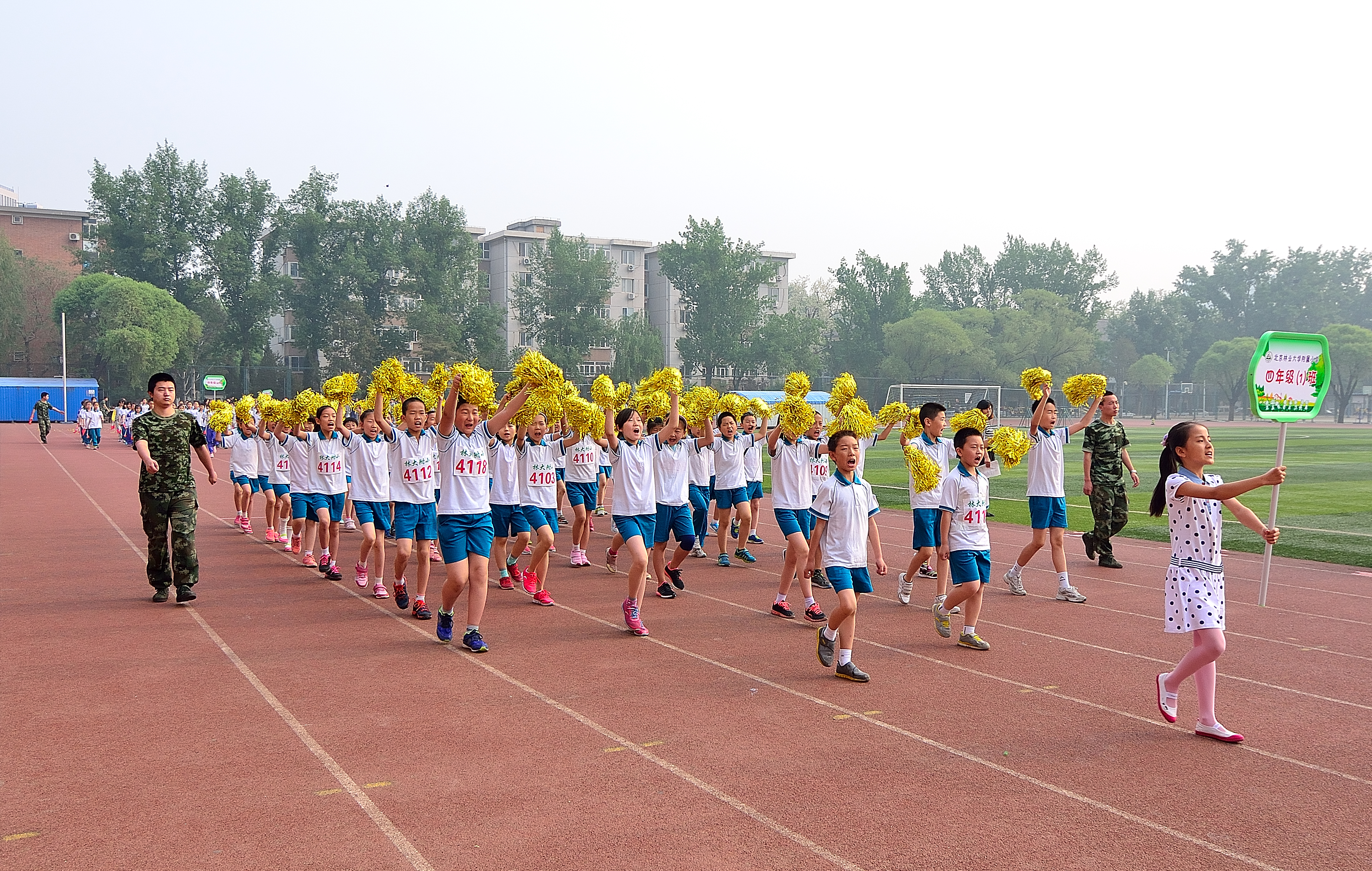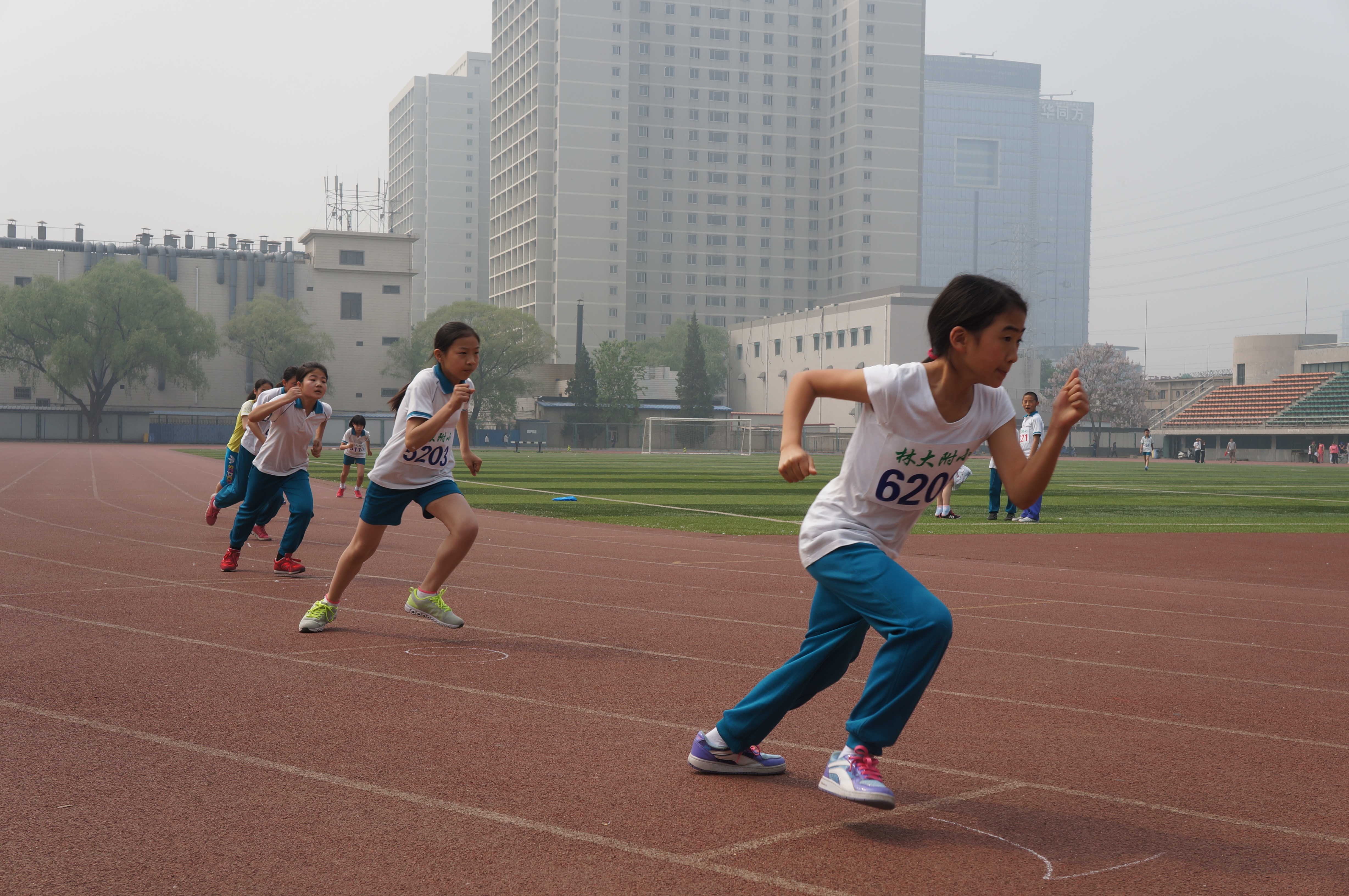 “白云悠悠,阳光柔柔,绿草茵茵,花儿芬芳……”绿意盎然的初夏之际,我校在北京林业大学标准的体育场,举办了筹备多日的“林大附小第二届田径运动会”。