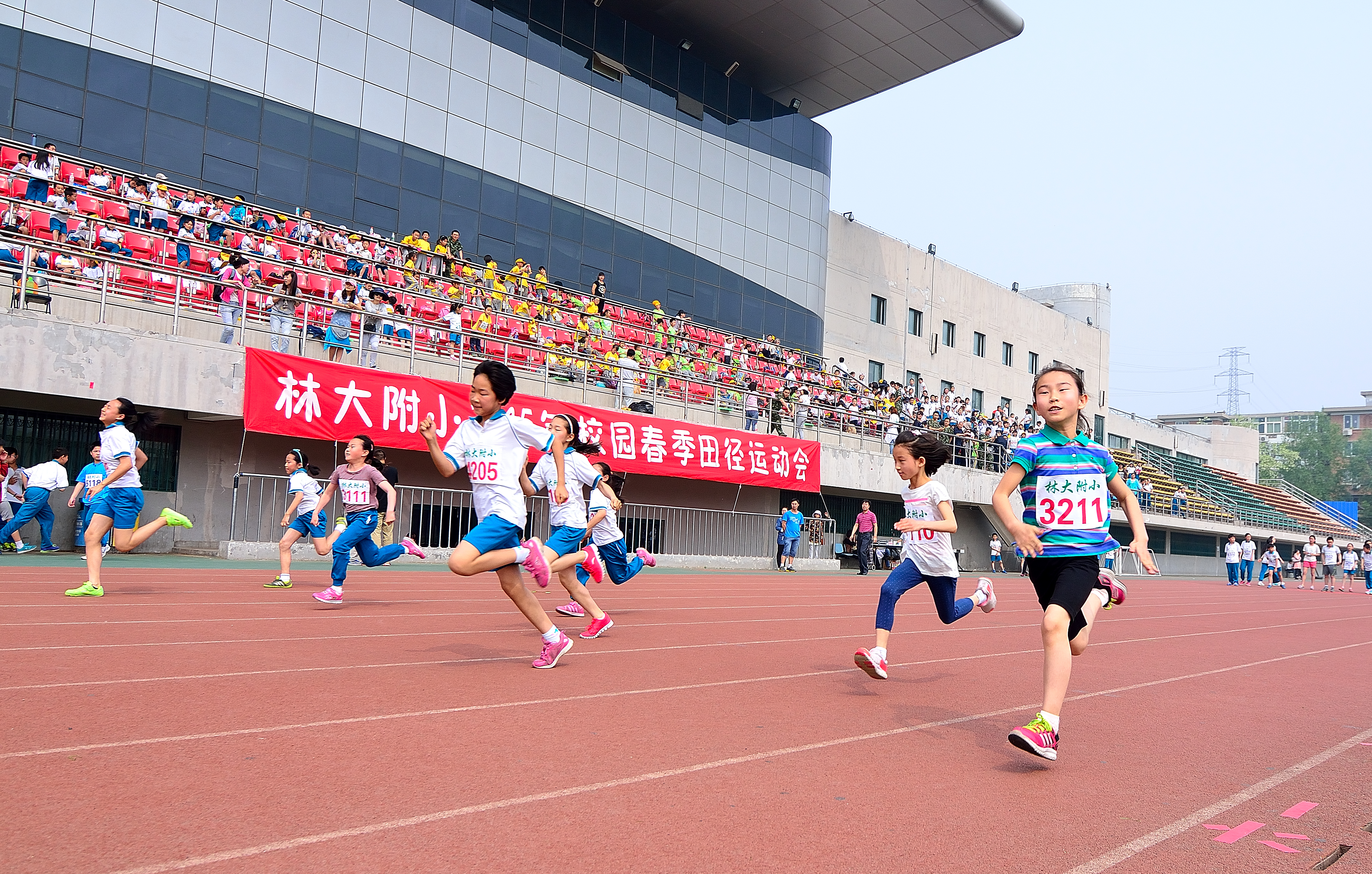 红色跑道上,参加径赛的运动员们你追我赶,奋勇争先;宽阔的操场南侧,参加田赛的运动员们,投掷跳跃,生龙活虎。场上,裁判员们一丝不苟;场下,小观众们呐喊助威。林大附小第二届田径运动会至始至终紧张有序,活泼热烈。