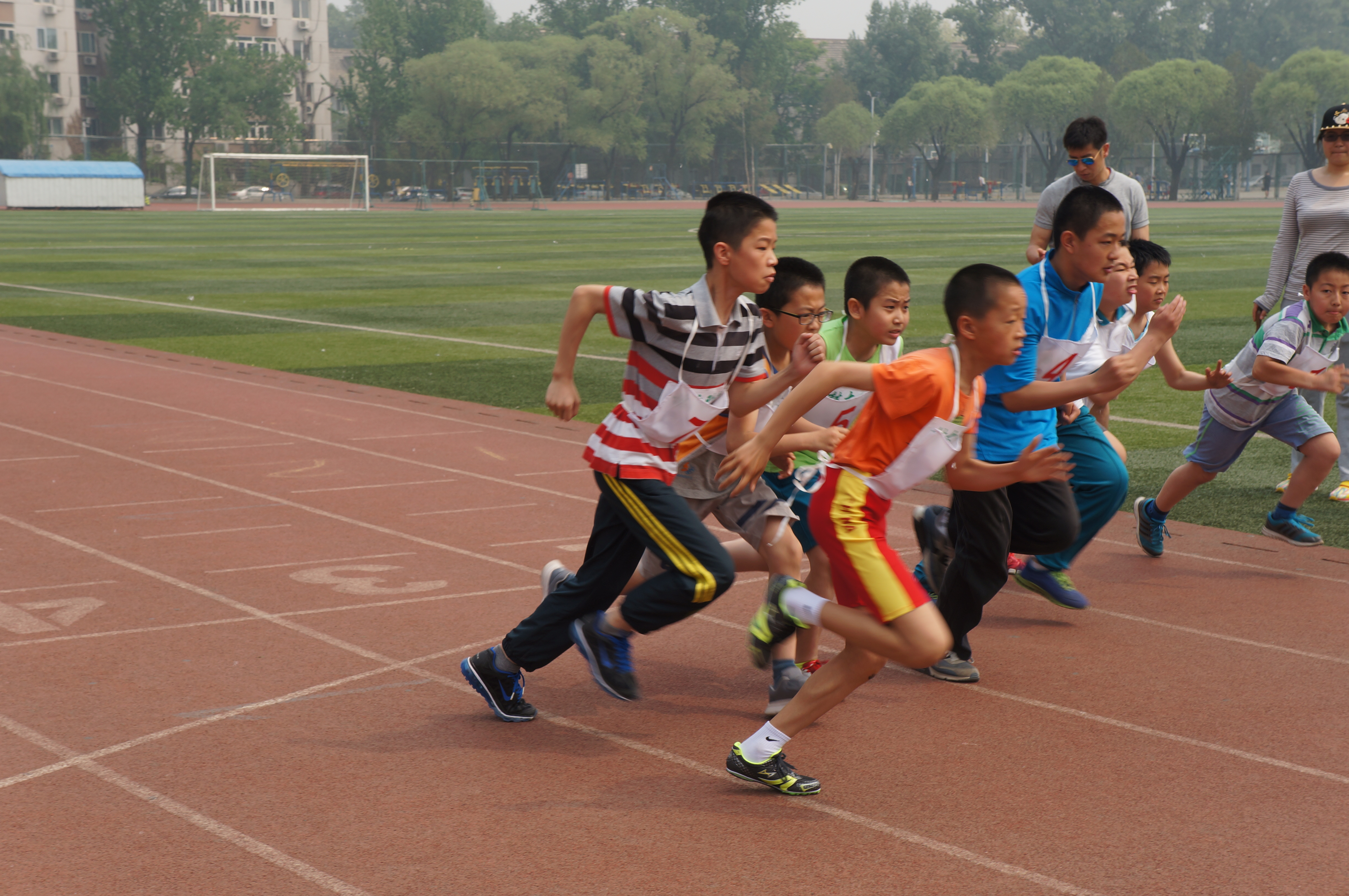 庄严的升国旗仪式后,林大附小高校长发表了热情洋溢的致辞,鼓励运动员们发扬“更快、更高、更强”的奥林匹克精神,奋勇拼搏,友谊第一,比赛第二。紧接着运动员代表庄严宣誓,最后,北京林业大学党委副书记方国梁教授亲自为运动会鸣枪。田径比赛在一片欢呼声中开始了!