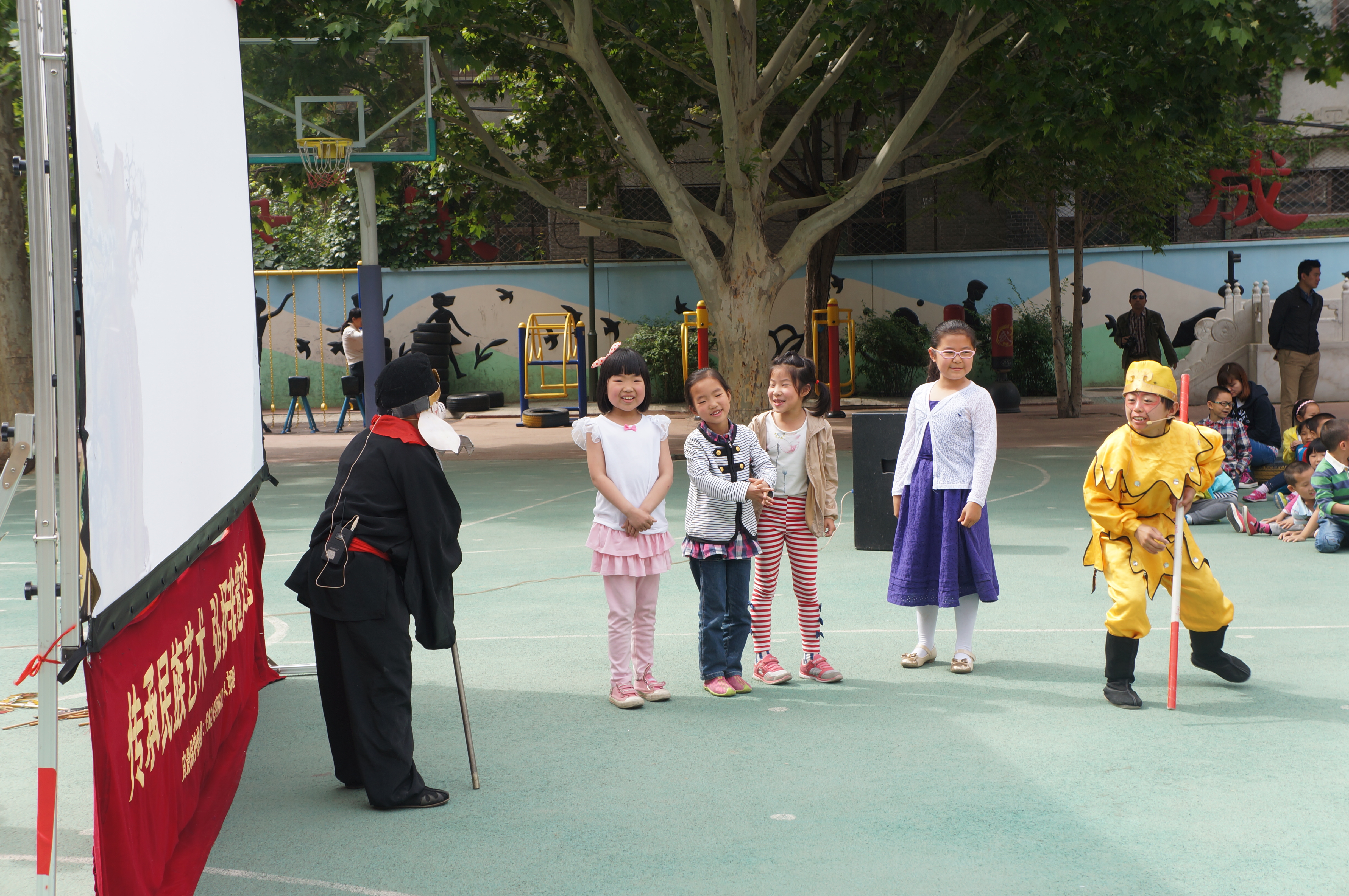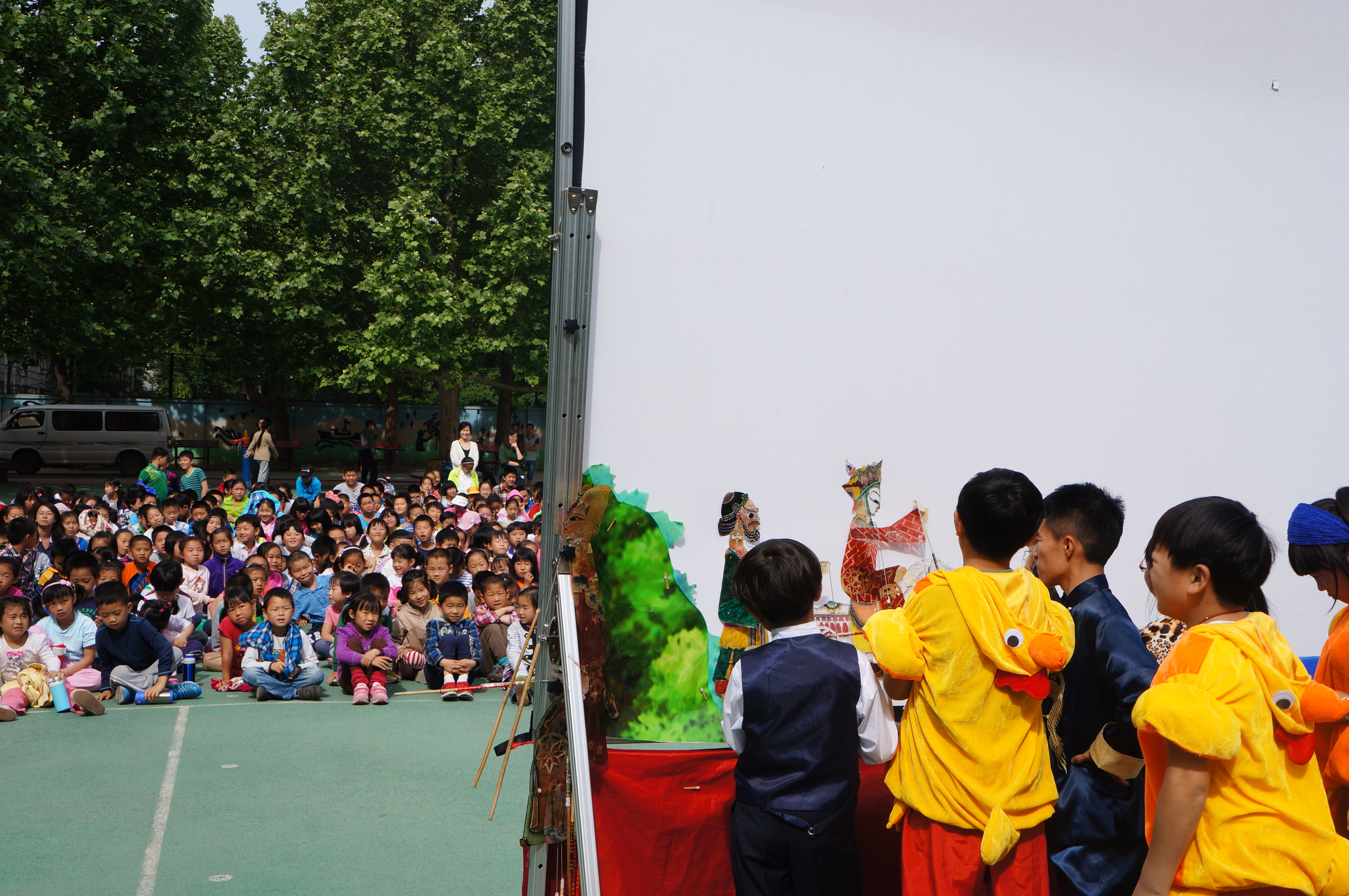皮影是结合了戏剧和音乐表演形式的古老艺术,经过演员们精彩的演绎,使同学们深切感受到了中华民族传统文化的魅力。小演员们有时在白色幕布后面,一边操纵戏曲人物,一边用流行的曲调唱述故事,有时跑到幕前和同学们来个有趣的互动。一个多小时的皮影戏,像磁铁一样吸引着每一个小观众。