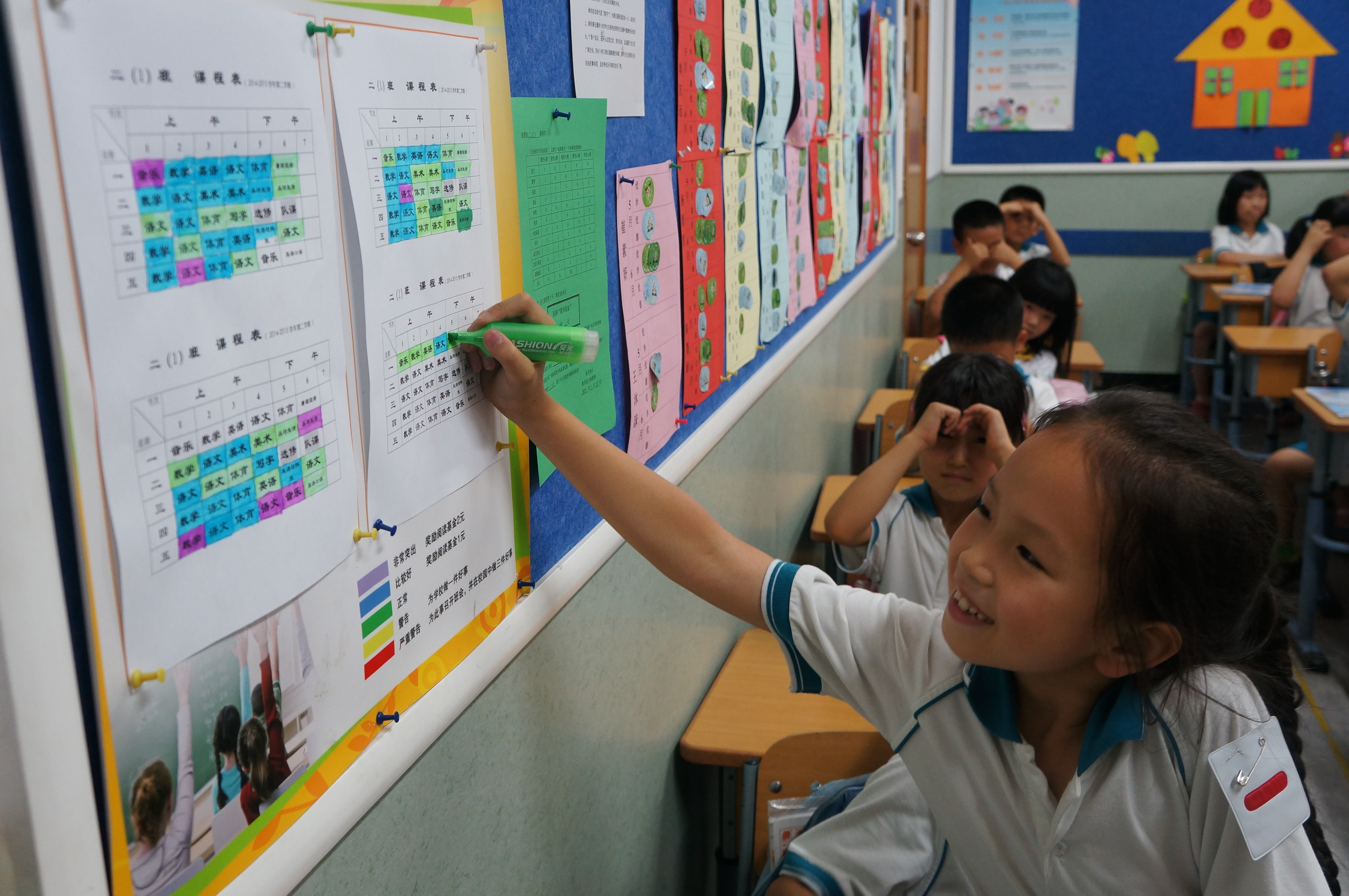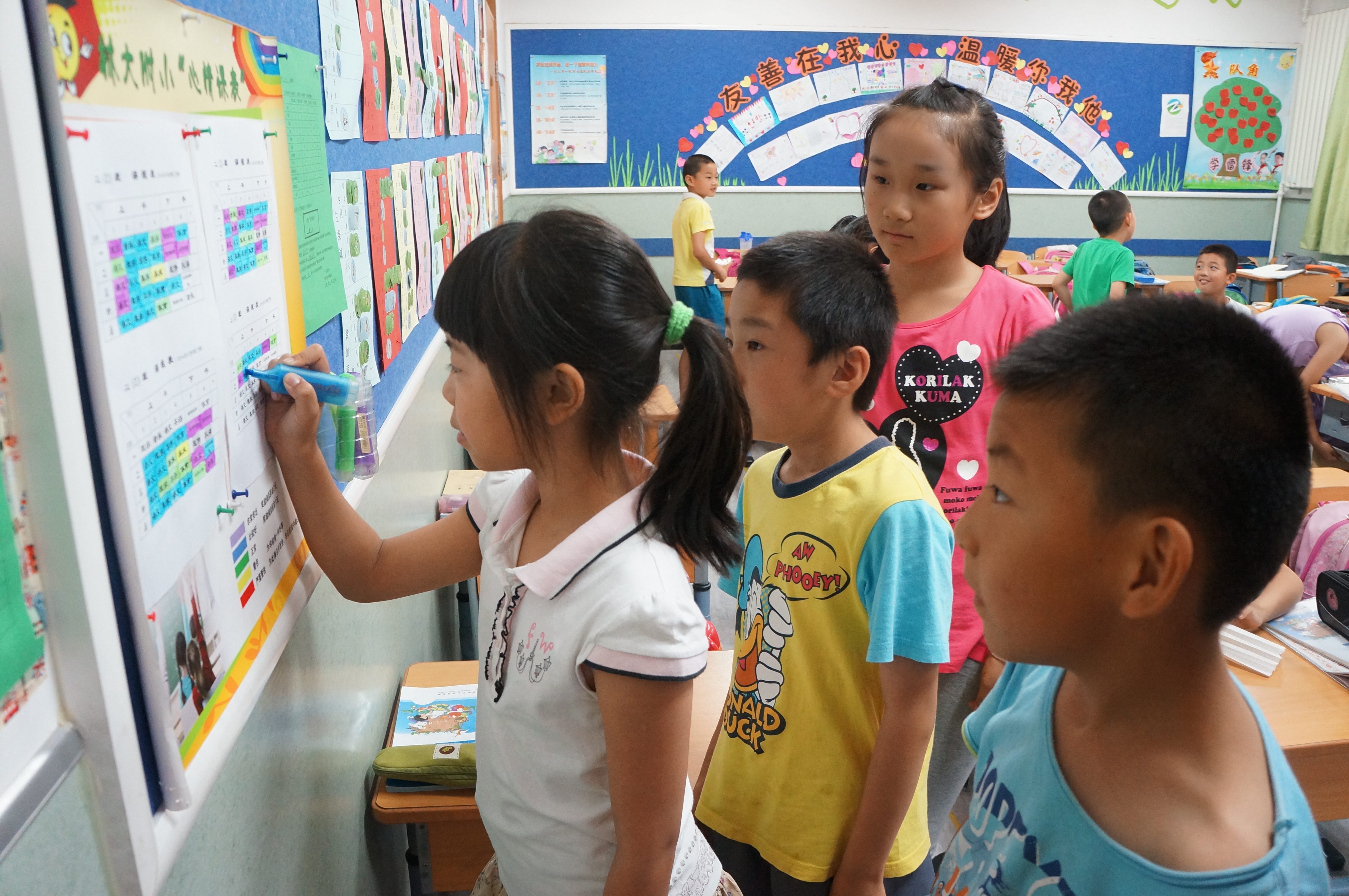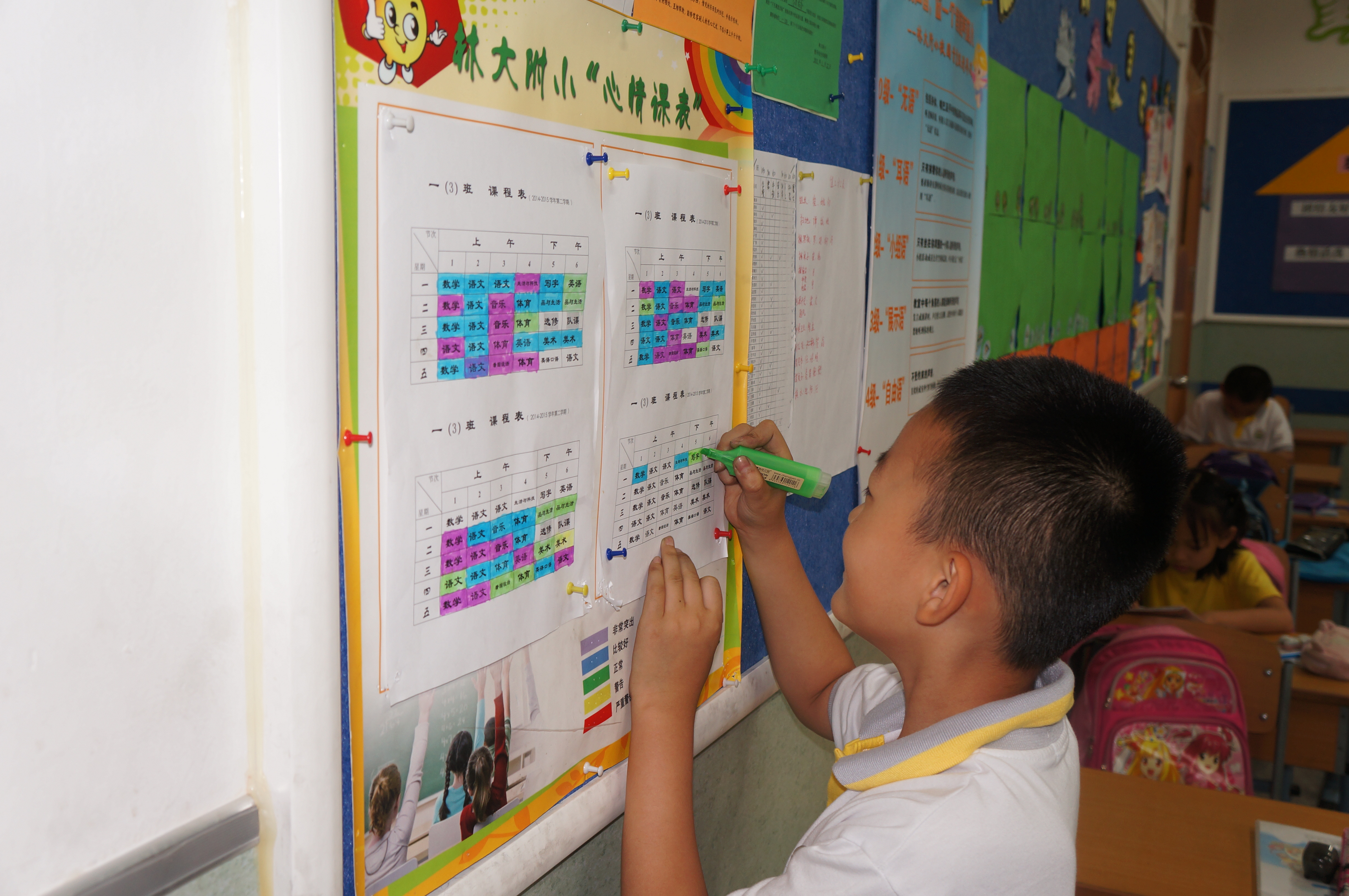 “叮铃铃”,下课铃声响了。你听吧,教室里中同学们总有一个非常关注的话题:“这节课我们班什么颜色?”“紫色”“蓝色”“……”不同的颜色,代表课堂的不同表现,也伴随着是同学们不一样的表情:喜悦、兴奋、懊丧、叹气……。这是一年以来林大附小实行的心情课表后课间常见的一幕。