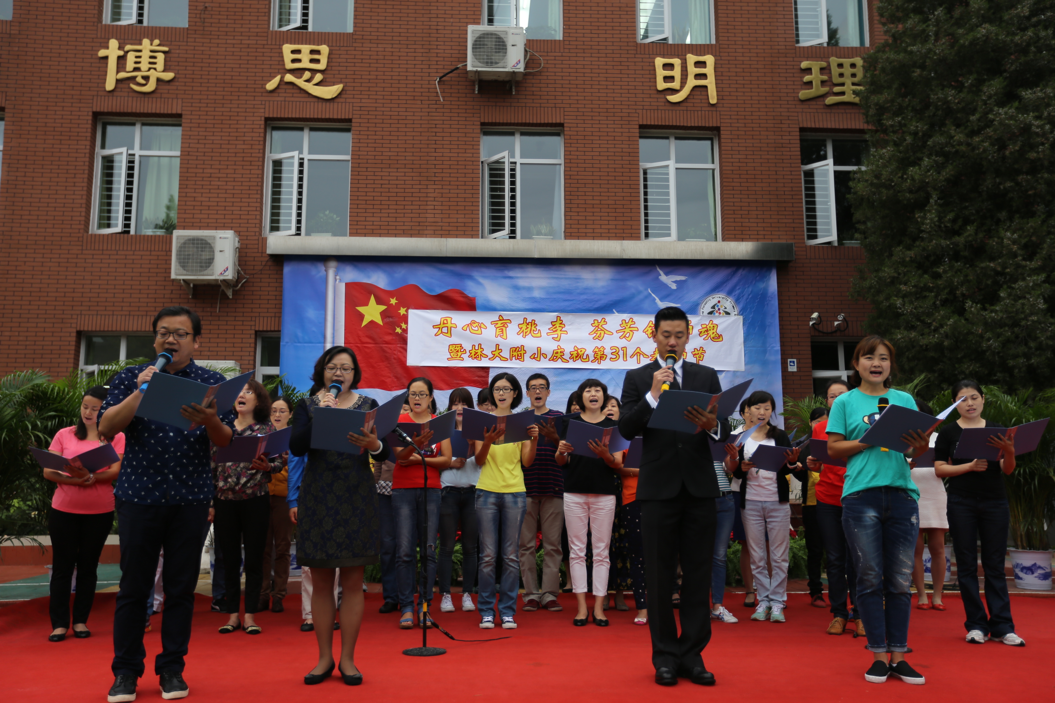 集会上,同学们屏息凝视,倾心参与:送上萌萌的小礼物,送上脆脆的歌声,送上了纯纯的祝福。老师们也是心潮澎湃,纷纷登台献艺。年轻老师们高歌一曲《光阴的故事》,同学们听得如痴如醉;全校老师们声情并茂情的朗诵,赢得了阵阵掌声。师生互动,无缝对接,尊师重教蔚然成风。