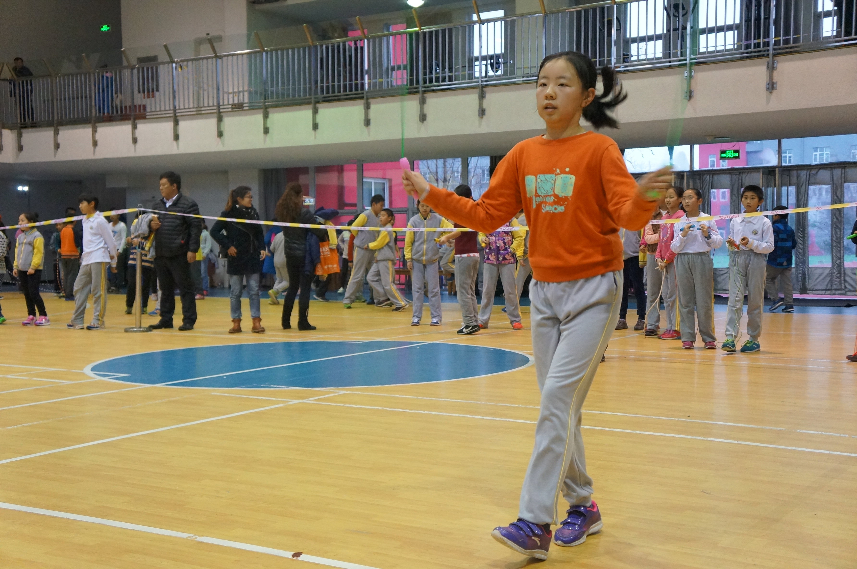 天寒地冻,雨雪交加。一到目的地,同学们跟着王老师立刻进行紧张的赛前热身,接着精神抖擞地走上赛场,奋力拼搏,赛出风格,赛出水平。虽说林小班少,但单摇双摇、单编双/,一带一单双摇/协同跳/辅助跳/集体项目等一项也不少。从海选到pk竞争环节,从比赛时间与同学们课外班的学习时间发生冲突,到同学们毅然决然选择参赛,从赛前队员们放弃了午休的时间,刻苦练习,到赛场上一个个灵巧跳跃的身影,如一只只快乐的音符在五线谱上闪烁,点点滴滴无不体现同学们爱校如家的纯真情感。正如六年级的都乐同学说的“在小学最后一年,怎能不为校争光?”。负责训练的胡老师和蒋老师辛勤奉献,任劳任怨,一次次抠同学们的跳绳动作,嗓子也喊哑了;带队参赛的老师密切合作,力求准备工作严谨到位:与家长沟通,协调车辆安排,备齐参赛用品,时时嘘寒问暖,还十分贴心地为每个队员送上了增强热量的’士力架”。经过大家的共同努力,顺利完成了让家长放心,让同学们“心力”“胆力”“体力”得以锻炼的跳绳比赛的体验。