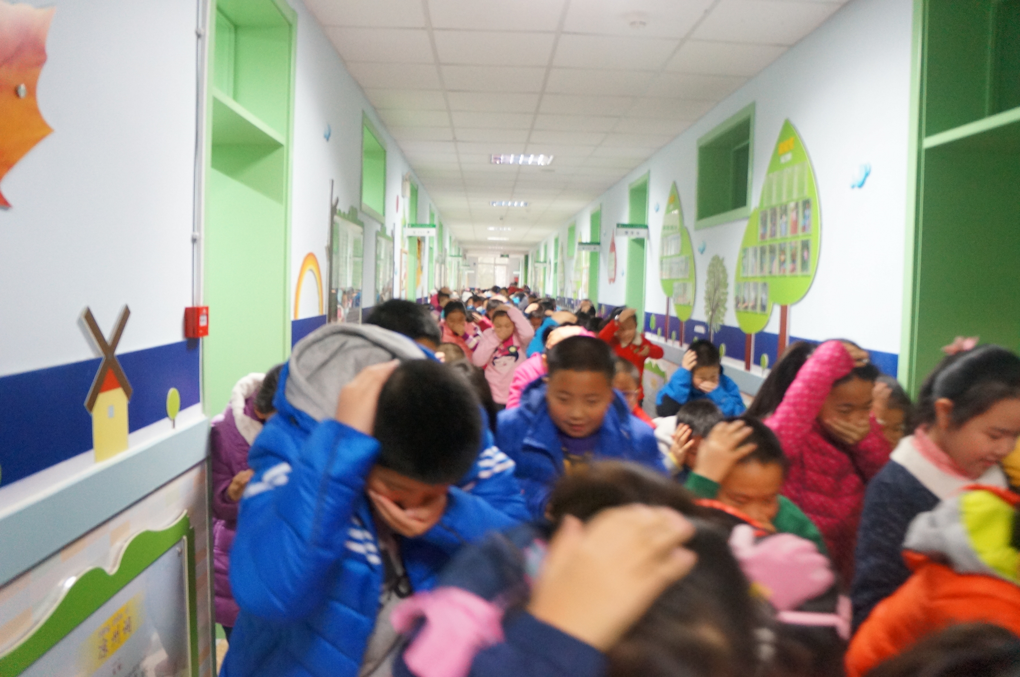 此次演习,分批次,单练再合练。楼道里哪个位置由谁负责,教室里同学们先做什么后做什么,交代清楚,训练到位。一次次演练后,全校13个班全部自觉服从指挥,不慌不忙,不挤不闹,整个演习过程紧张高效,撤离时间越来越短。