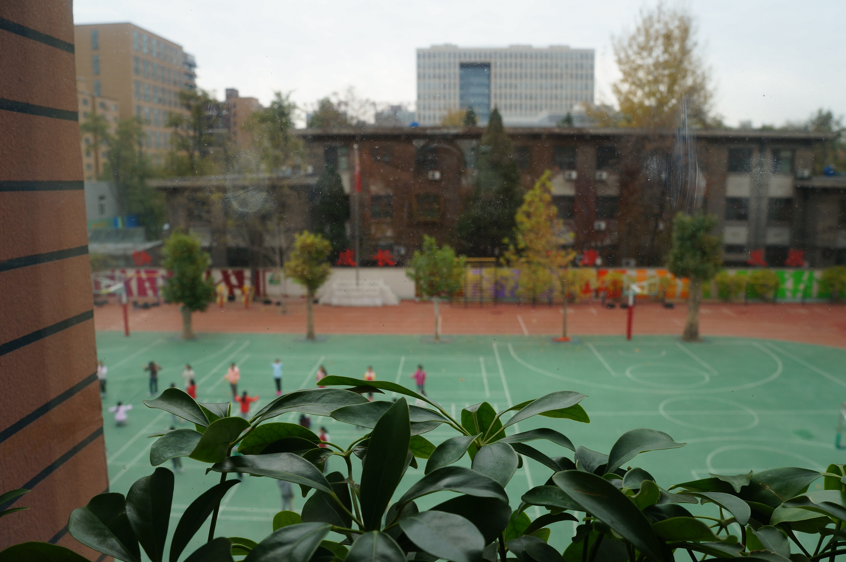 镜头一:窗台上,楼道里摆上几盆生机盎然绿色植被,每间教室里安装了空气净化器,再无人戴口罩上课了。