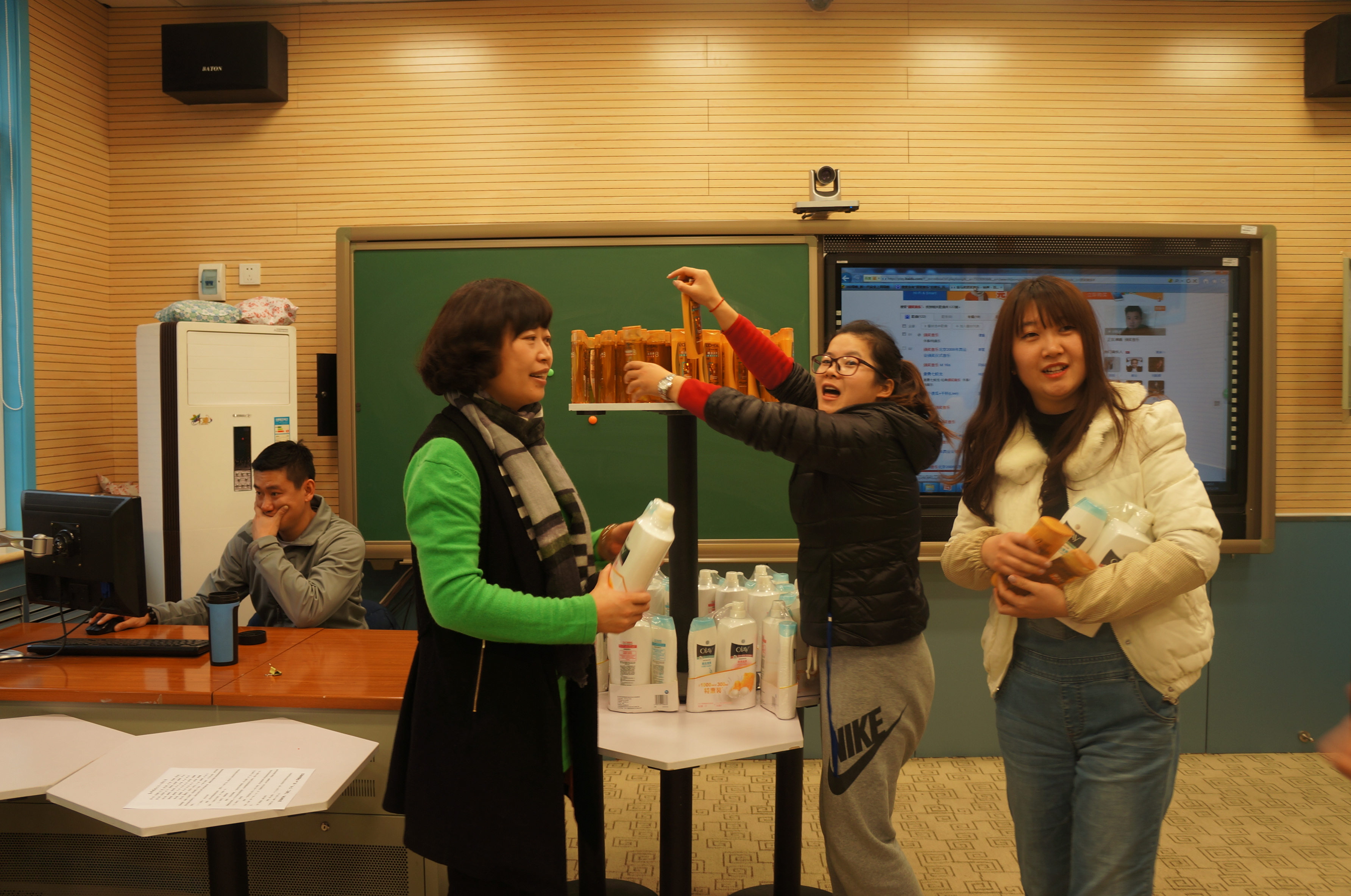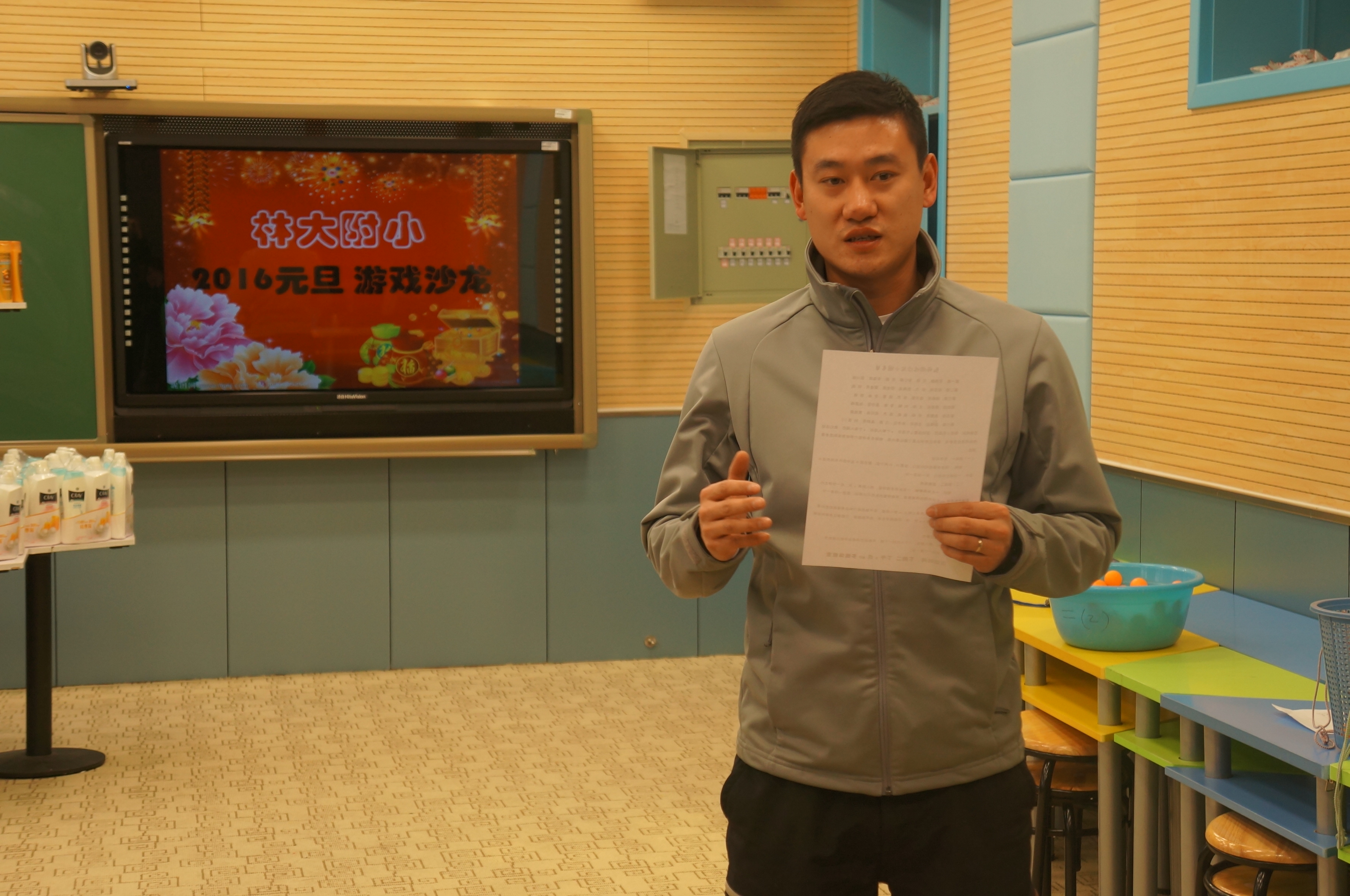 12月29日下午,从林小多媒体教室传来了一阵阵欢笑声,老师们各个喜笑颜开,欢天喜地。要知道-校工会精心策划的组织的“2016元旦,游戏沙龙”,欢乐开场了!会场气氛那是相当的happy呀!
