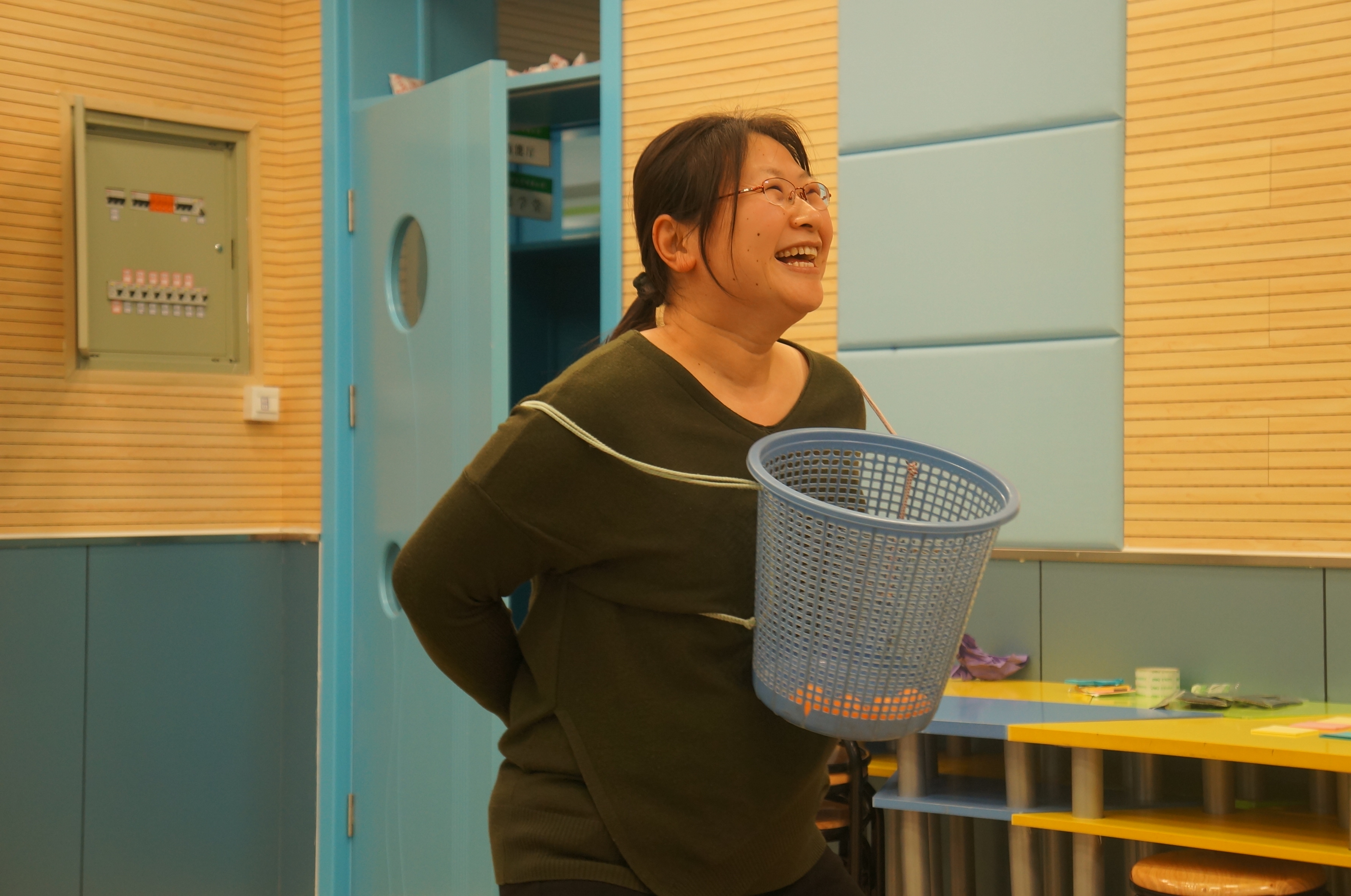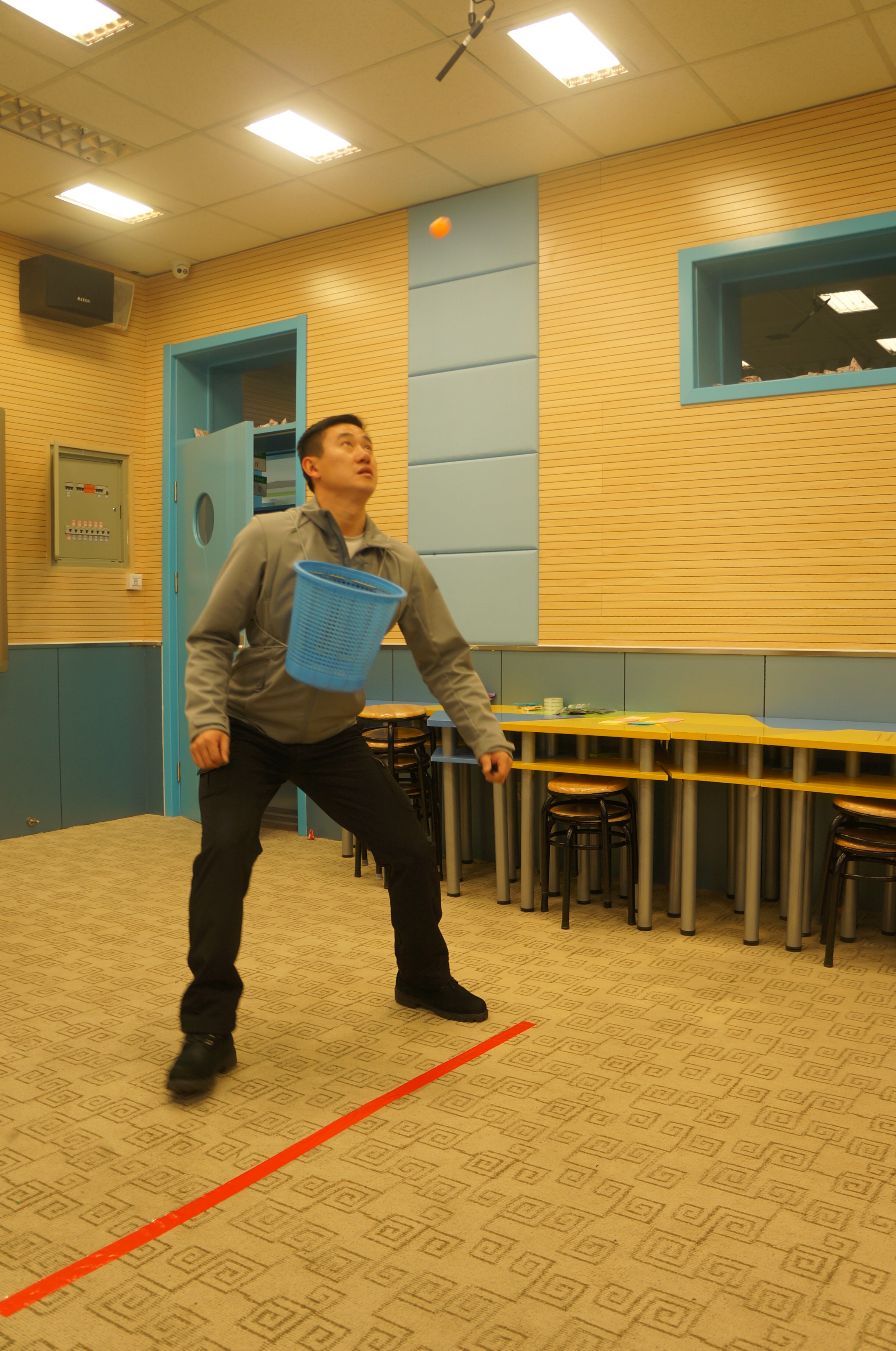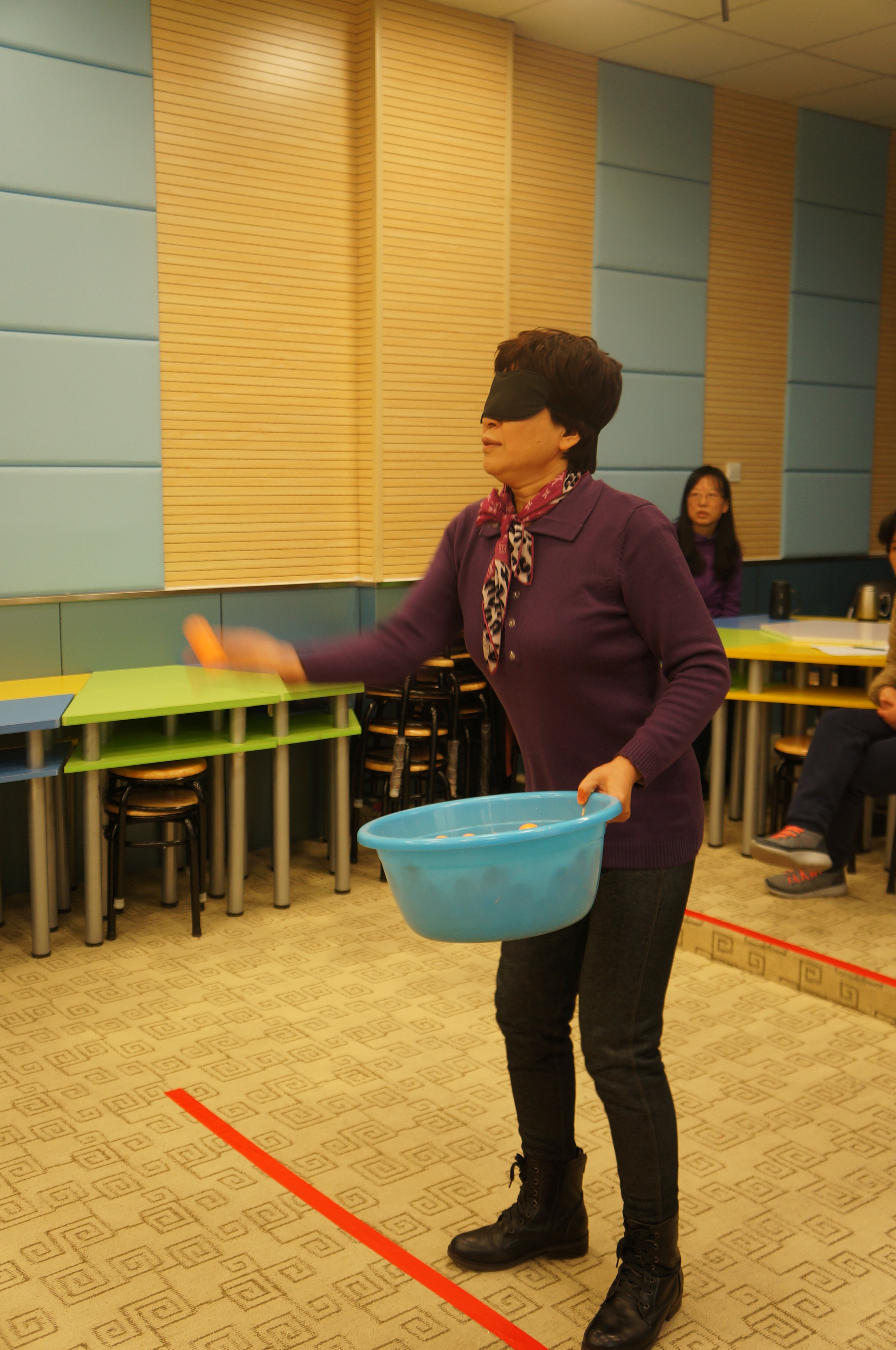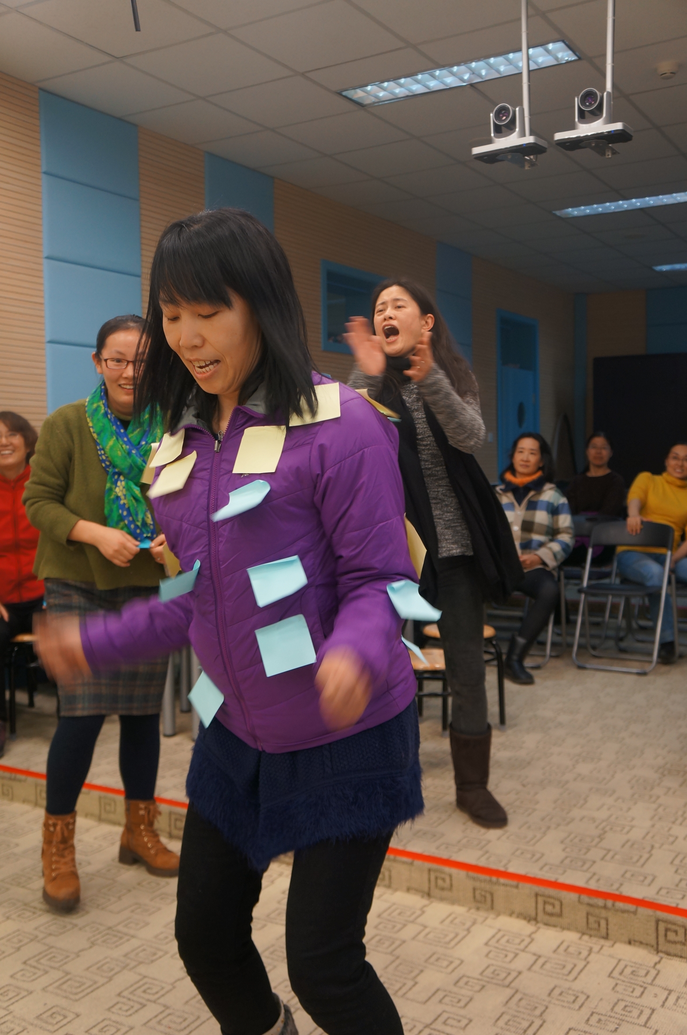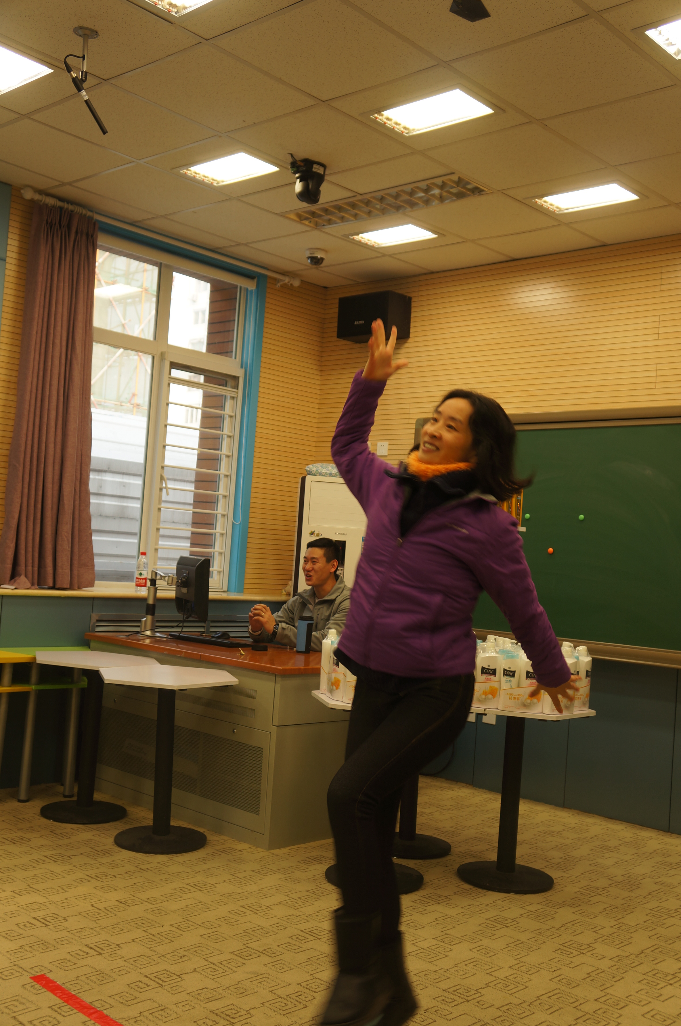 抽签分组,切磋练习,四个游戏项目,风趣幽默。老师们也是八仙过海,各显神通。你看吧,“夹乒乓球”的,有的坦然自若,不急不躁,有的手忙脚乱,欲速则不达;“蒙眼投球”的,心有灵犀一点通,竟有百发百中的神功;“疯狂来往”,比划的和猜词语的,脑洞大开,配合默契;“抖标签”的最滑稽:随着疯狂的音乐手舞足蹈,使出浑身解数……“哈哈”“哈哈哈”,老师们笑疼了肚子,笑弯了腰,场上场下乐翻了天!