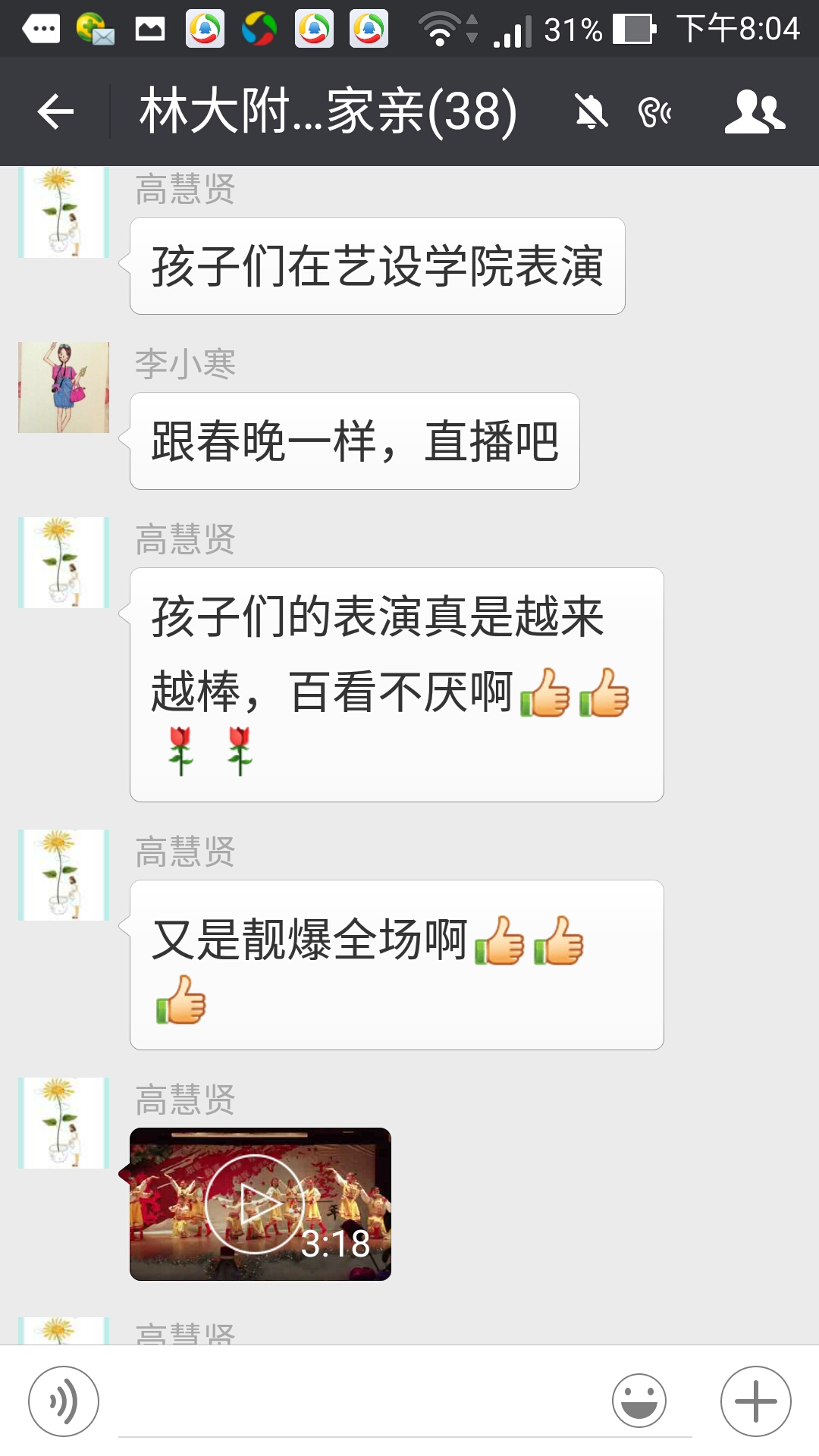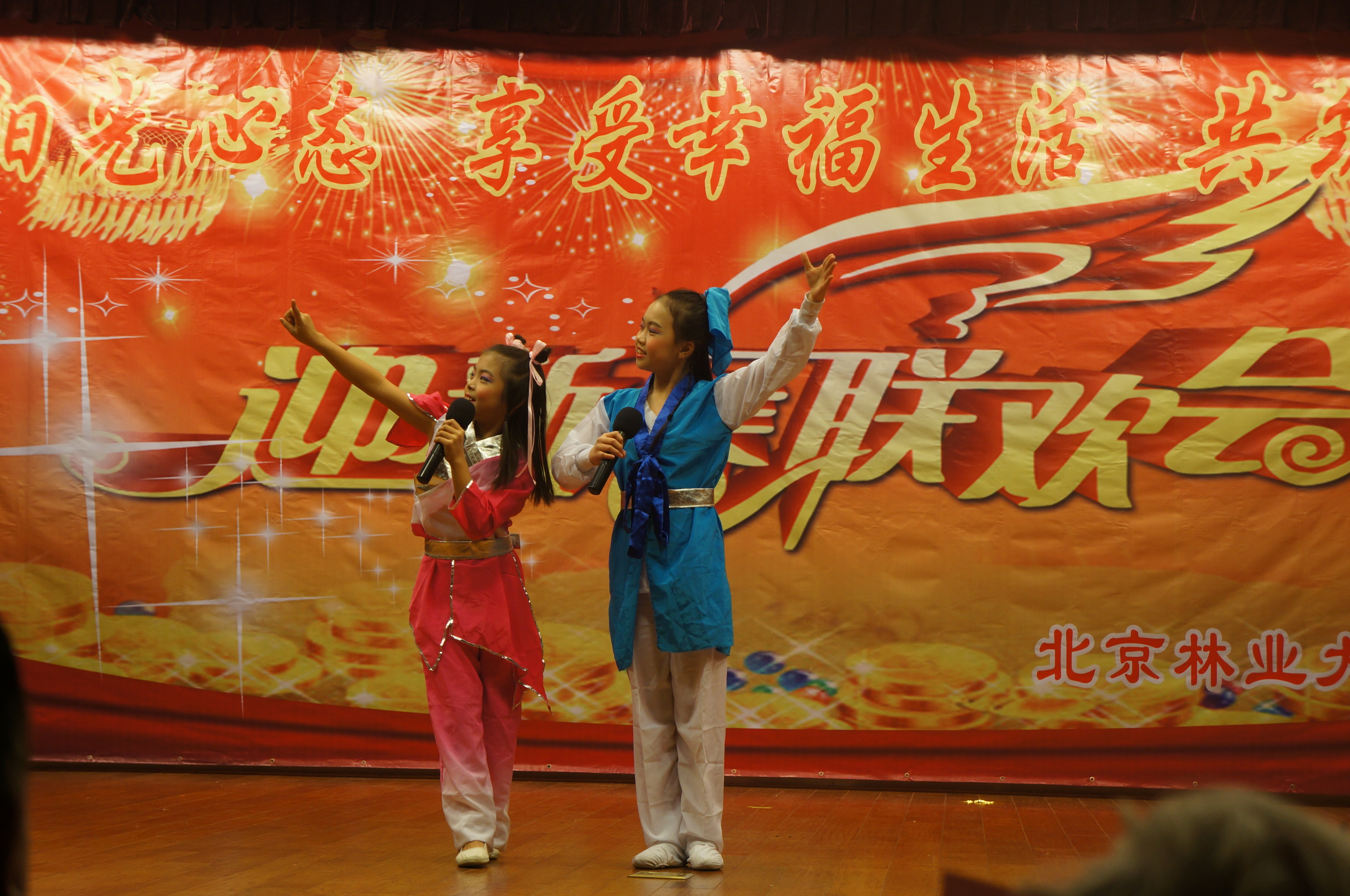 12月中下旬,22位小演员组成的演出队,代表林大附小应邀参加了老干部处、艺术设计学院、园林学院、林大的迎新活动。每次林小的演员一出场,美翻了,爆棚啦,短小精悍的节目,赢得阵阵尖叫:李天韵领衔的集体舞《我的天堂》悠扬豪放,美轮美奂;都乐、朴智荣等小歌手的歌曲串烧,清新时尚,气场强大;蒲依依、李彤表演的民族韵味浓厚的黄梅戏,举手投足有模有样。小演员们在不同的舞台上,传递着真挚的问候,拉近了与各院系的心与心的距离。