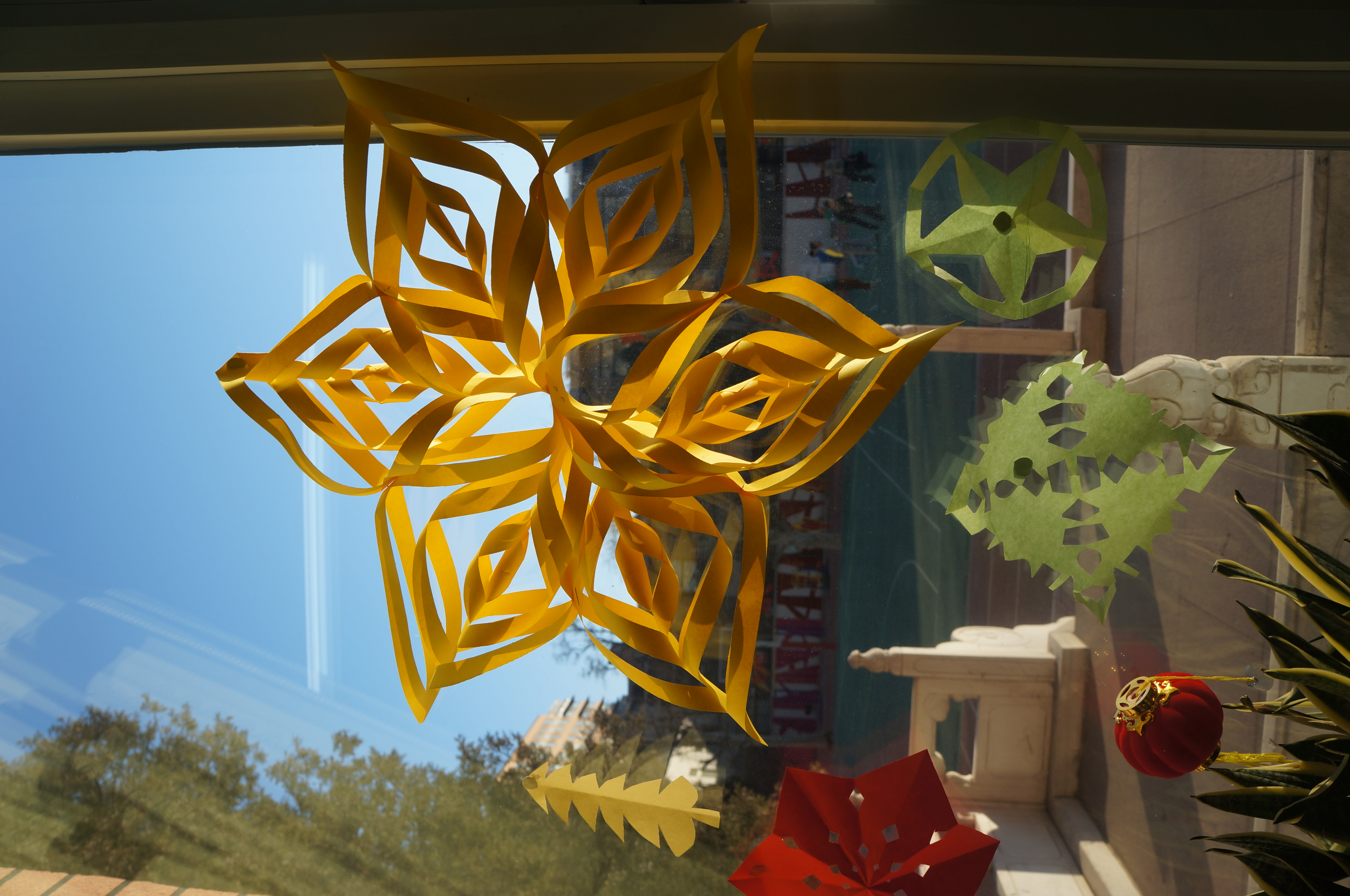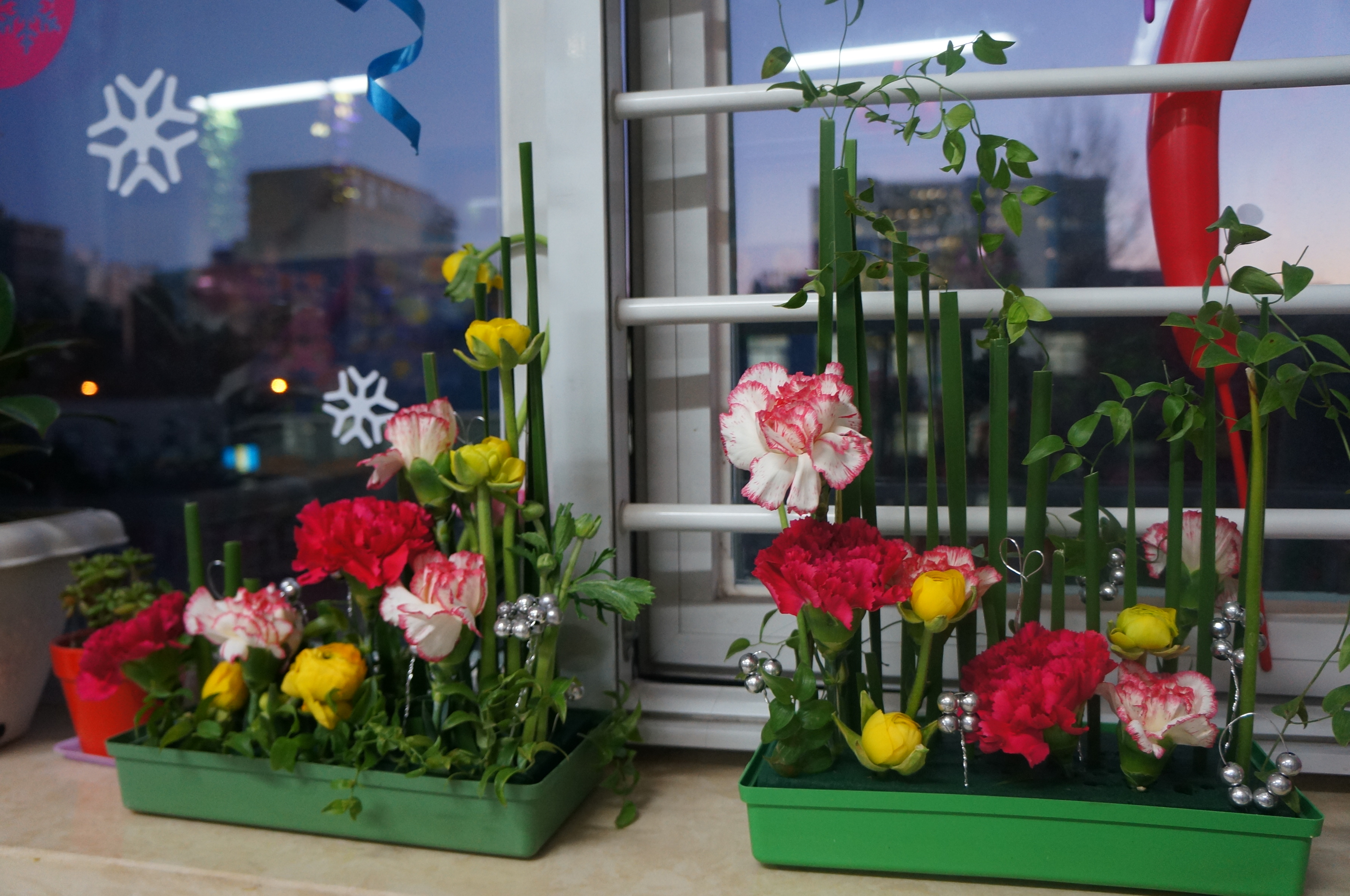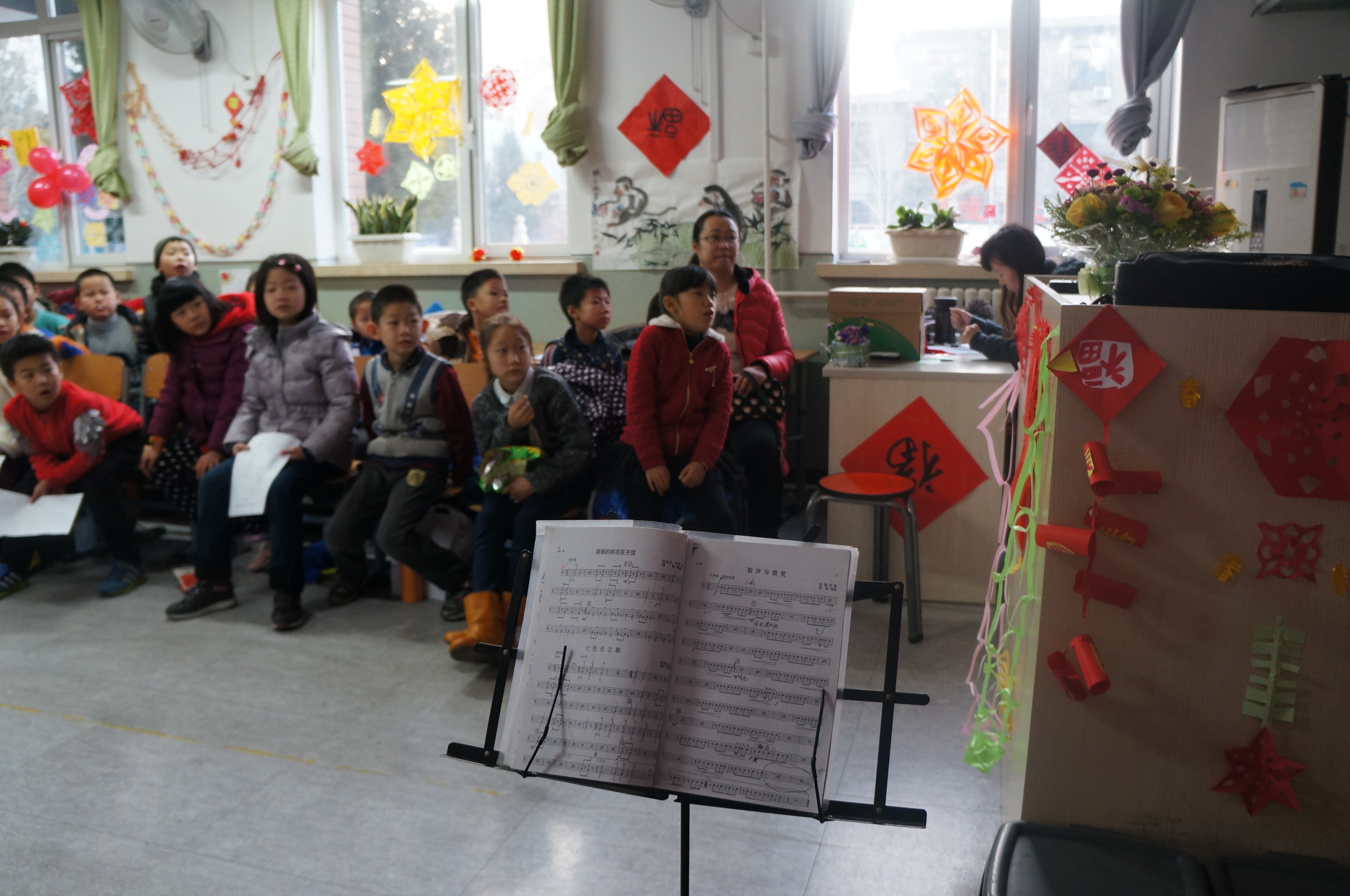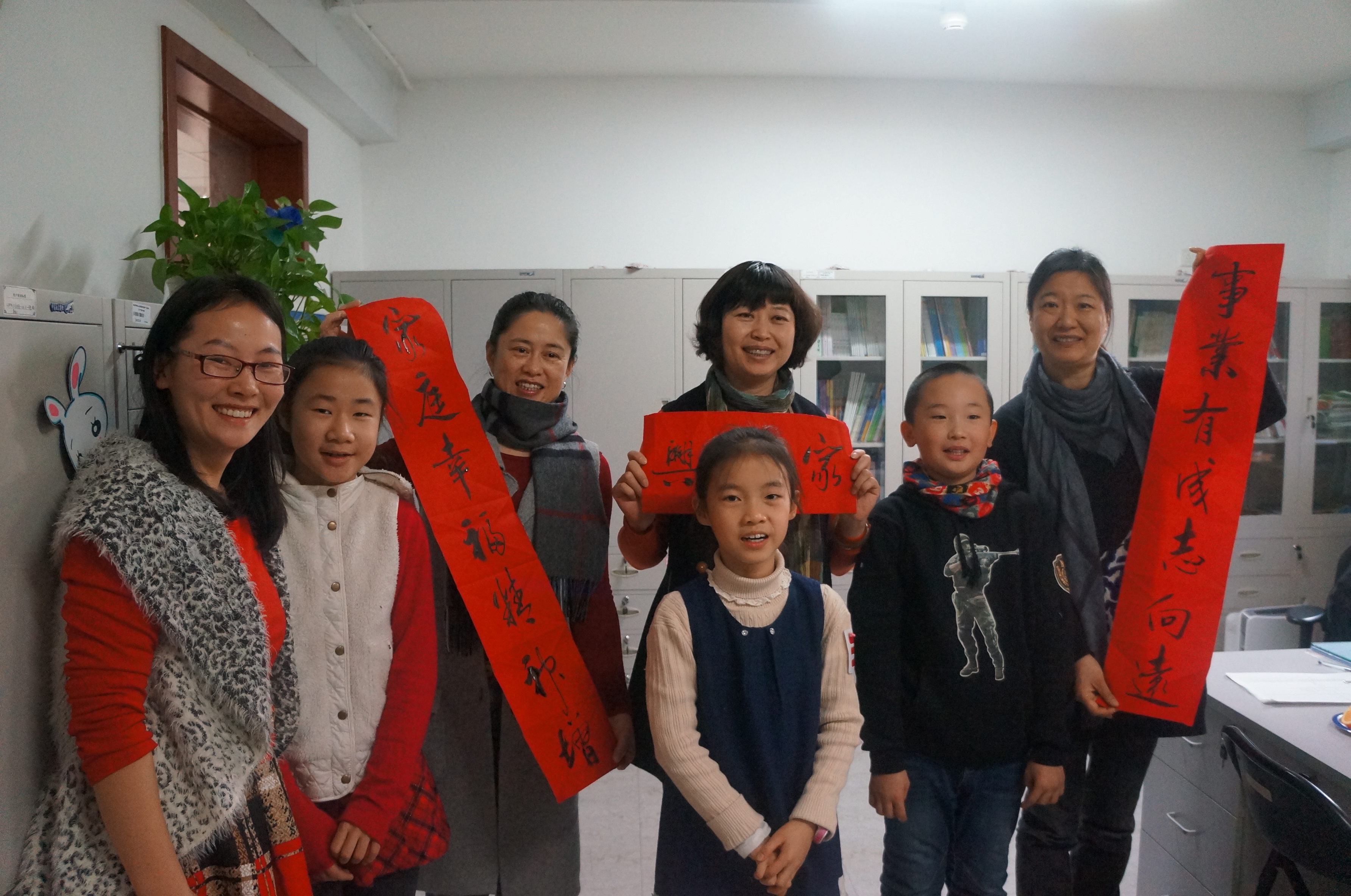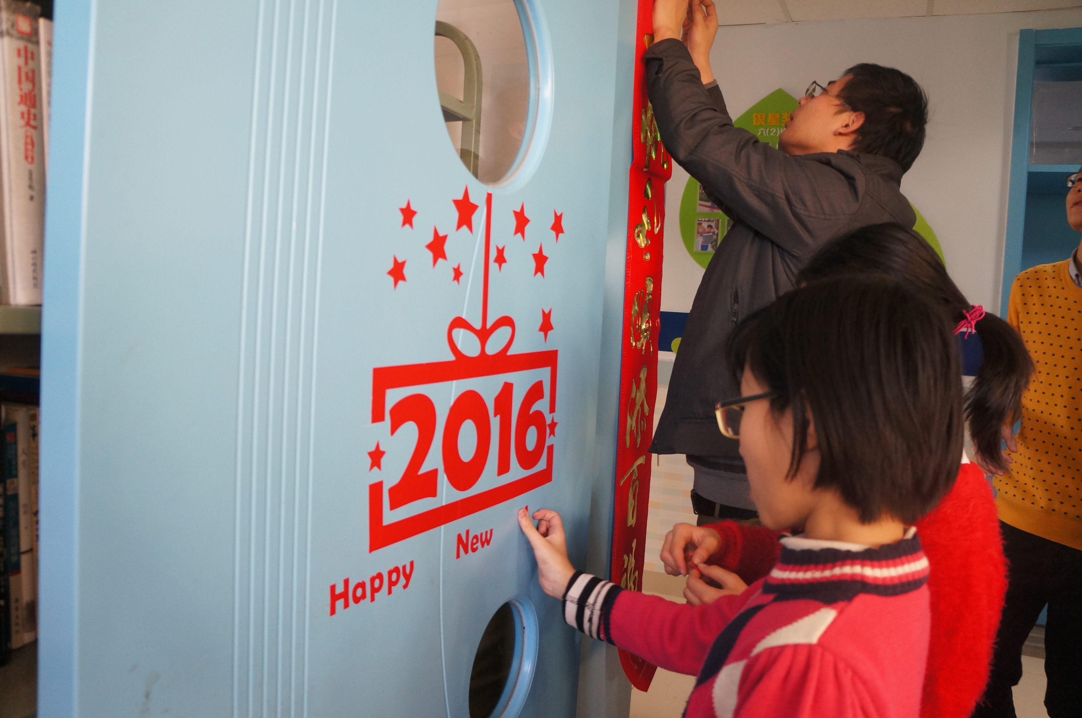 为了把教室变成欢乐的舞台,各班张灯结彩,披红挂绿。写春联,贴福字,画板报,剪窗花,挂拉花……年味浓,喜气足!老师同学齐动手,尽情装扮各自心中的舞台。创意多多的王琳老师,竟然在被白雪覆盖的操场上书写出了巨大的祝福。别具一格的装饰,增添了节日的气氛。