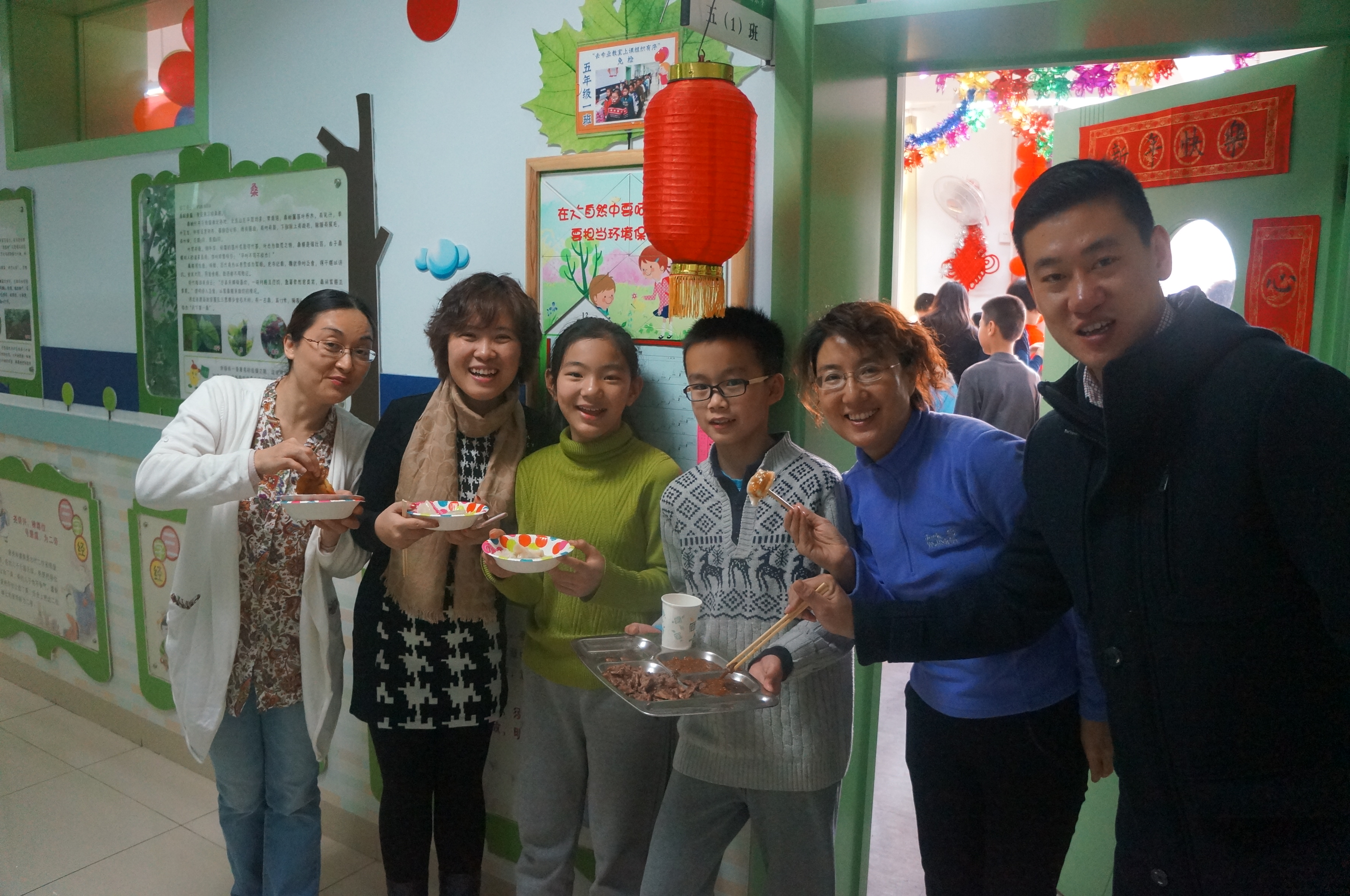 12月31日,活动现场喜气洋洋,惊喜连连。迎新视频“笑”果明显,憨态可掬的动物造型,风趣幽默的表演,乐坏了大人和小孩。高校长带领校领导班子满面春风地走进各班,诚挚的问候和甜甜的糖果,温暖了老师和同学。各班迎新活动丰富多彩,高潮迭起,深深感染着到会的每一个人。音乐会,游艺会,联欢会……吹拉弹唱陶醉期间;包饺子,烤牛肉,尝糕点……舌尖上的美食回味久远。从始至终,教室内外,欢声笑语,热闹非凡。