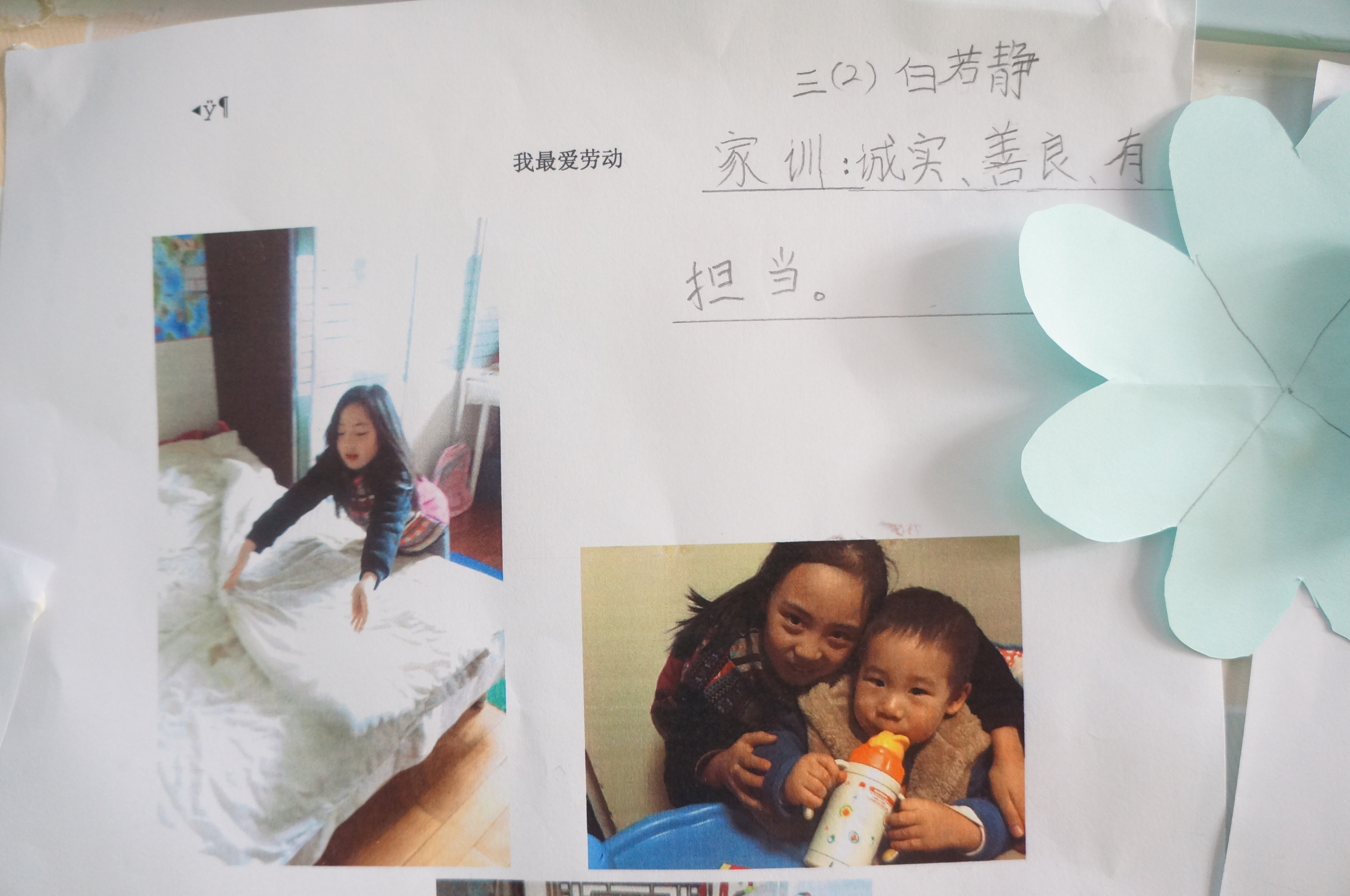 一提到“作业”,您是不是以为为只有语数外的学科作业,你可知晓,林大附小的孩子多来,一直都在完成一项特殊的作业-----德育作业。一个学生的健康成长,离不开家庭、学校和社会的共同潜移默化。德育教育就是要从小抓起,从生活中的细节抓起。父母是孩子的第一任老师,家庭是孩子的第一课堂,为了延续巩固上学期的“责任于心,担当于行”,临放寒假前,德育处老师像知心大姐姐一样,引导同学们,积极动脑,思考怎样度过一个充实愉快的假期,还特意写了一封信,进行了量化指导:比如:制定寒期计划;感恩社会,尝试志愿者活动:给自己和自己的伙伴设计一次志愿者活动;在旅行之中,了解家庭、社会、国家发生的变化,结合中小学生守则、核心价值观的内容,对旅游中的所见所闻发表看法;感恩父母、担当责任家务事:每天为家人做一件力所能及的家务事,体现家训家风等等。