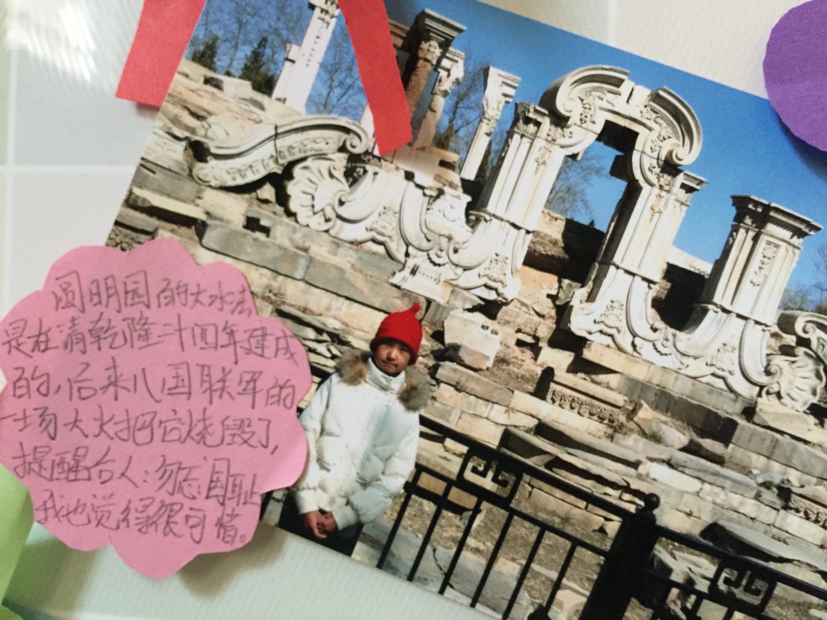 巍巍华夏,山川壮丽。文明古国,历史悠久。幅员辽阔的神州大地上分布着一处处景象骄人、数量众多的名胜古迹。走近历史遗迹,你会观察到遗迹的现状如何,不由思考遗迹当中包含了什么历史和故事,能感受到了哪些文化的积淀?带着一个个问号,打开尘封的记忆,六年级两个班于3月份开展了一次“我与历史遗迹的对话”的语文实践活动。