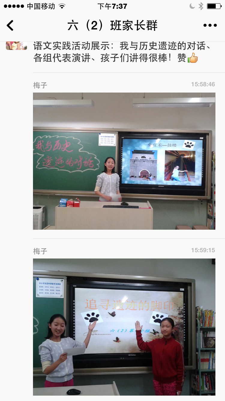 语文实践活动,首先要“动”起来,还得姓“语”,即:必须紧紧围绕语文课程目标和内容的核心----语言文字应用的活动。同学们采取多种学习方式:实地观察与调查记录相结合,查阅资料和收集整理相结合,书面表达和口语交际相结合,先个人后集体相结合等等,把语文学习落实在具体的实践活动中,在活动中学会学习,激发情感。同学们完成了了图文并茂的手抄报,制作了丰富形象的ppt,以小组为单位展示考察结果。发言的同学落落大方,慷慨陈词,课堂气氛活跃,互动不断。师生还改进了评价标准,侧重过程的参与,为表现出色的小组发了奖呢!