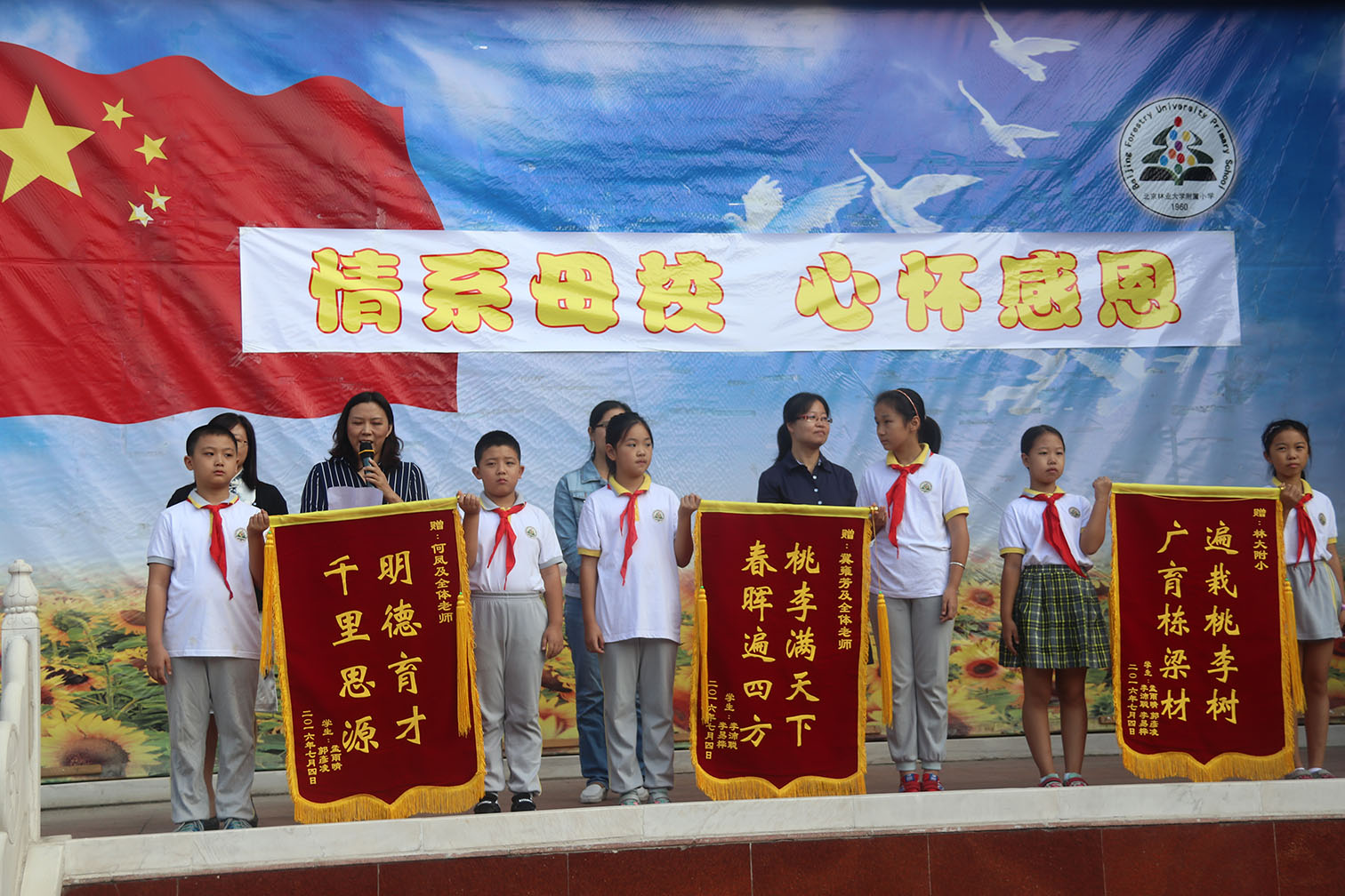 912日,林大附小原四年级孟雨晴、郭彦凌、李易桦、李沛聪四名同学的母亲们,手持锦旗来到林大附小,感谢学校和老师们四年来对孩子的精心培育和付出。
