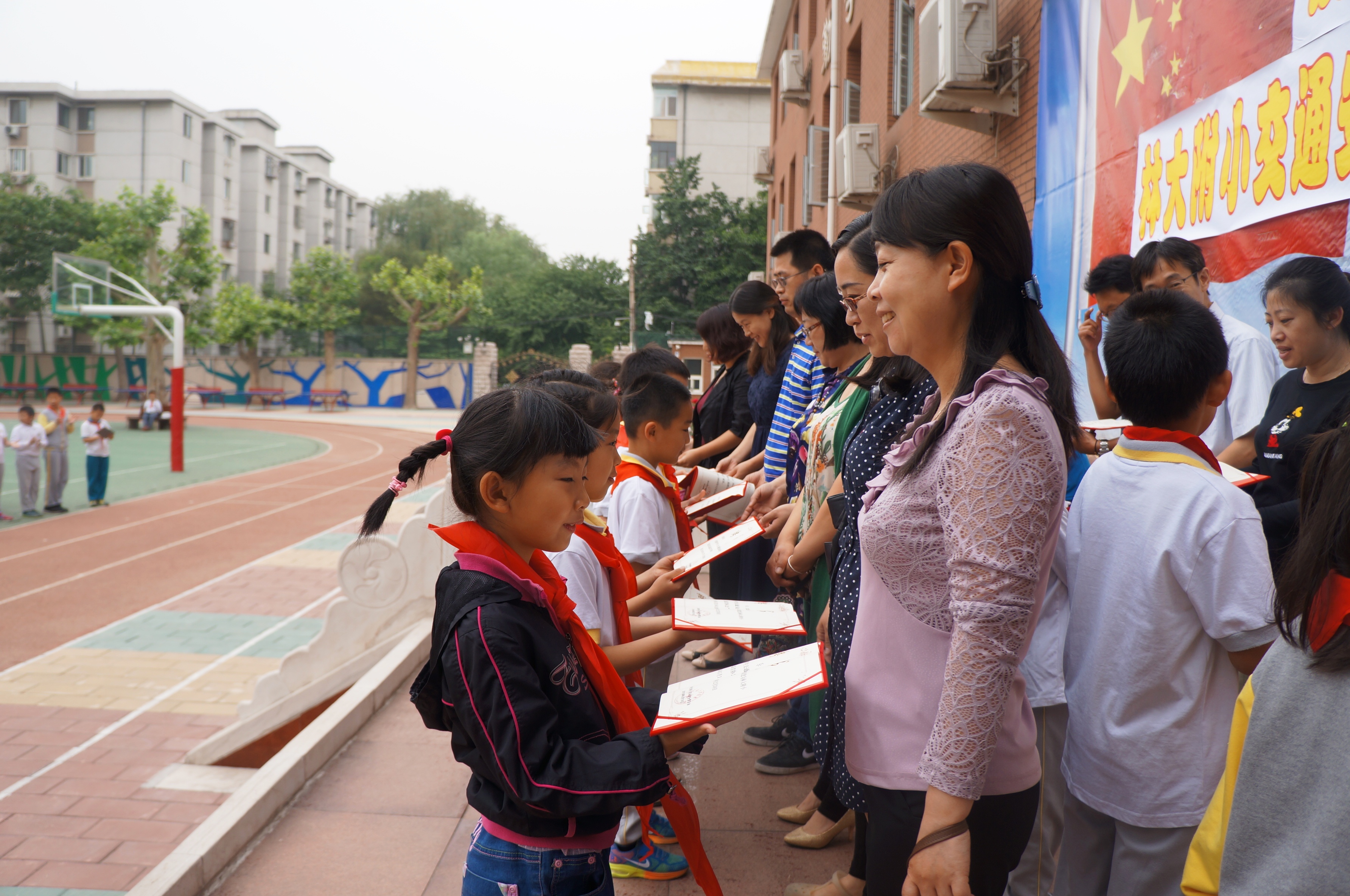 当前有关校园安全事故时有发生,维护校园安全已成为全社会关注的热点问题。林大附小东门复杂的交通环境给孩子们出入校园带来了极大的安全隐患。为此,上学期在高校长的号召下,学校成立了交通安全志愿者协会,并向首批家长志愿者颁发了证书。