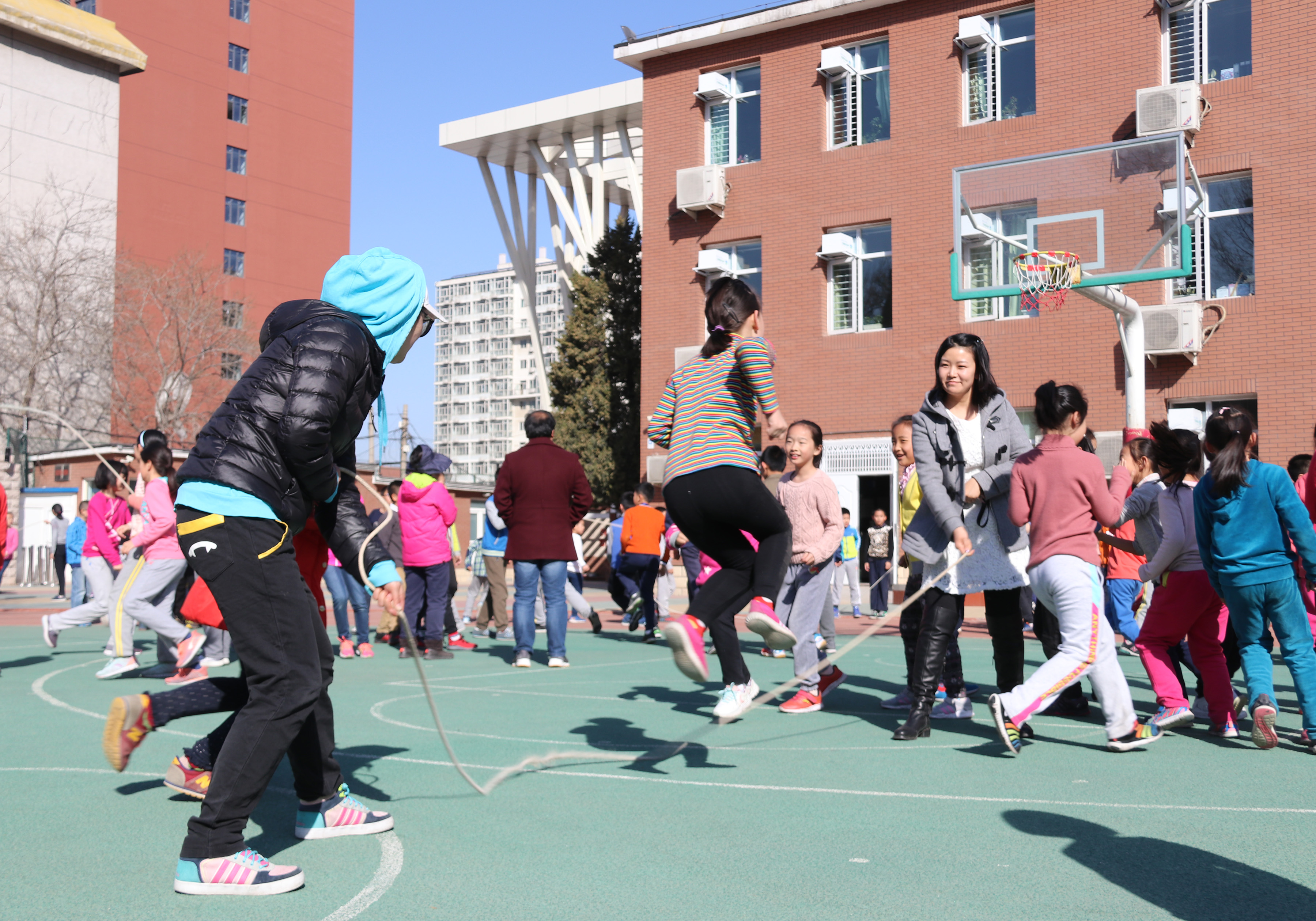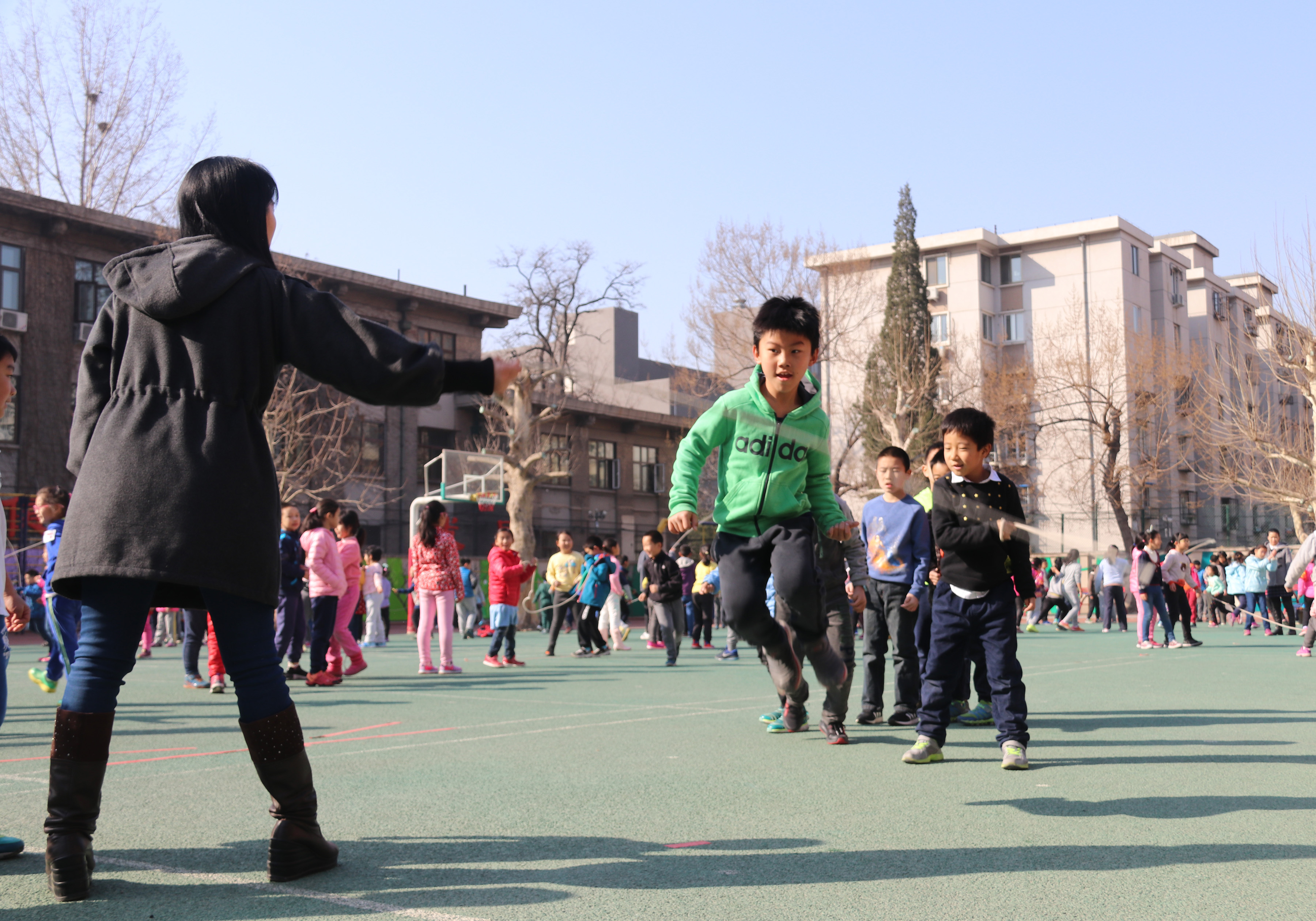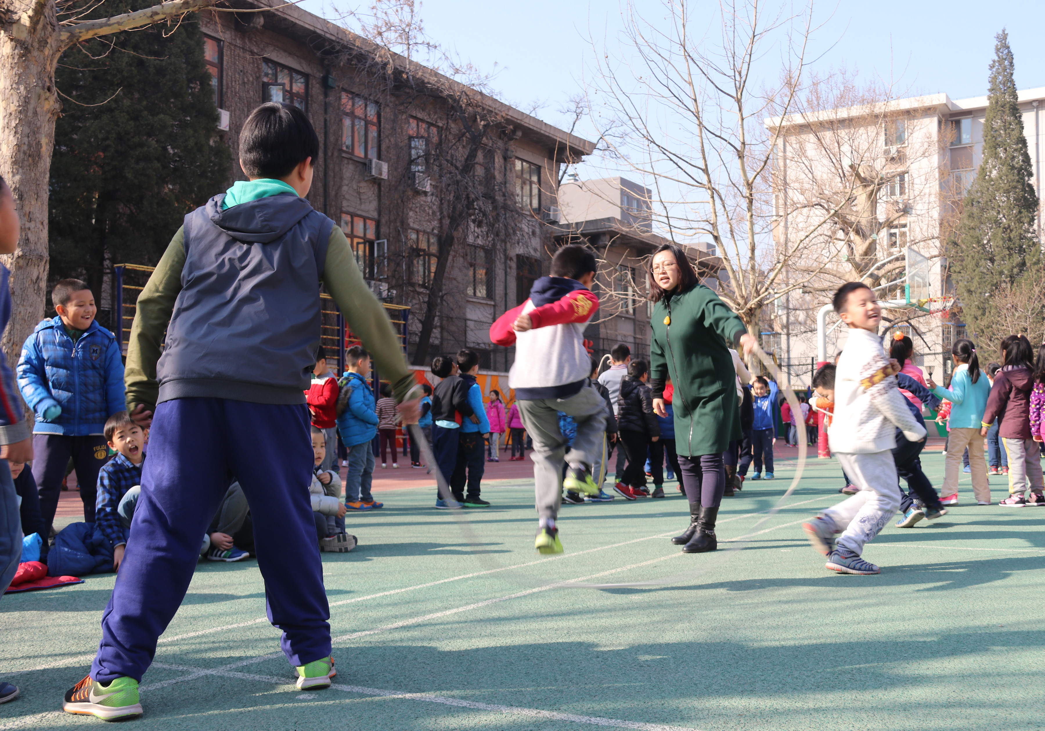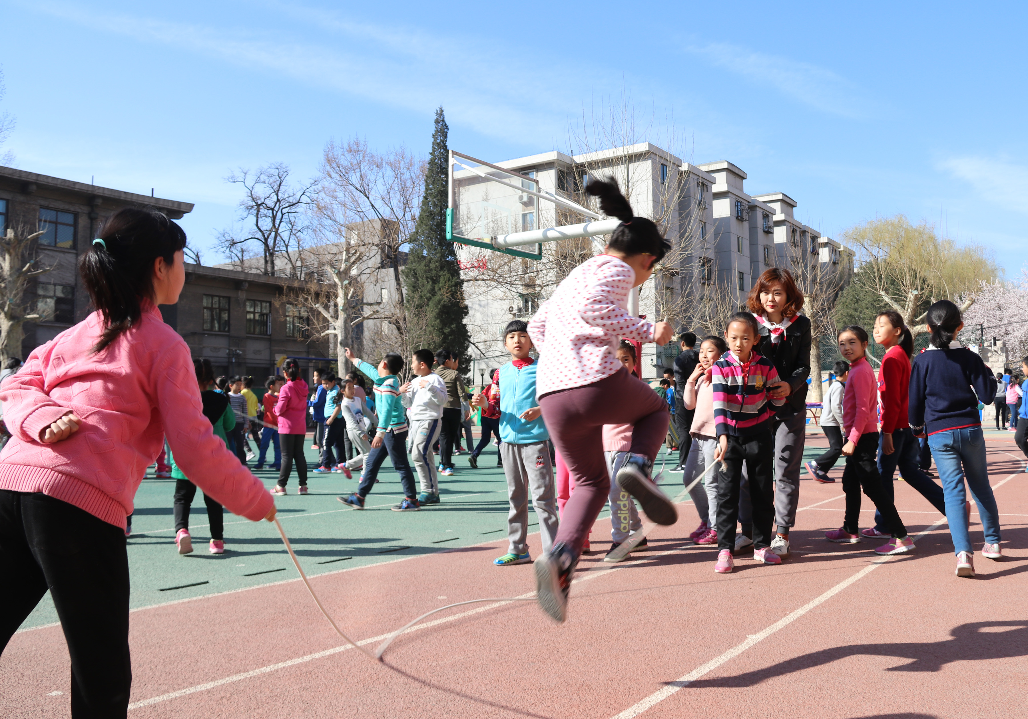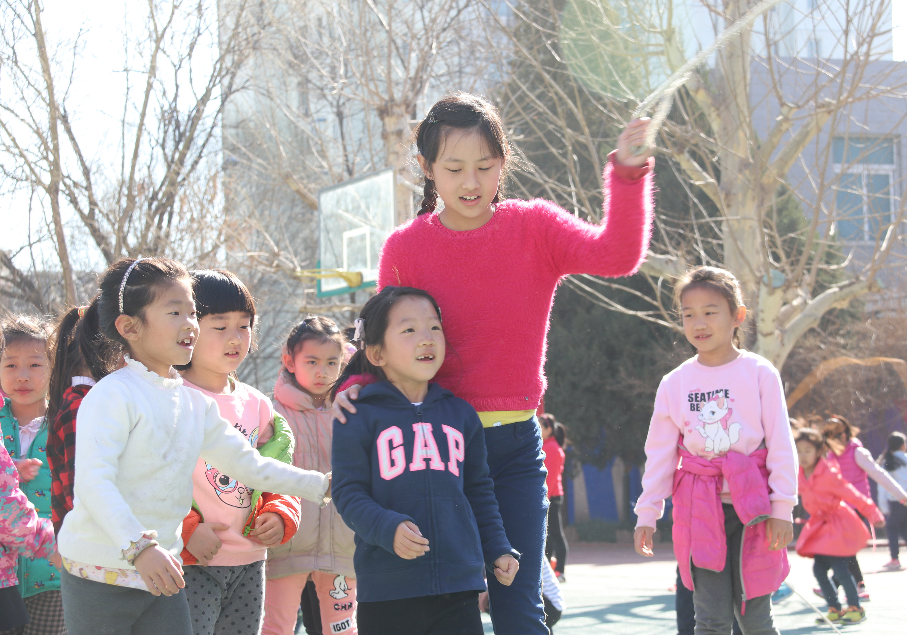 孩子们跳跃着双脚,挥动着双臂,脚尖与地面的摩擦谱出一曲动听的乐章,手中的跳绳在空中舞出一条优美的弧线。整个操场无比欢腾,“绳”彩飞扬。