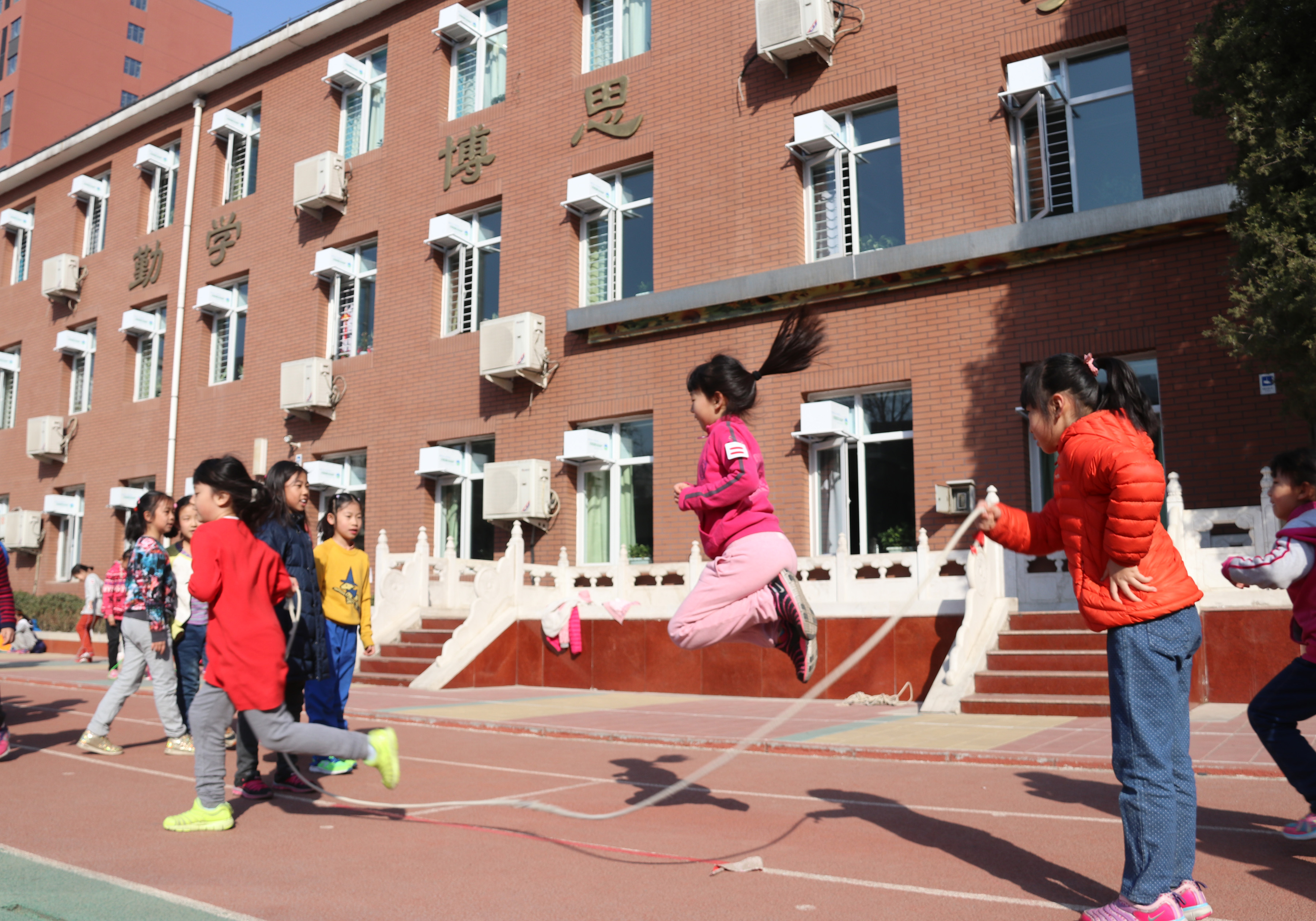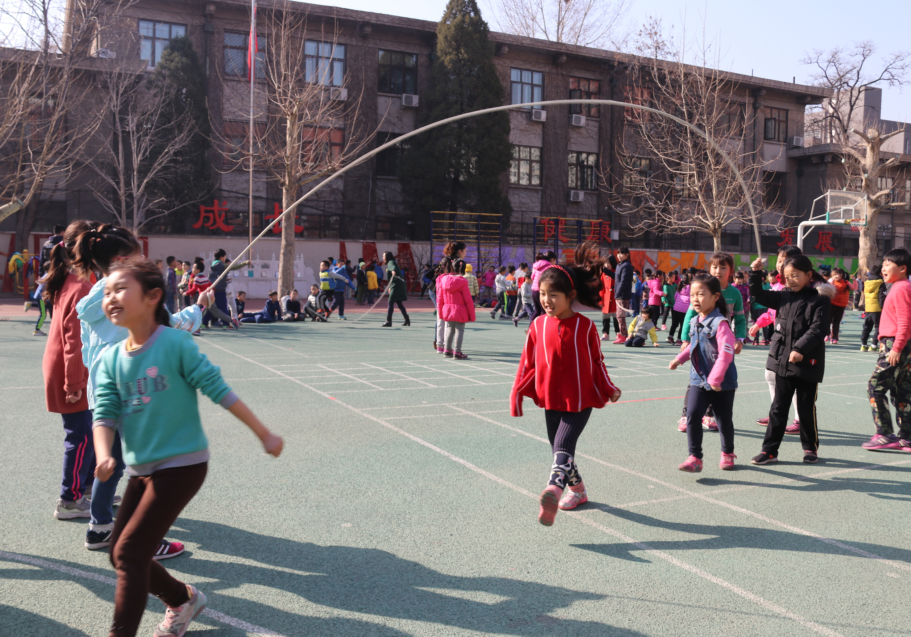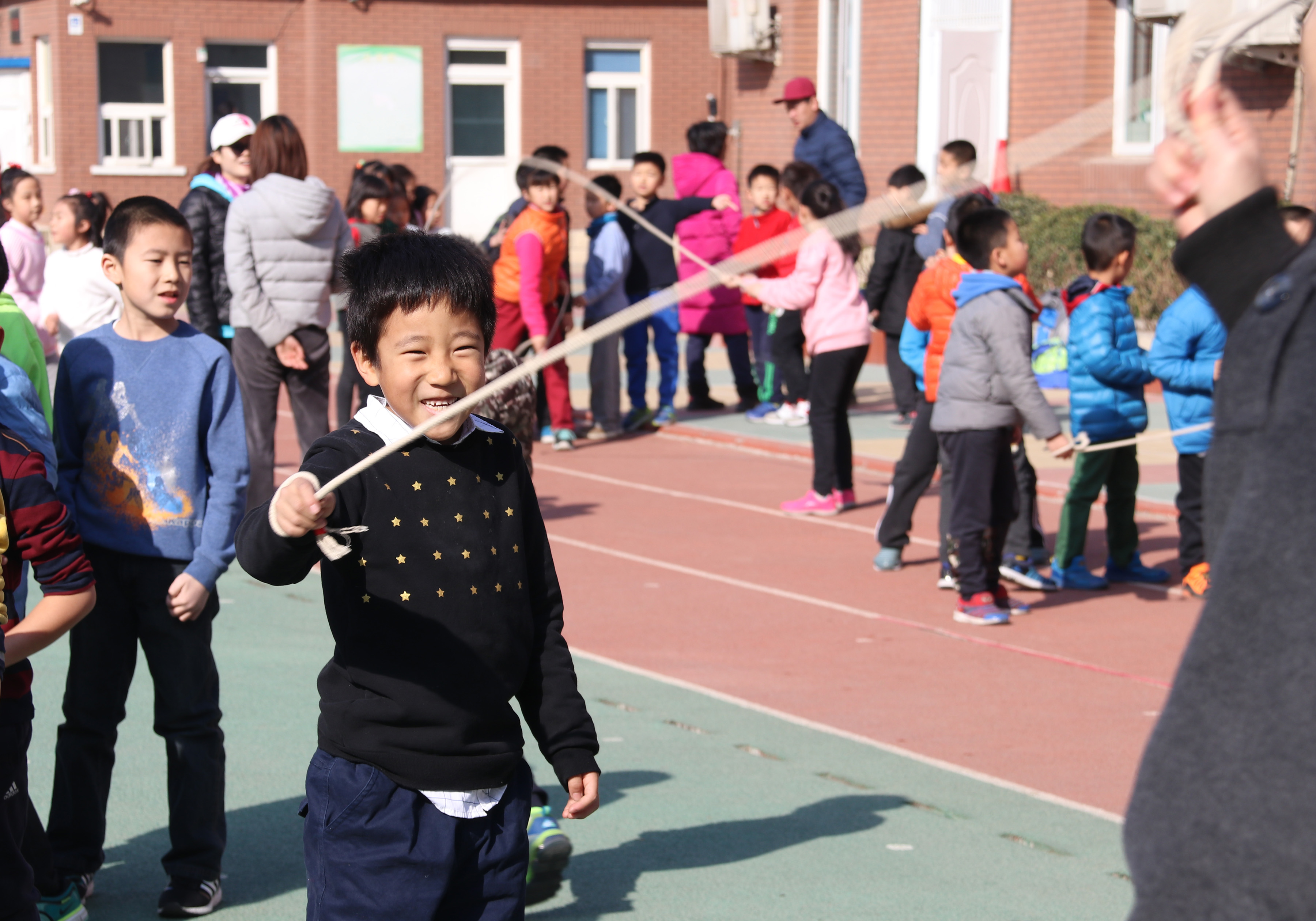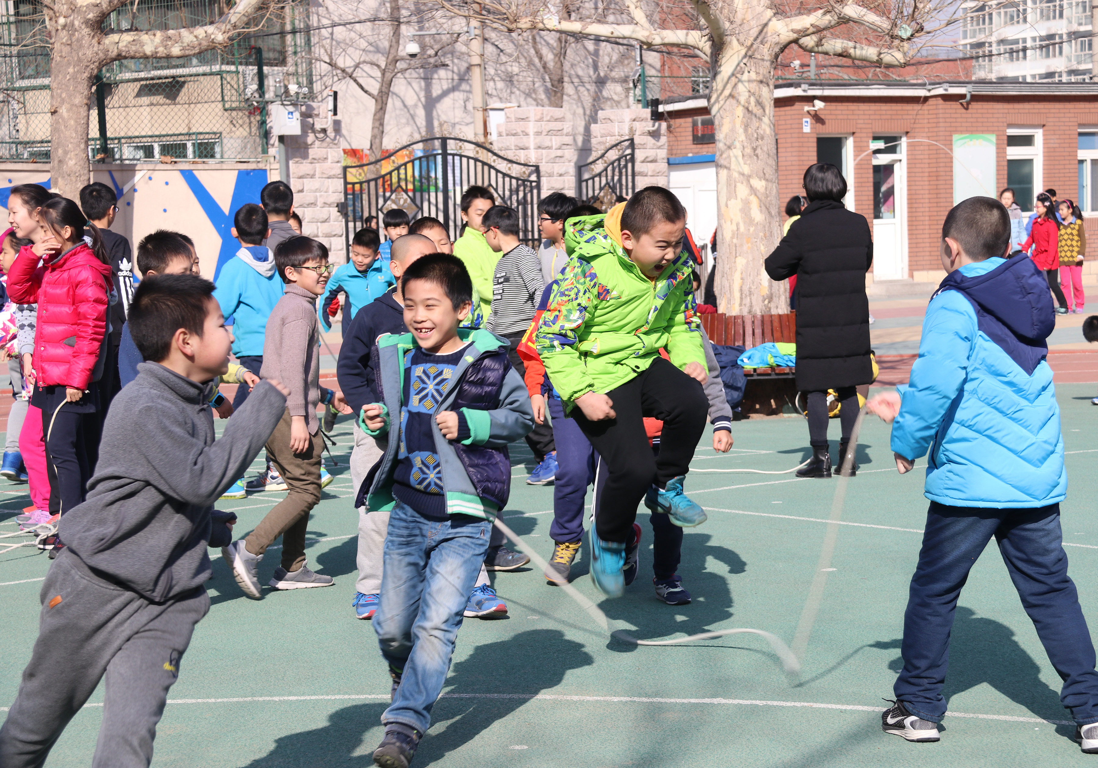 孩子们跳跃着双脚,挥动着双臂,脚尖与地面的摩擦谱出一曲动听的乐章,手中的跳绳在空中舞出一条优美的弧线。整个操场无比欢腾,“绳”彩飞扬。