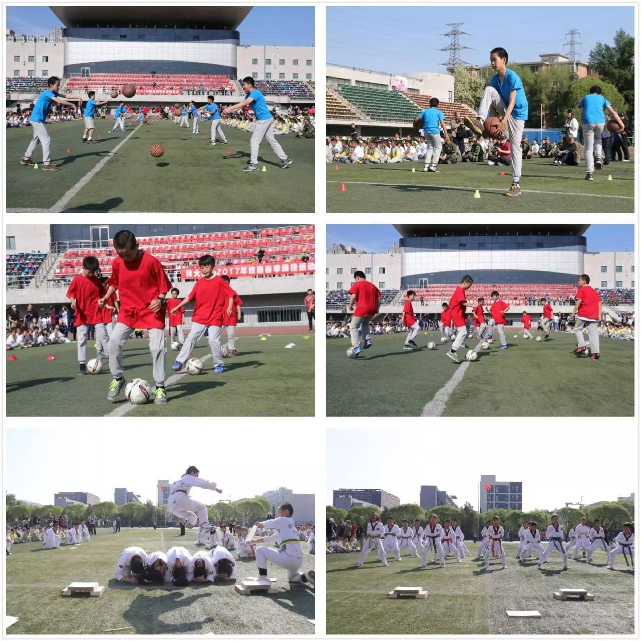 体育社团为开幕式献上了精彩的表演:活力四射的健美操,瞬间点燃赛场的热情;武术社团的孩子们,一招一式,整齐划一,磅礴大气;篮球少年们各式各样的运球,如风般迅速,无人能挡;足球小将们灵活的运球,自然洒脱,游刃有余;旋风踢腿、越人踢板、徒手劈板各种跆拳道特技,引来欢呼不断、掌声连连。
