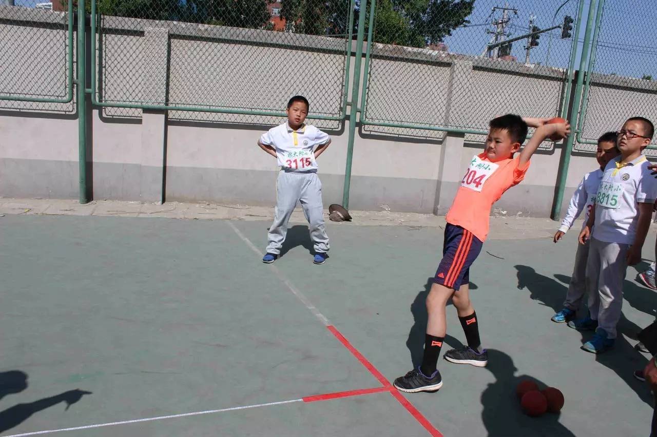 小小的身躯却充满力量,双臂挥舞,实心球就在天空划出美丽的弧线。