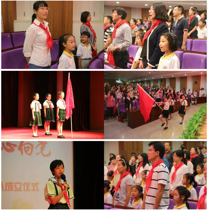 在这激动人心的时刻,我们向辛勤培育我们的老师、爸爸妈妈表示衷心的感谢,在这鲜艳的队旗引领下,我们将勤奋学习,幸福成长!