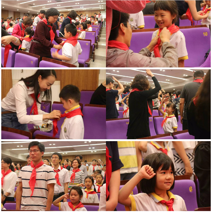去年,在爸爸妈妈的陪伴下,“小种子们”走进林大附小,开启了求知的新世界;今天,爸爸妈妈这些“老队员” 亲手为“小种子们”佩戴上鲜艳的红领巾,迎接他们的又一次成长。