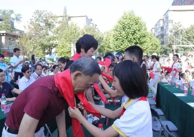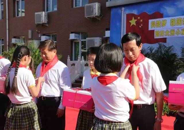嘉宾们为孩子们送上美好的祝福与香甜的蛋糕,孩子们也为嘉宾戴上鲜艳的红领巾向他们致以最崇高的敬意与感谢。
