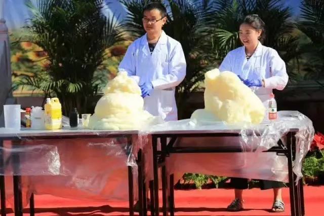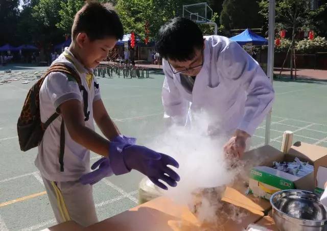 “火焰掌”、“大象牙膏”、“炸弹秀”酷炫的科学实验将开幕式推向高潮,孩子们兴奋地欢呼、鼓掌,已经迫不及待想要去亲自感受科学的魅力了!伴随着“超低温风暴”,在北京林业大学党委书记王洪元的宣布下,科技节正式开始啦!