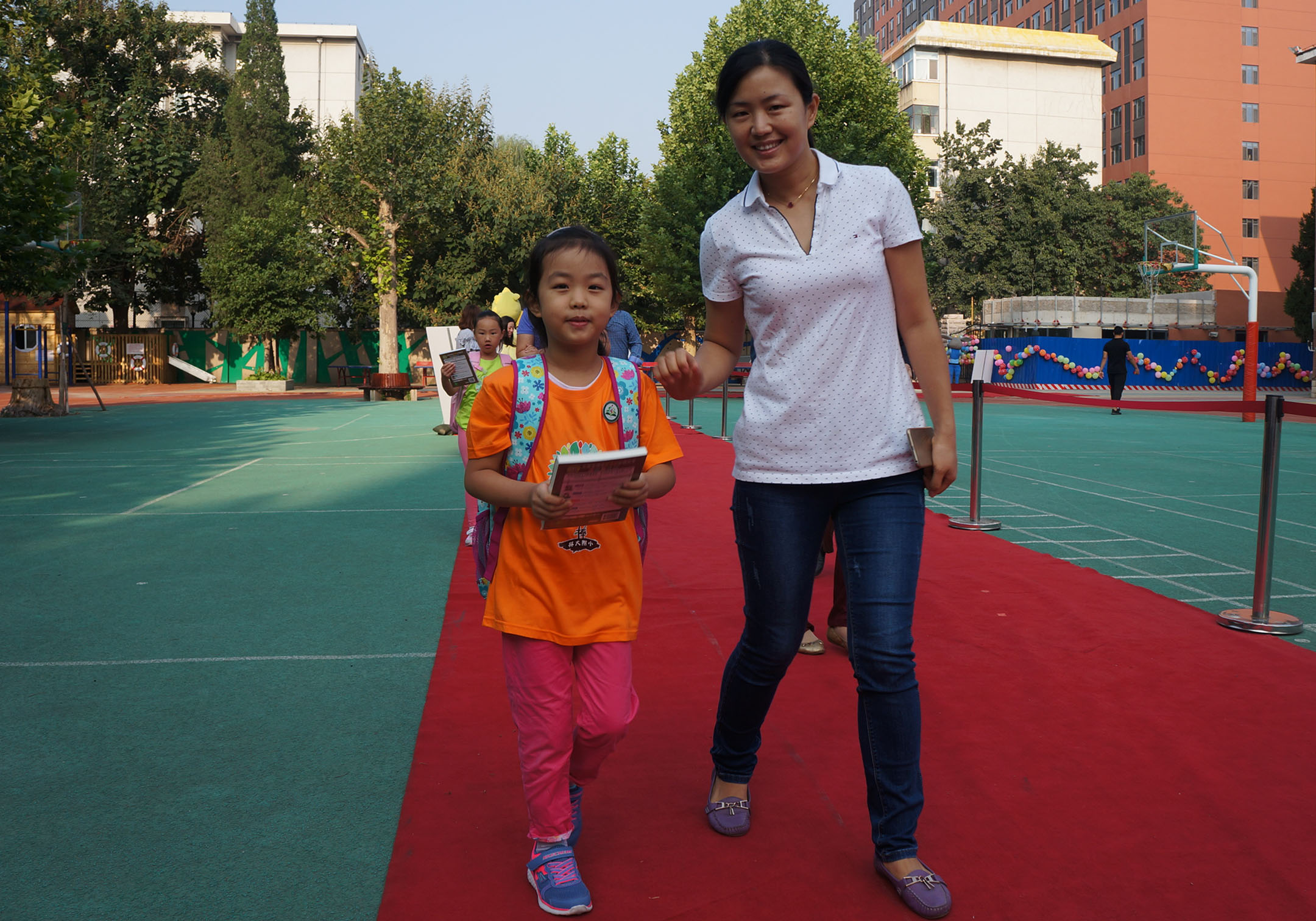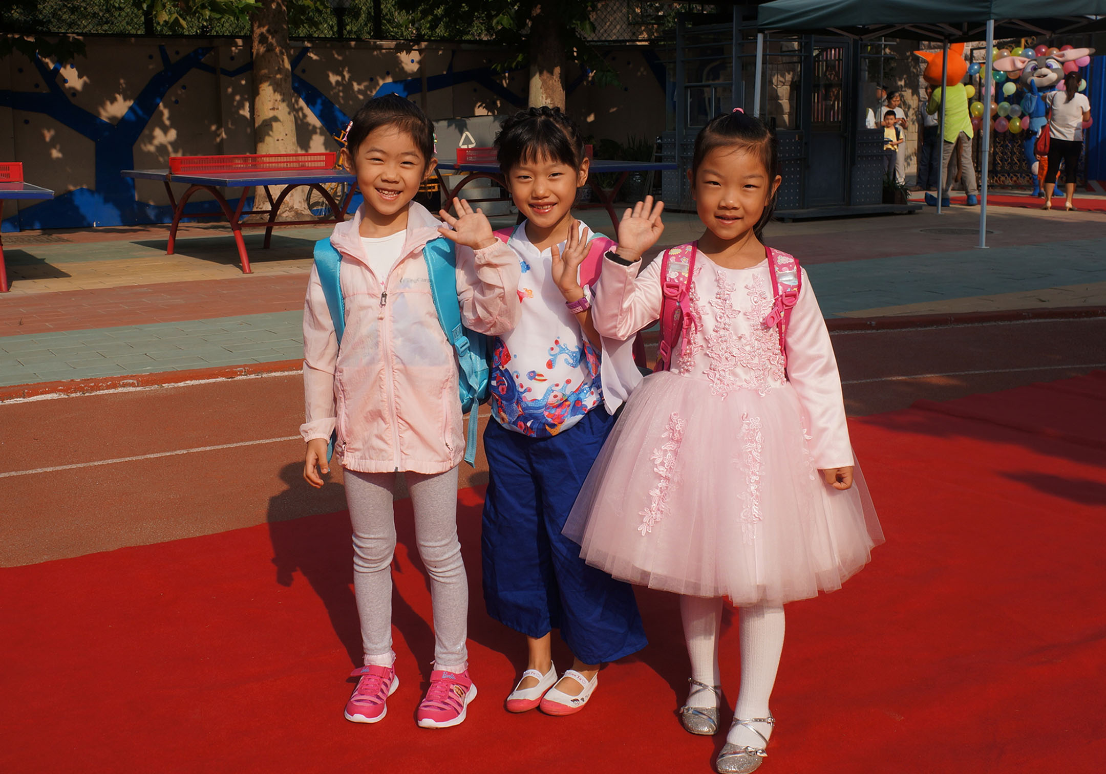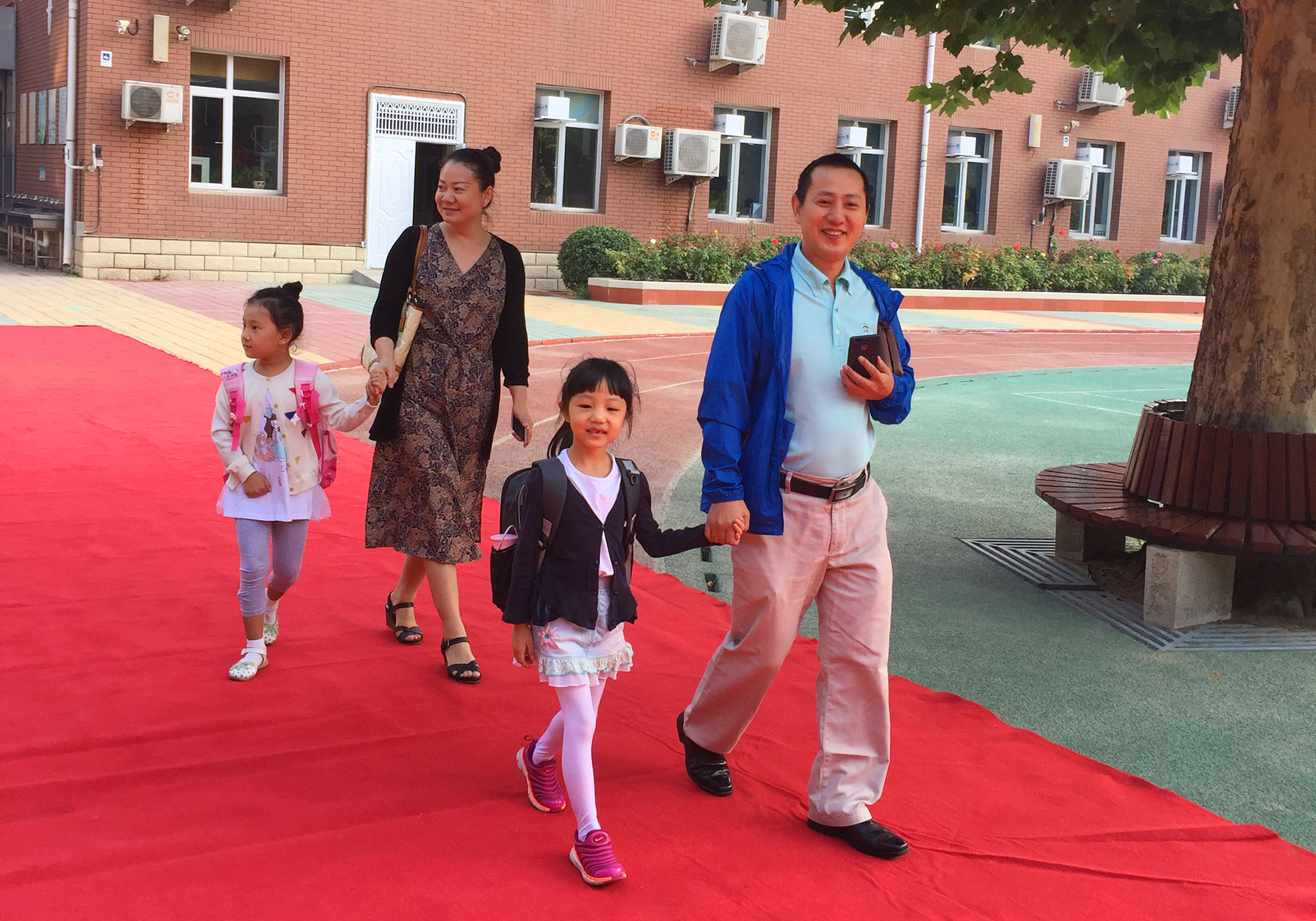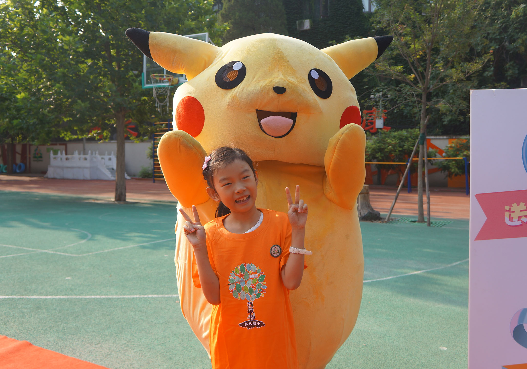 原来是为了迎接一年级的小同学呀!瞧,孩子们牵着爸爸妈妈的手陆续地走进学校大门,在“皮卡丘”、“朱迪”的热烈欢迎下,像小明星一般走上了红毯,脸上洋溢着纯真的笑容!