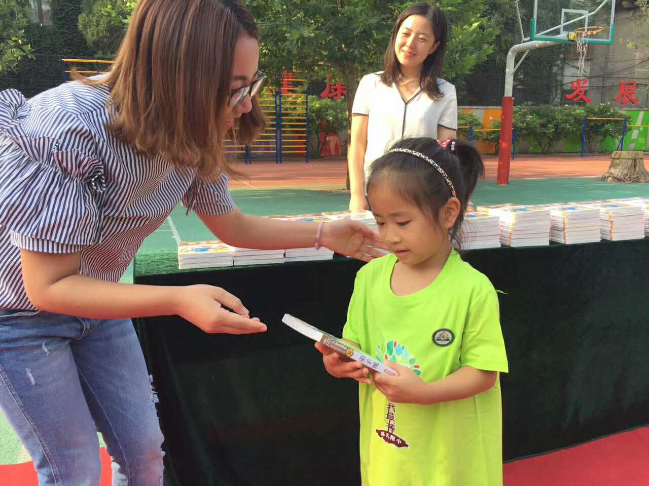 学校还为他们准备了许多惊喜呢!有漂亮的T恤衫、可爱的卡通人物、满载知识的书籍、美味的小点心、与亲爱的高校长合影……这些专属于他们的礼物,让孩子们开心不已,快乐的笑容像花儿一样灿烂!