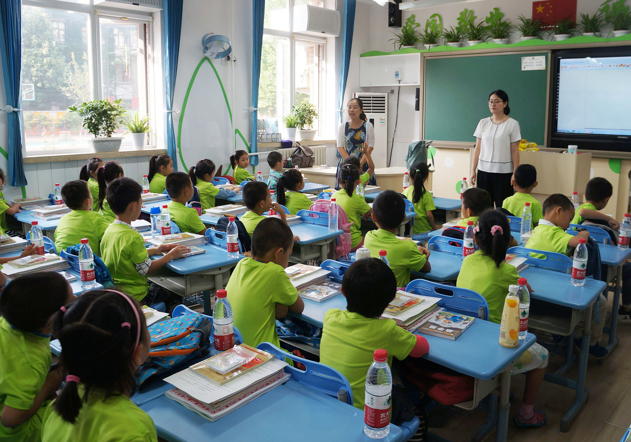学生和家长走进精心布置的教室,难掩新奇喜悦之情。有的小同学已经迫不及待的翻阅起课本,与新同学交流!和蔼的班主任老师耐心地带领学生认识学校、班级和同学,并学习日常行为规范。老师们那充满爱意的眼神和发自心底的笑容,让家长们既温暖又放心。