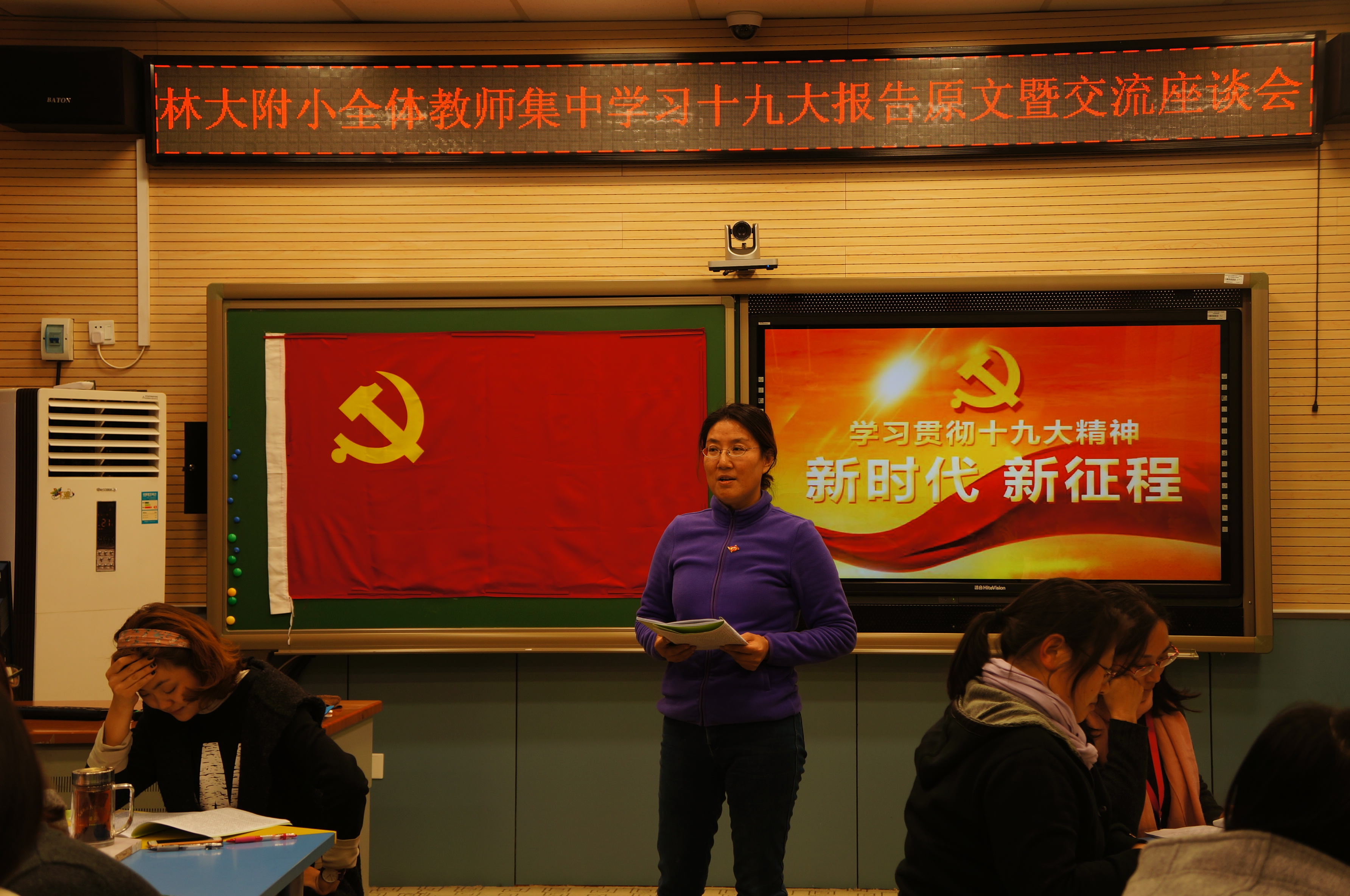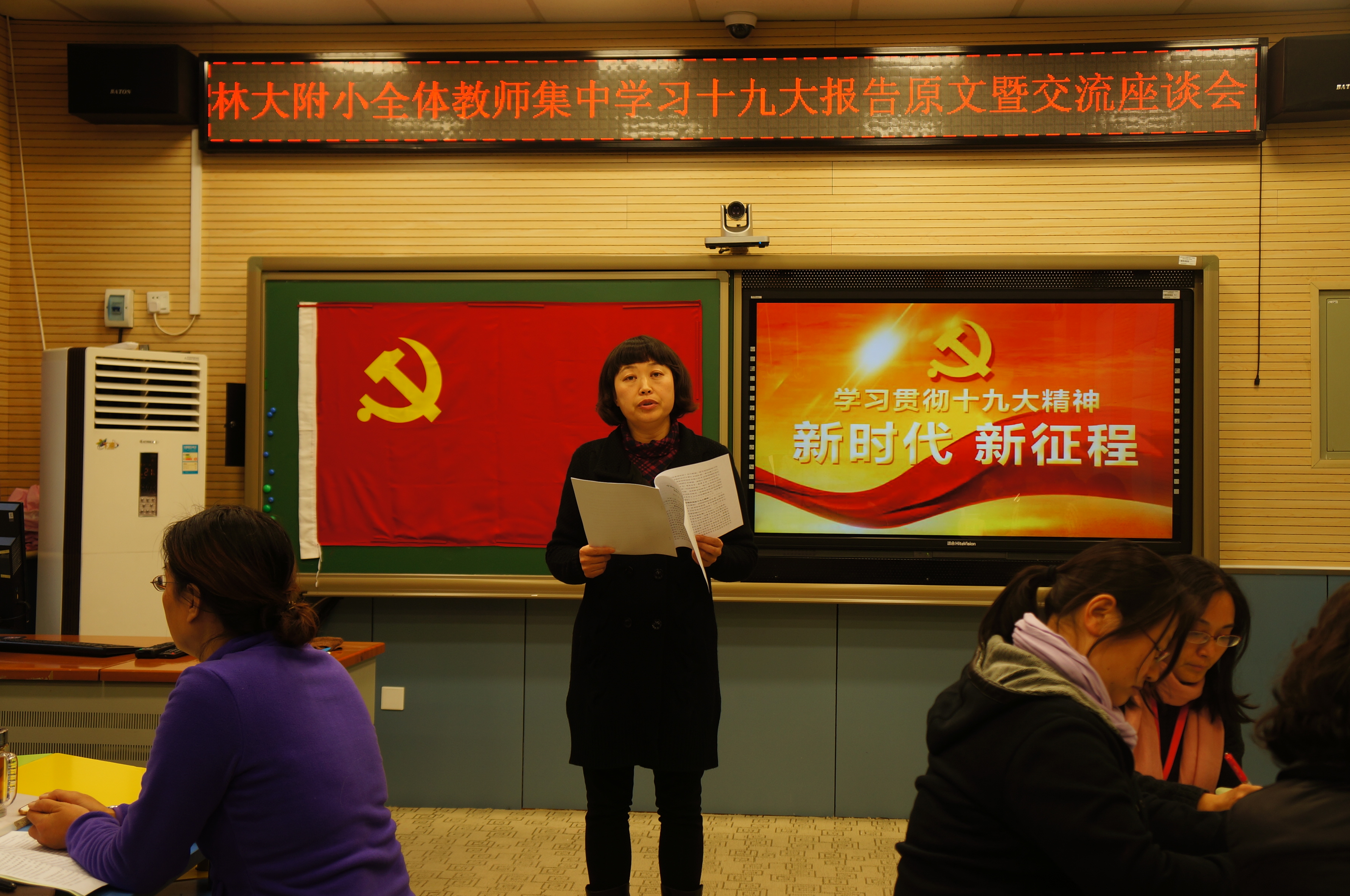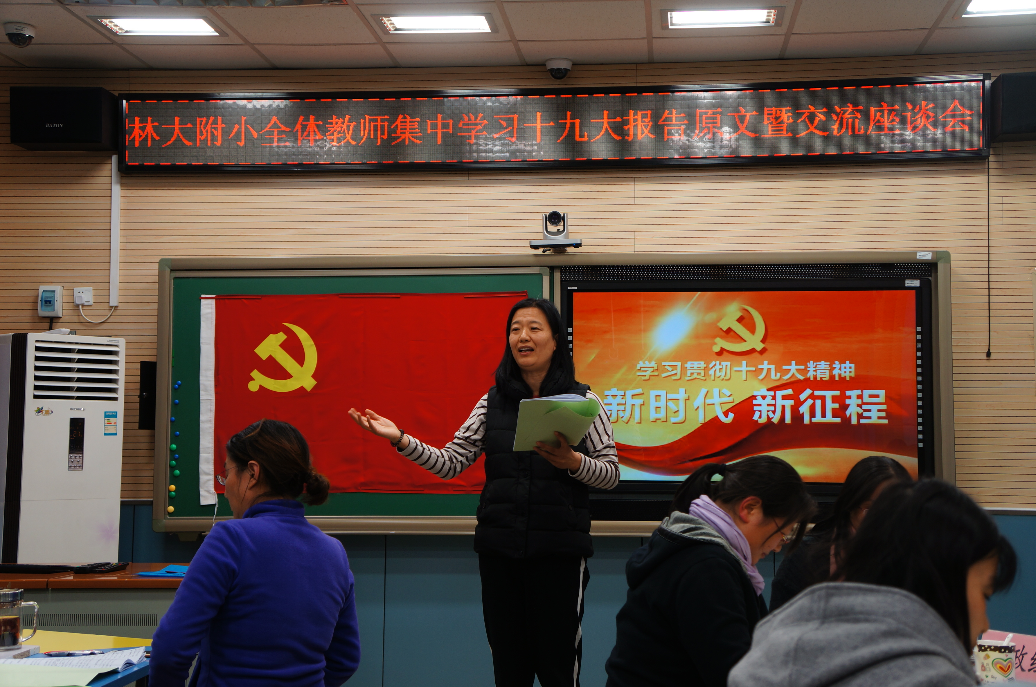 为深入了解十八大以来中国发生的翻天覆地变化,深入学习十九大的会议精神,11月4日上午,林大附小直属党支部组织全体教师参观“砥砺奋进的五年”大型成就展。并于下午学习“十九大报告”原文,在学习手册中旁批学习感受。11月6日下午,组织全体教师召开座谈会,集中学习“十九大报告”并交流学习体会。